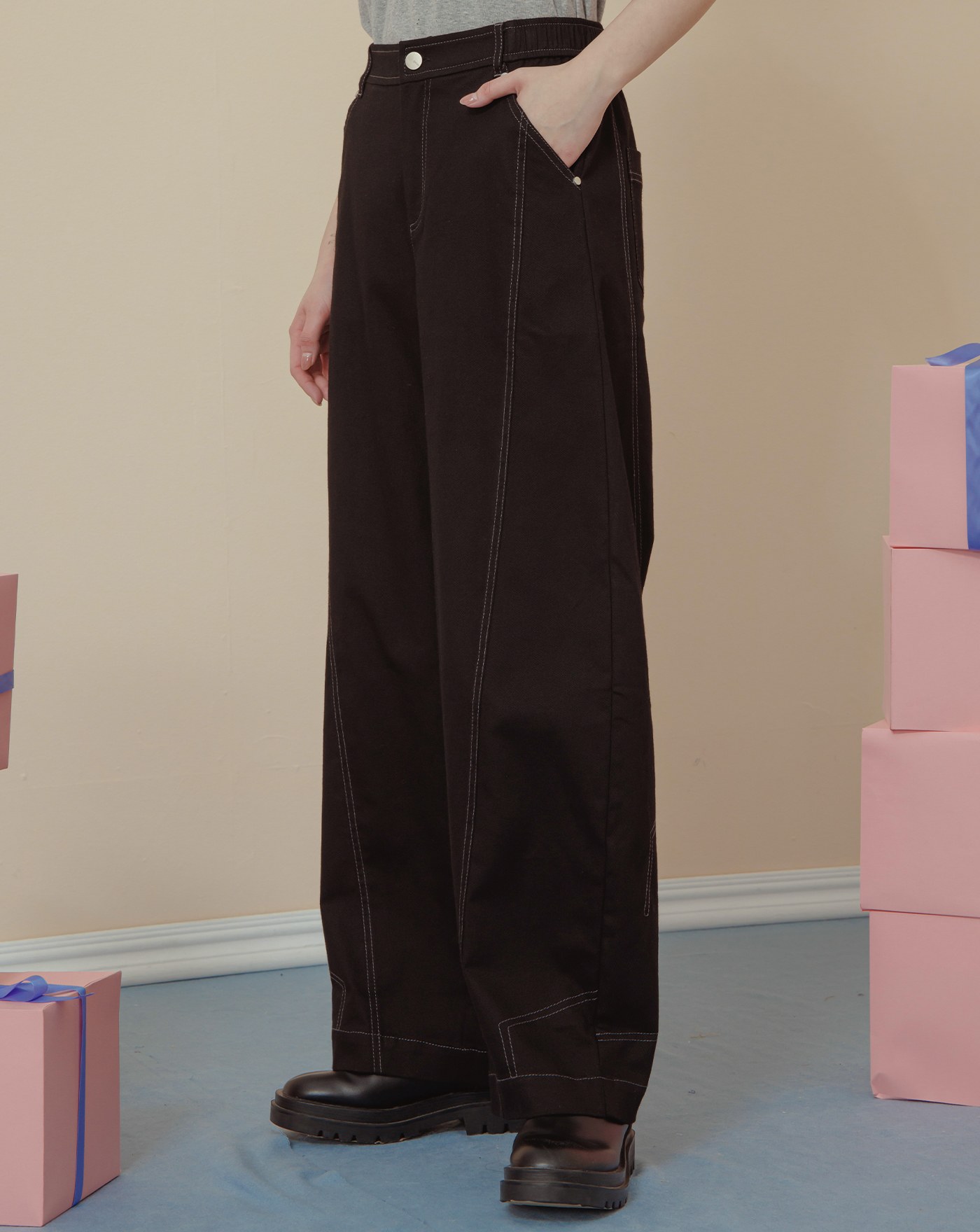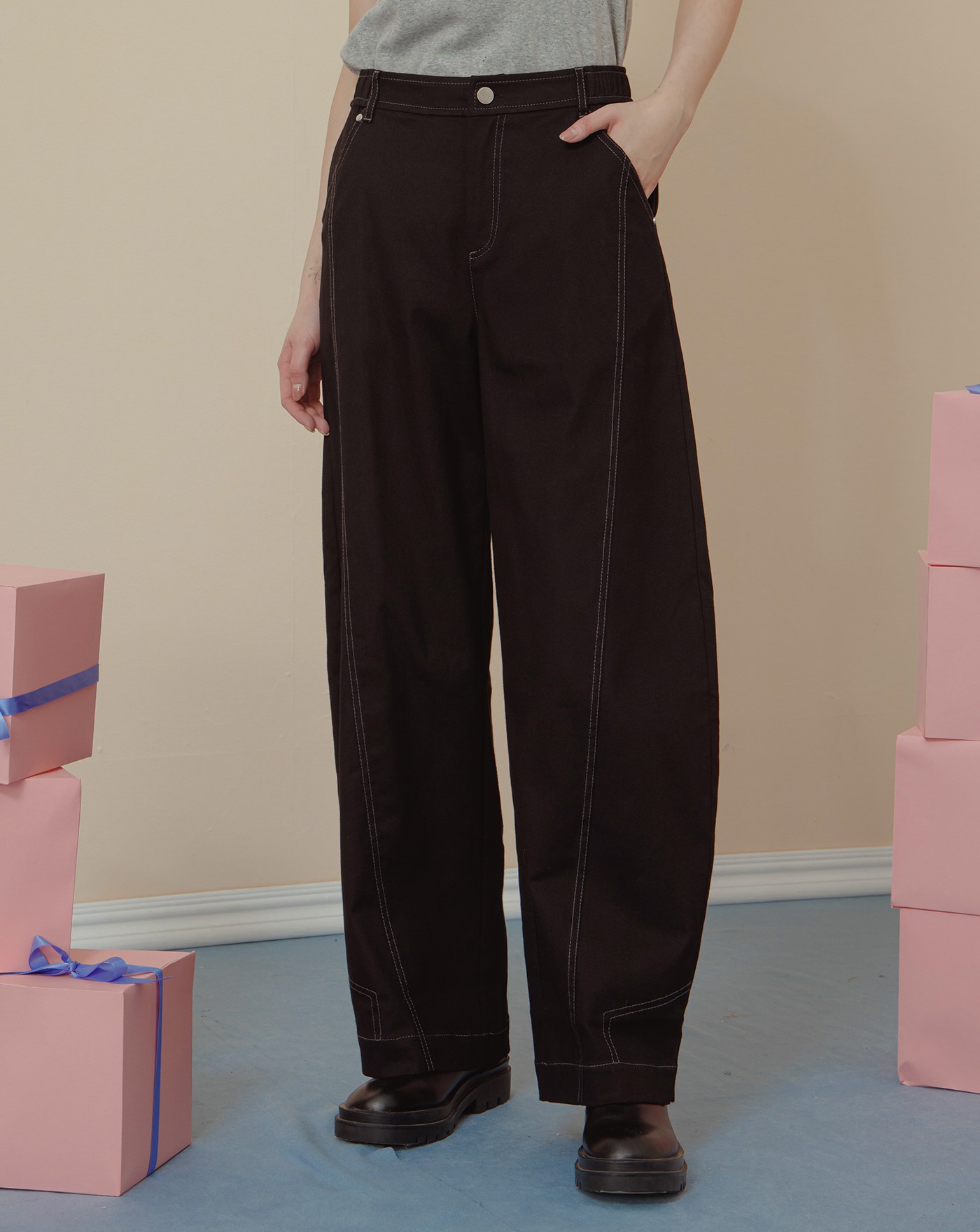 帥氣斑駁感寬鬆彎刀褲(兩色)