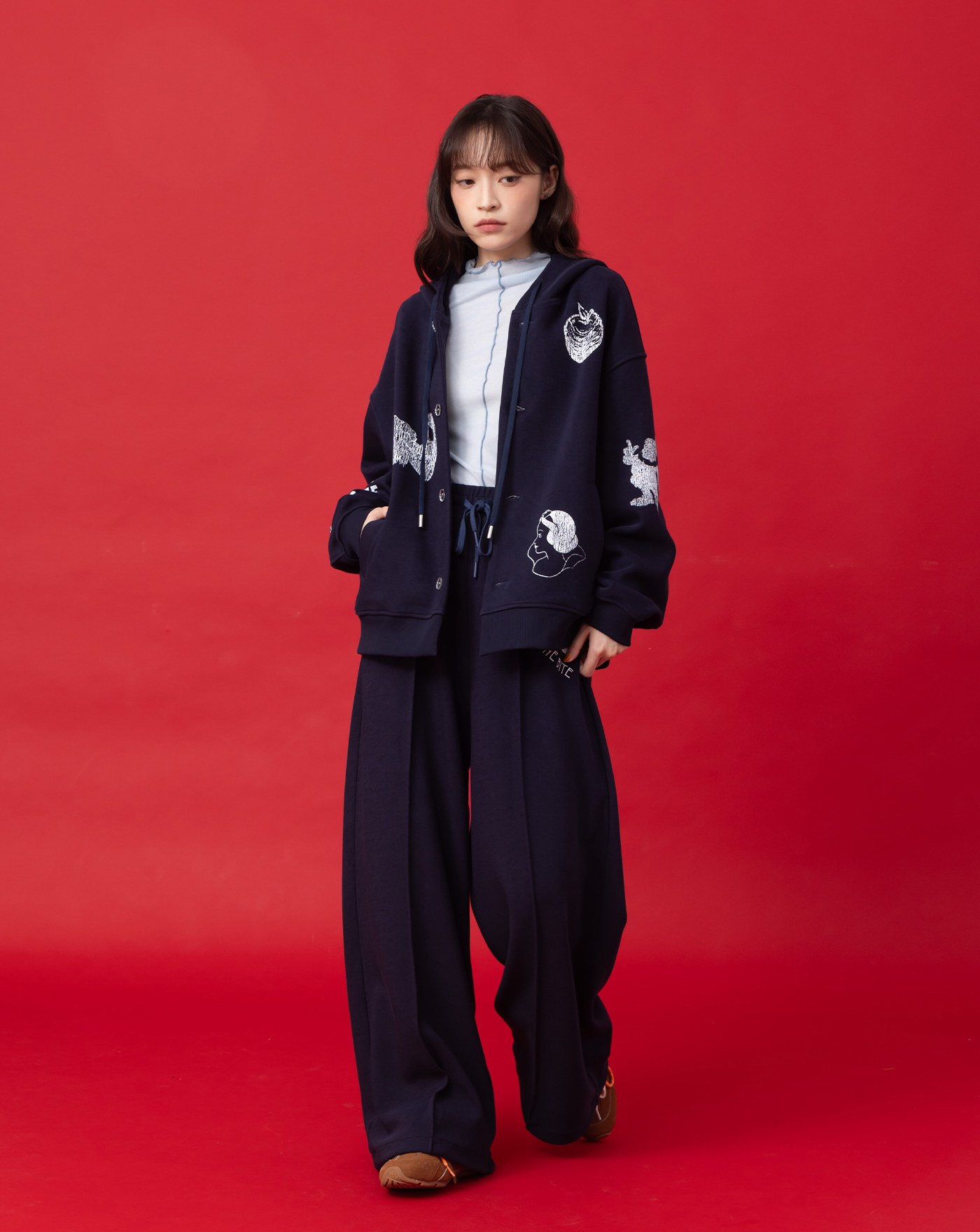 Ada繡花魔鬼氈連帽寵物衣(兩色)