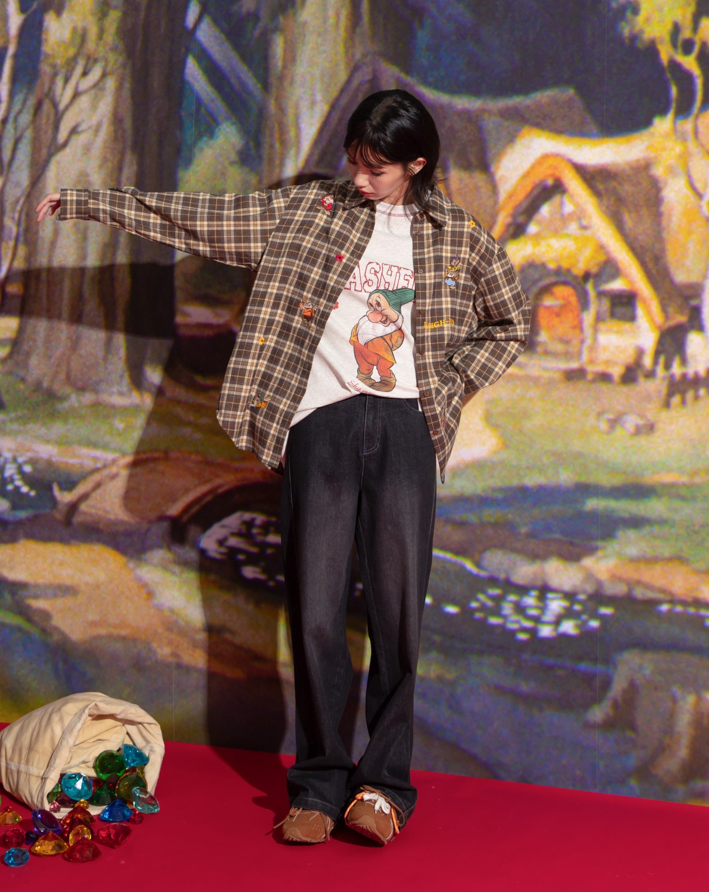 迪士尼系列 小矮人繡花復古格紋長袖襯衫(兩色)