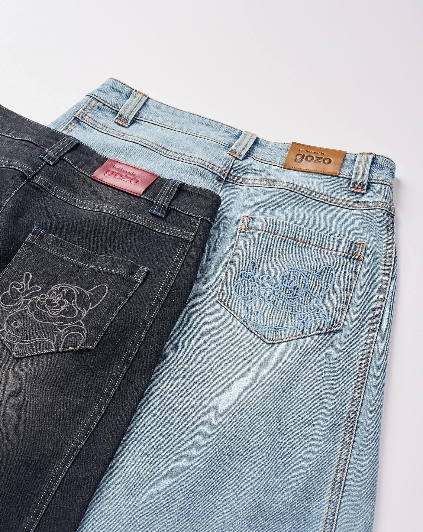A|異材質拼接立體打褶抽繩牛仔寬褲(兩色)