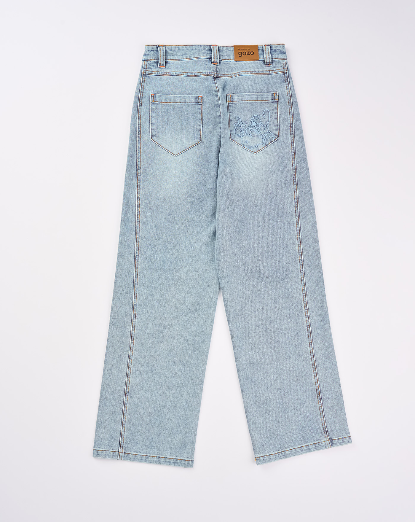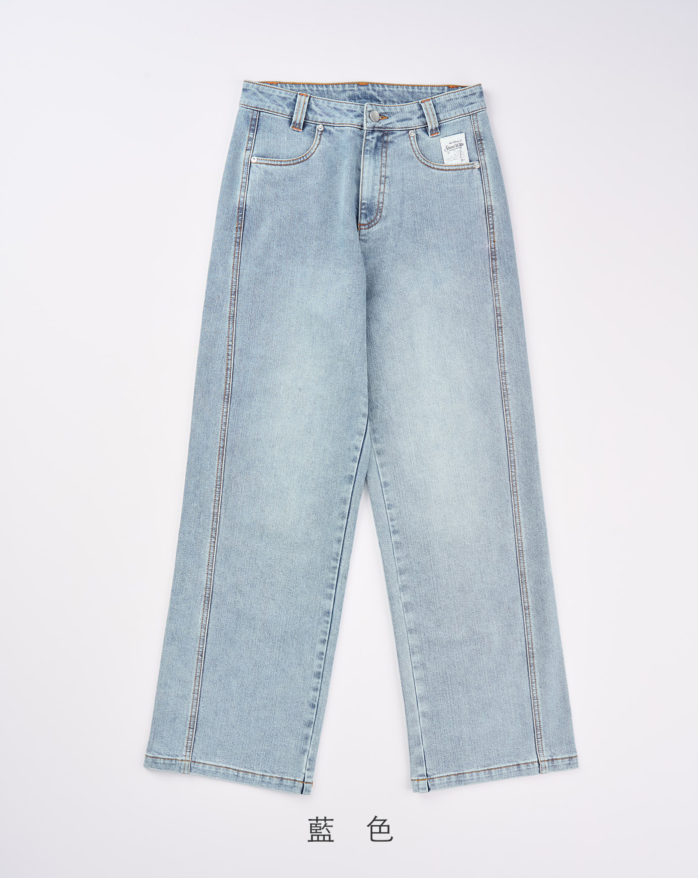 ◢3.0 零著感Q彈打褶牛仔寬褲(淺藍)