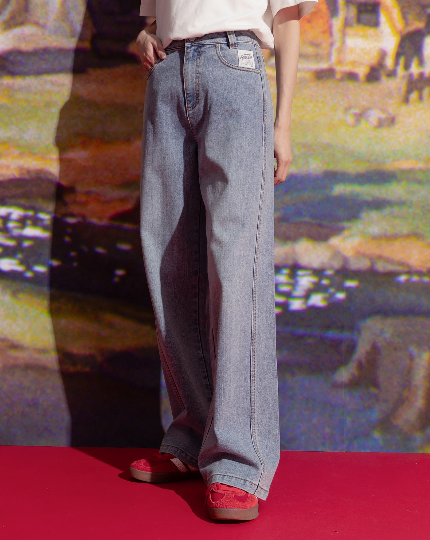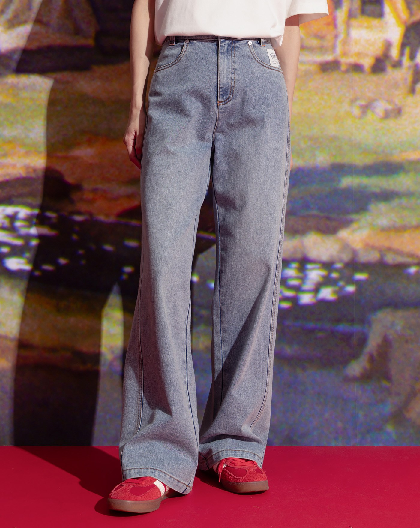 ◢3.0 零著感Q彈打褶牛仔寬褲(淺藍)