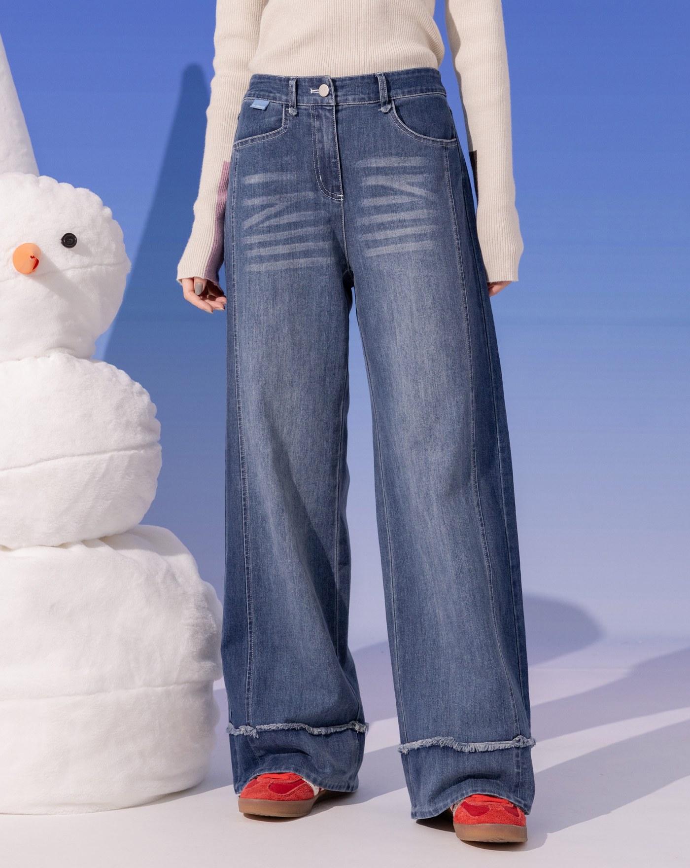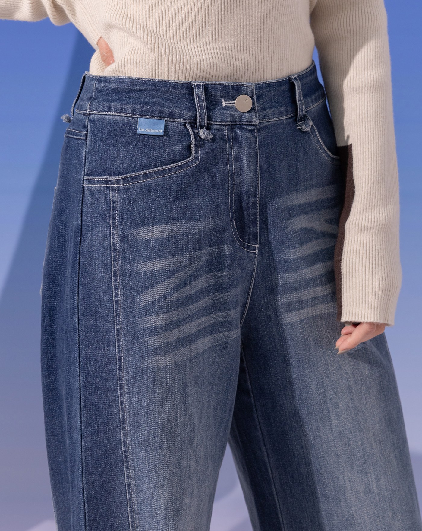 A|復古風線條刷色水洗牛仔寬褲(兩色)