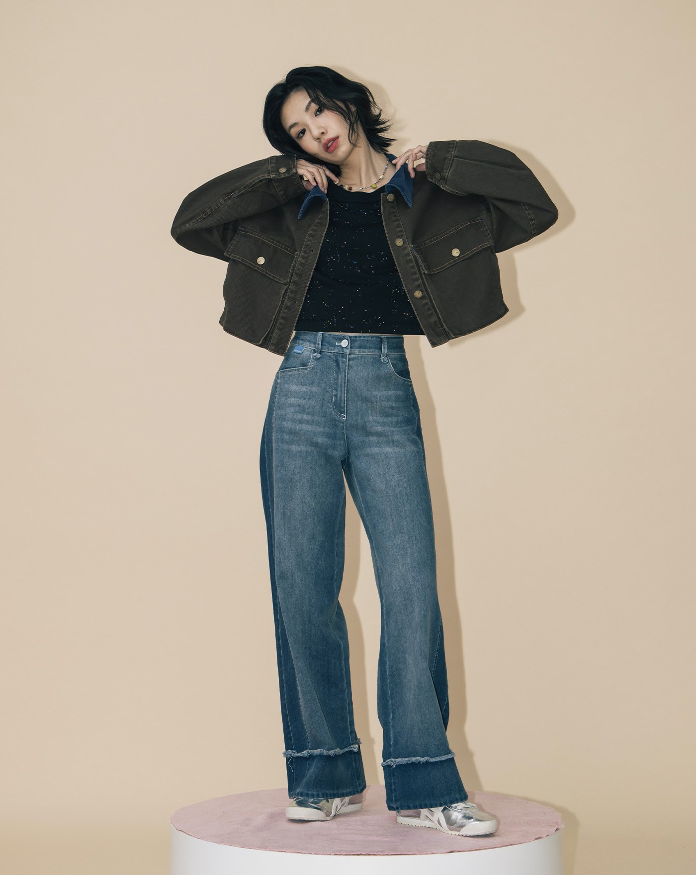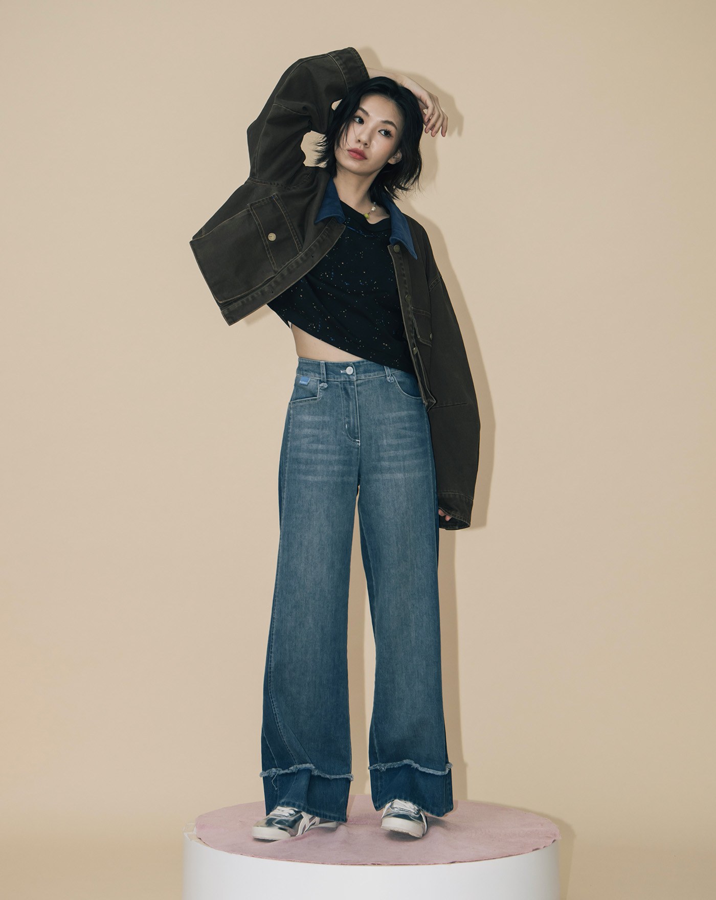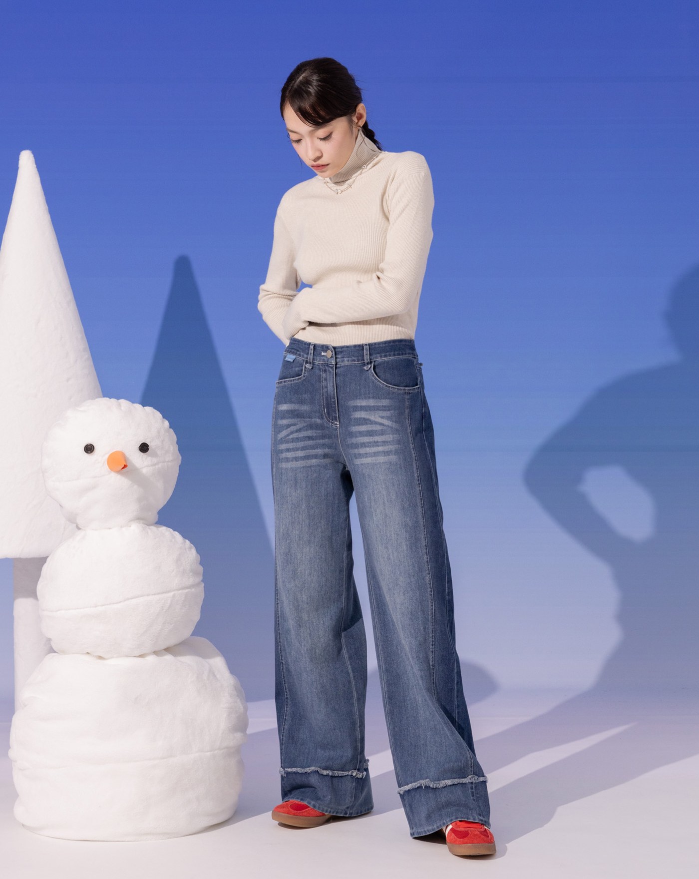 shadow顯瘦好比例仿牛仔直筒寬褲 (兩色)