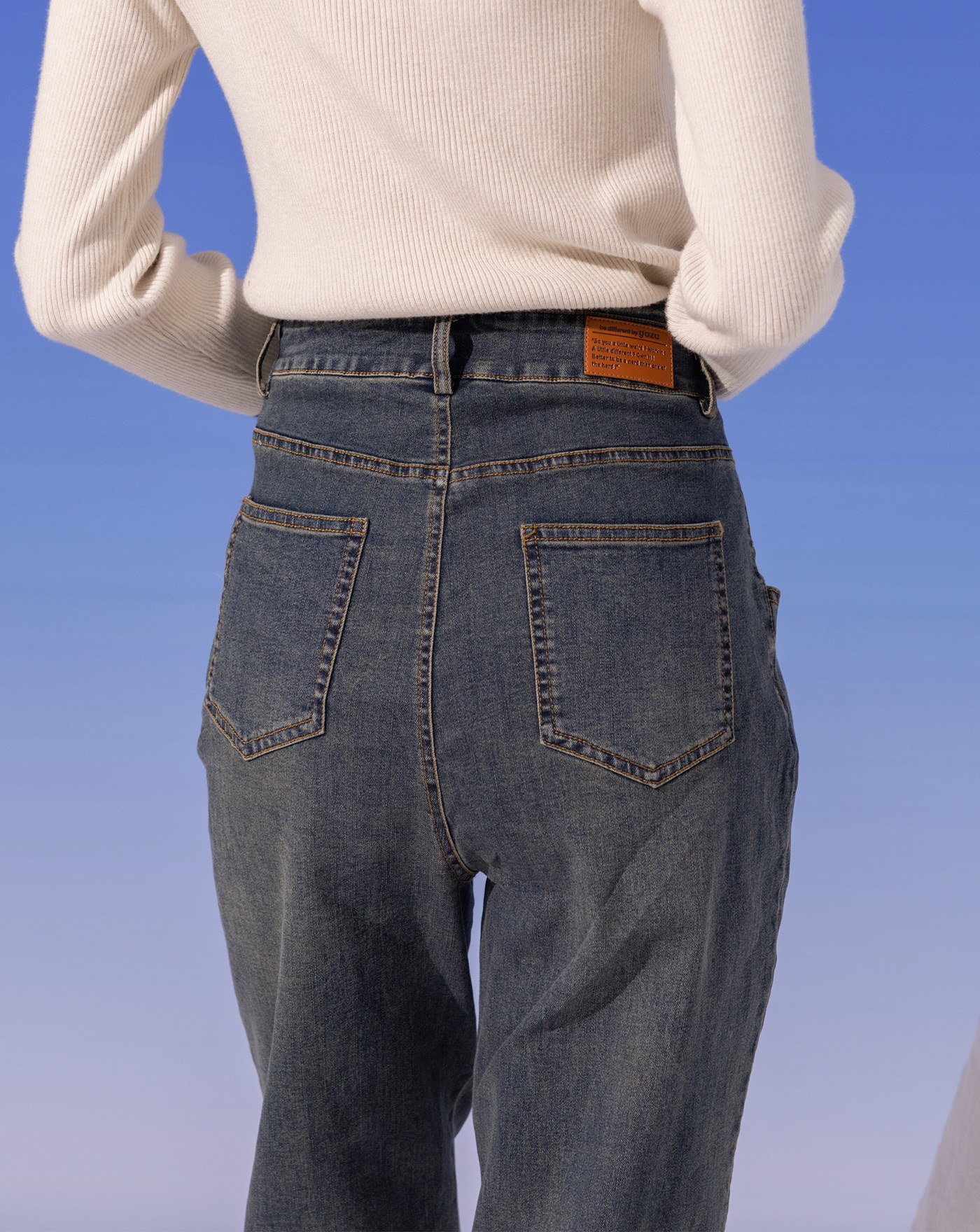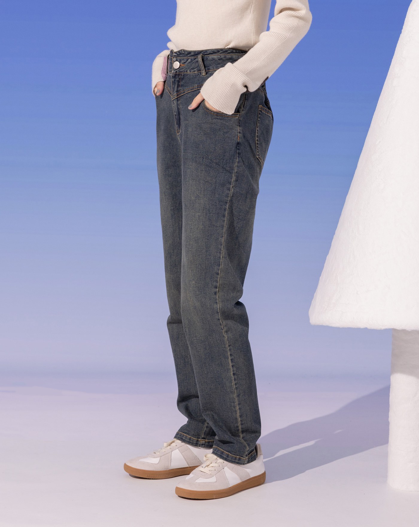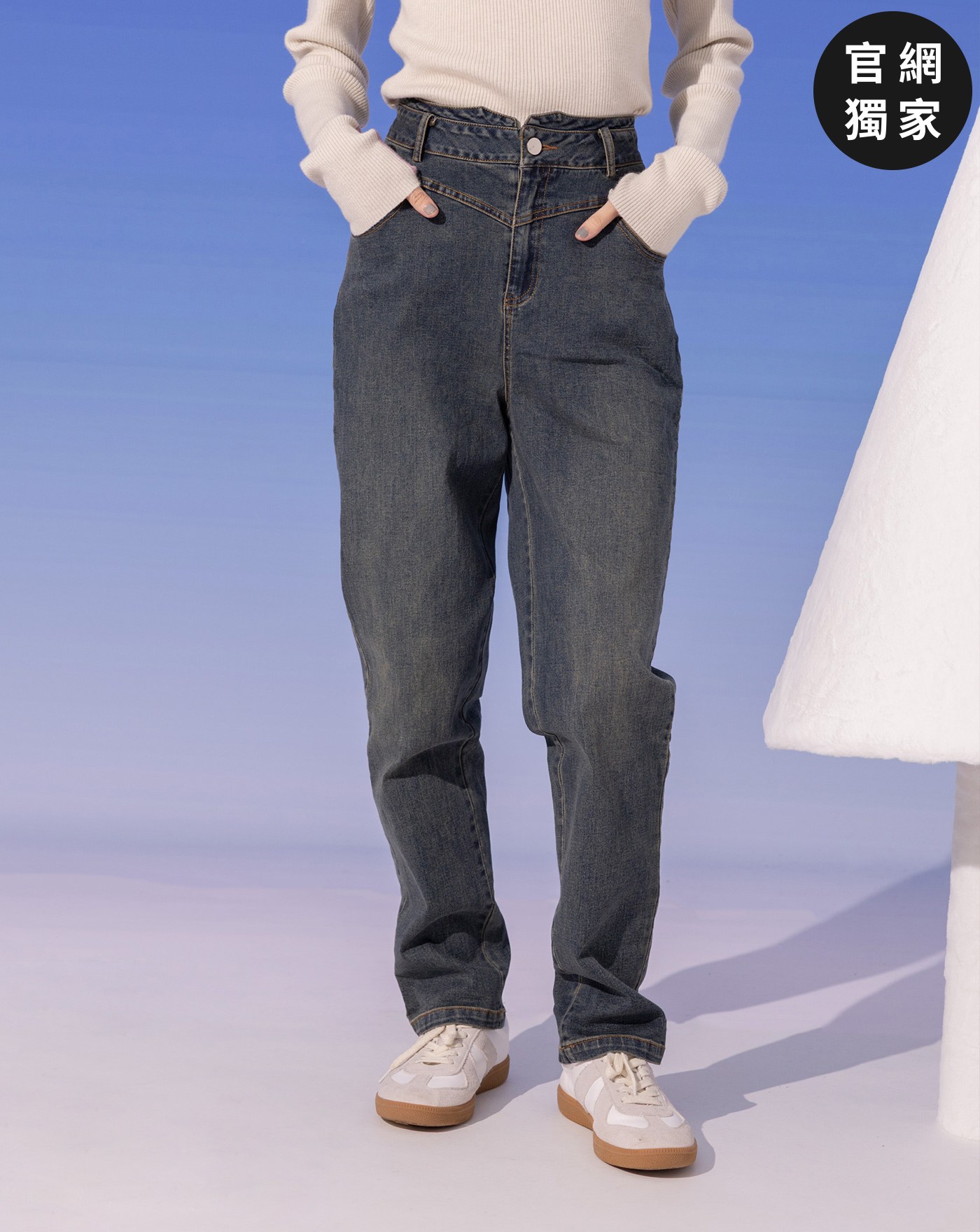 水洗刷白鋸齒壓線彈性牛仔褲(兩色)