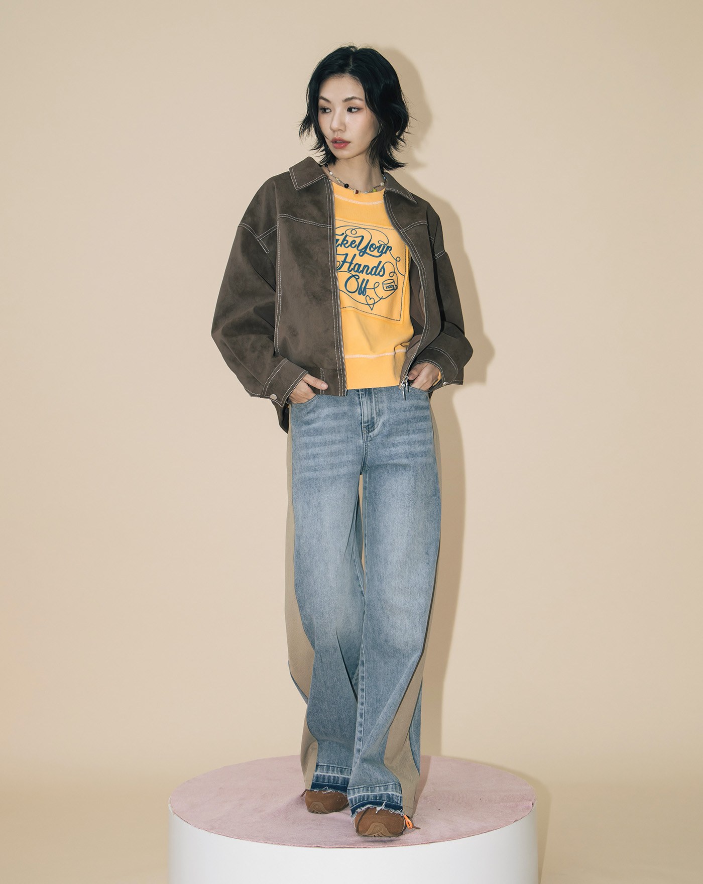 A|復古仿麂皮壓線廓型雙向拉鍊外套(兩色)