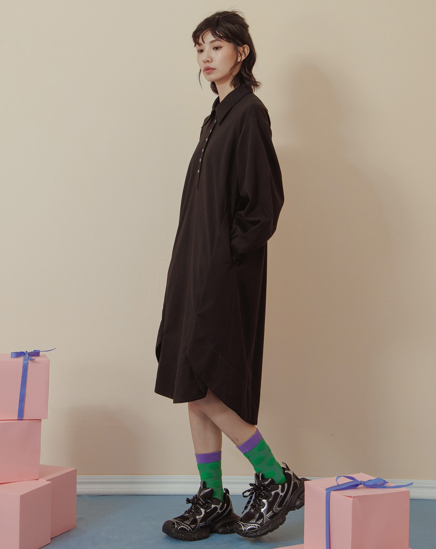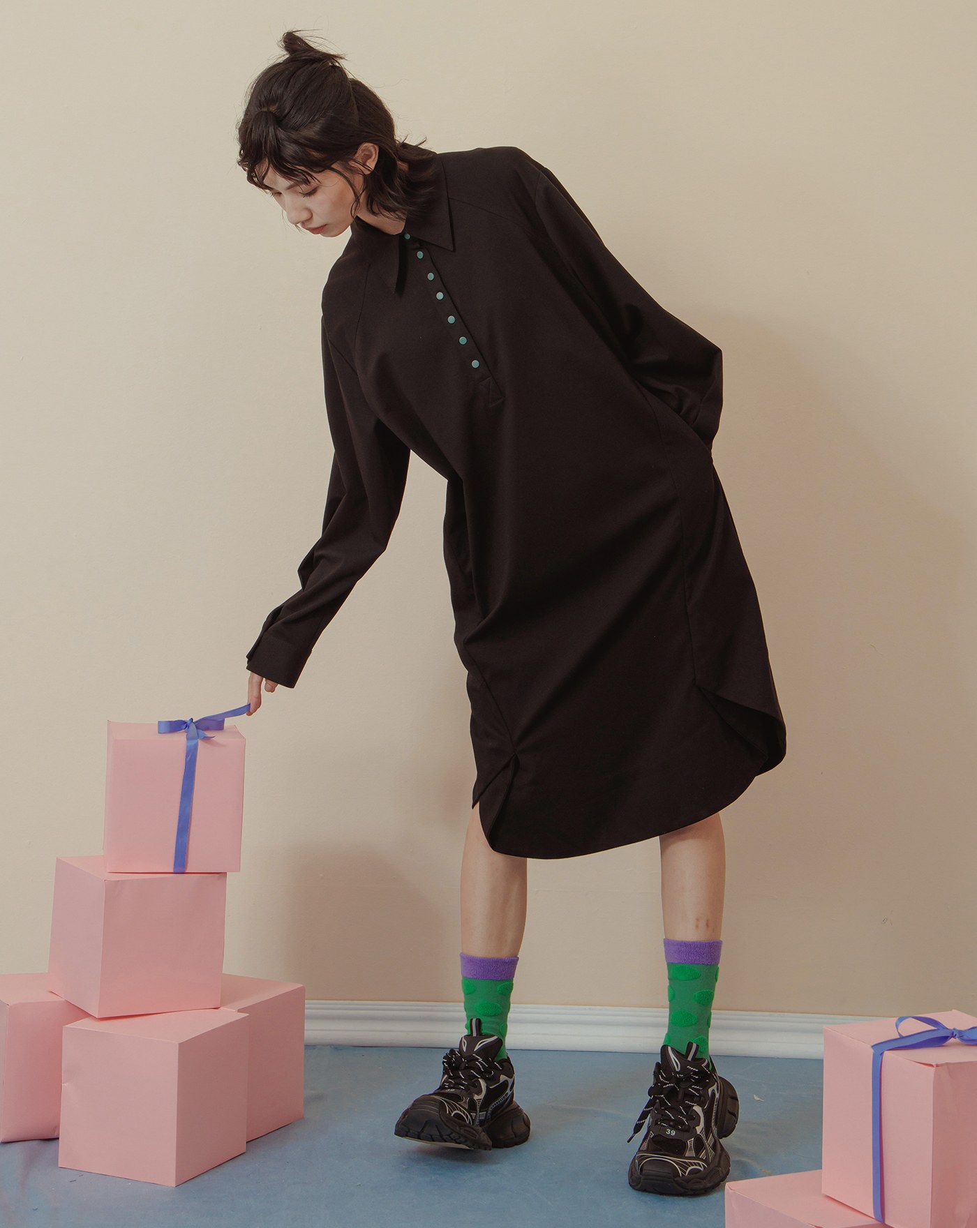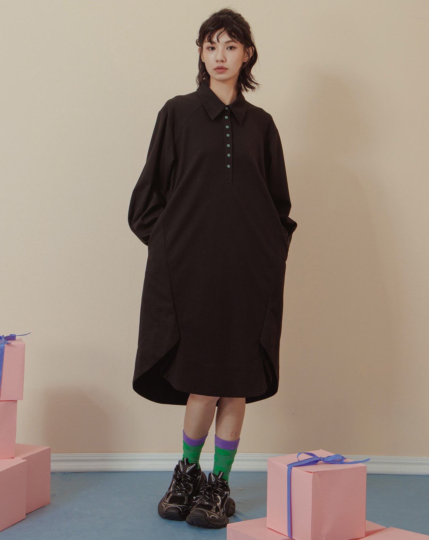 異材質拼接下擺抽繩短袖洋裝(兩色)