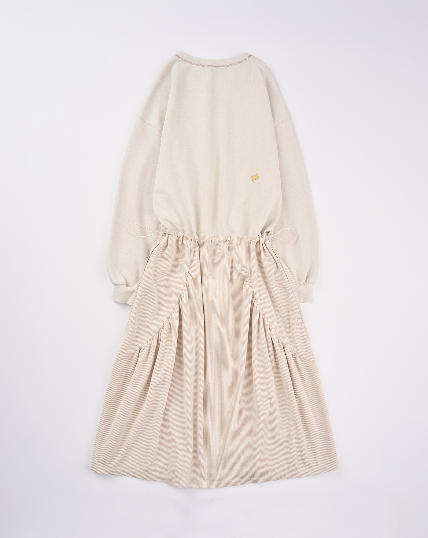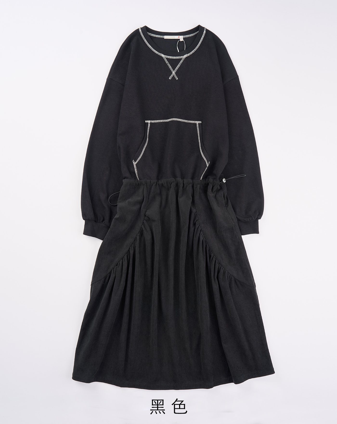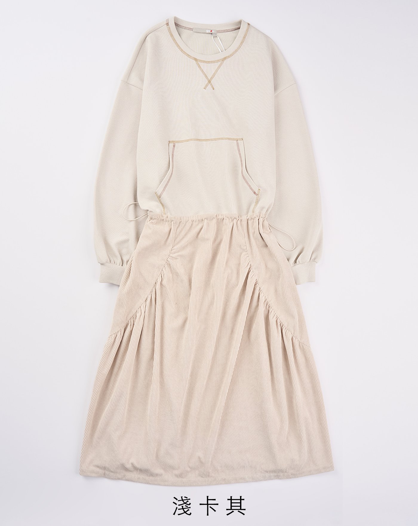 ➤洗滌小標半開襟條絨長袖洋裝(兩色)
