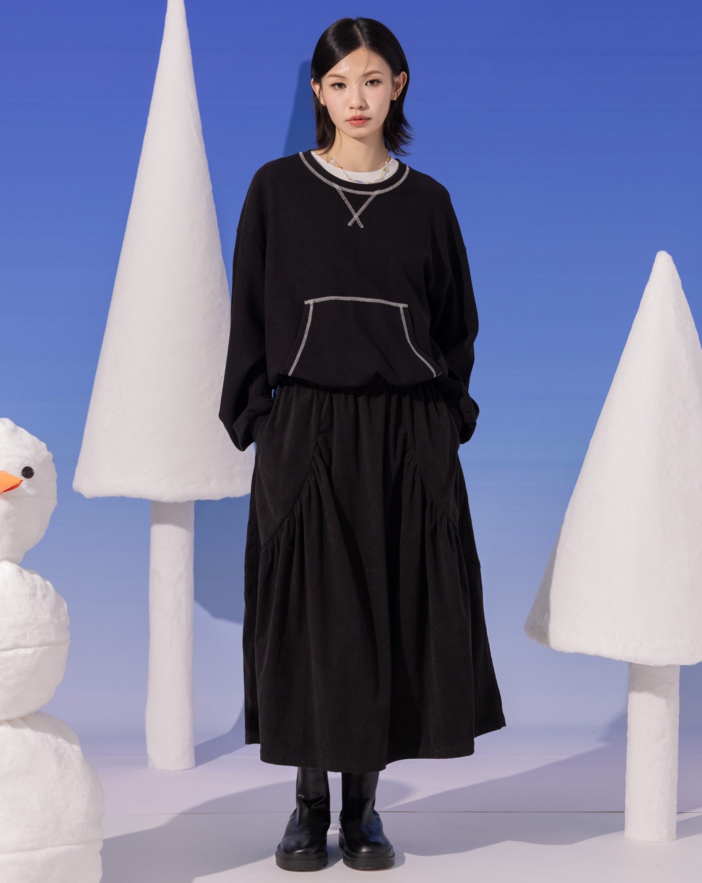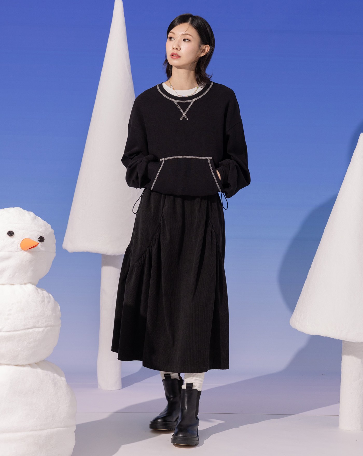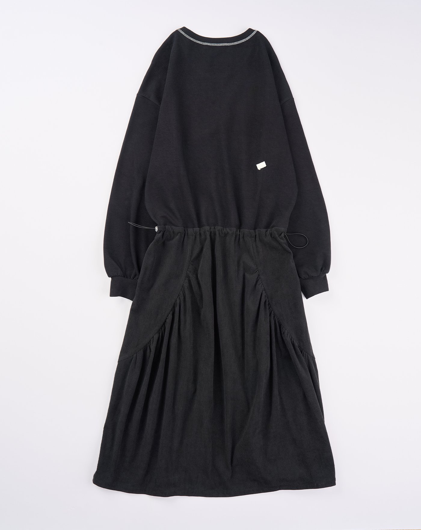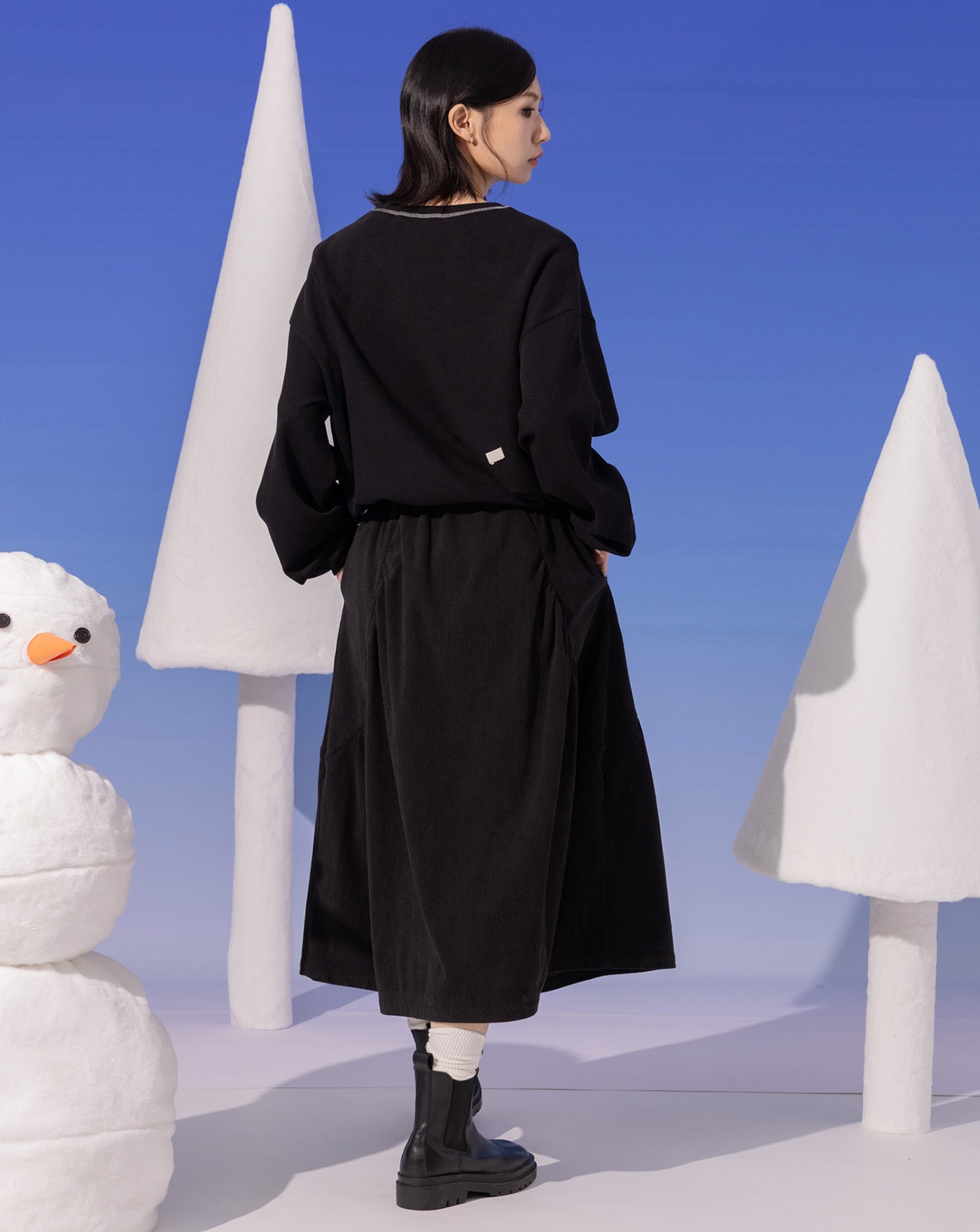 ➤洗滌小標半開襟條絨長袖洋裝(兩色)