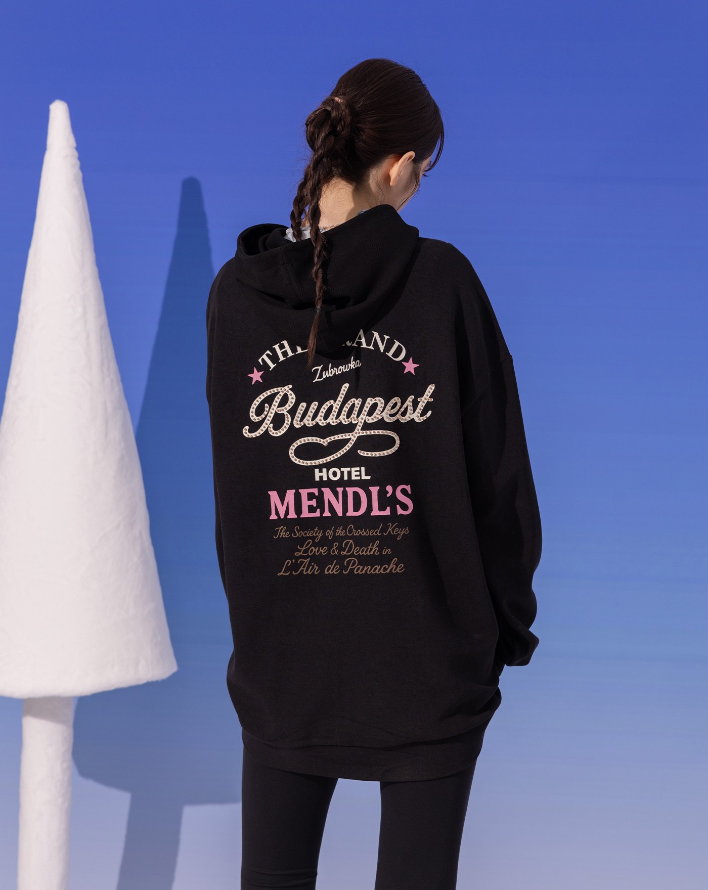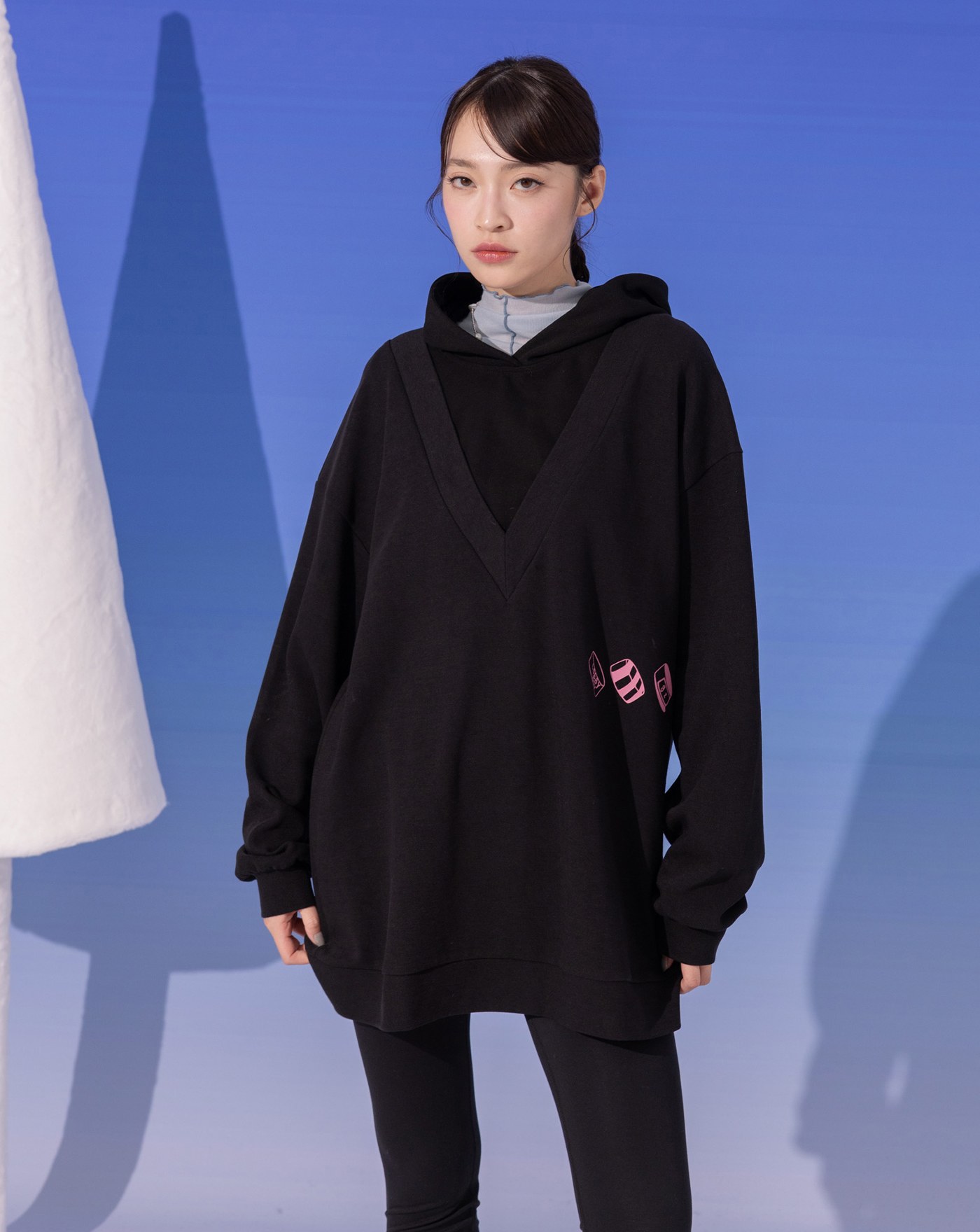 異素材拼接假兩件帽T