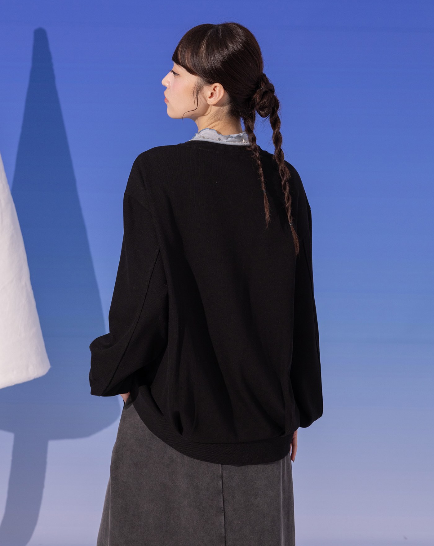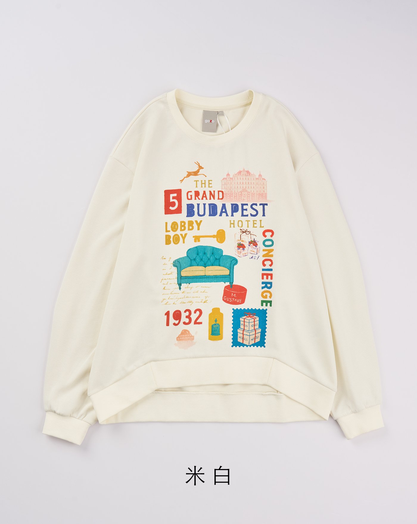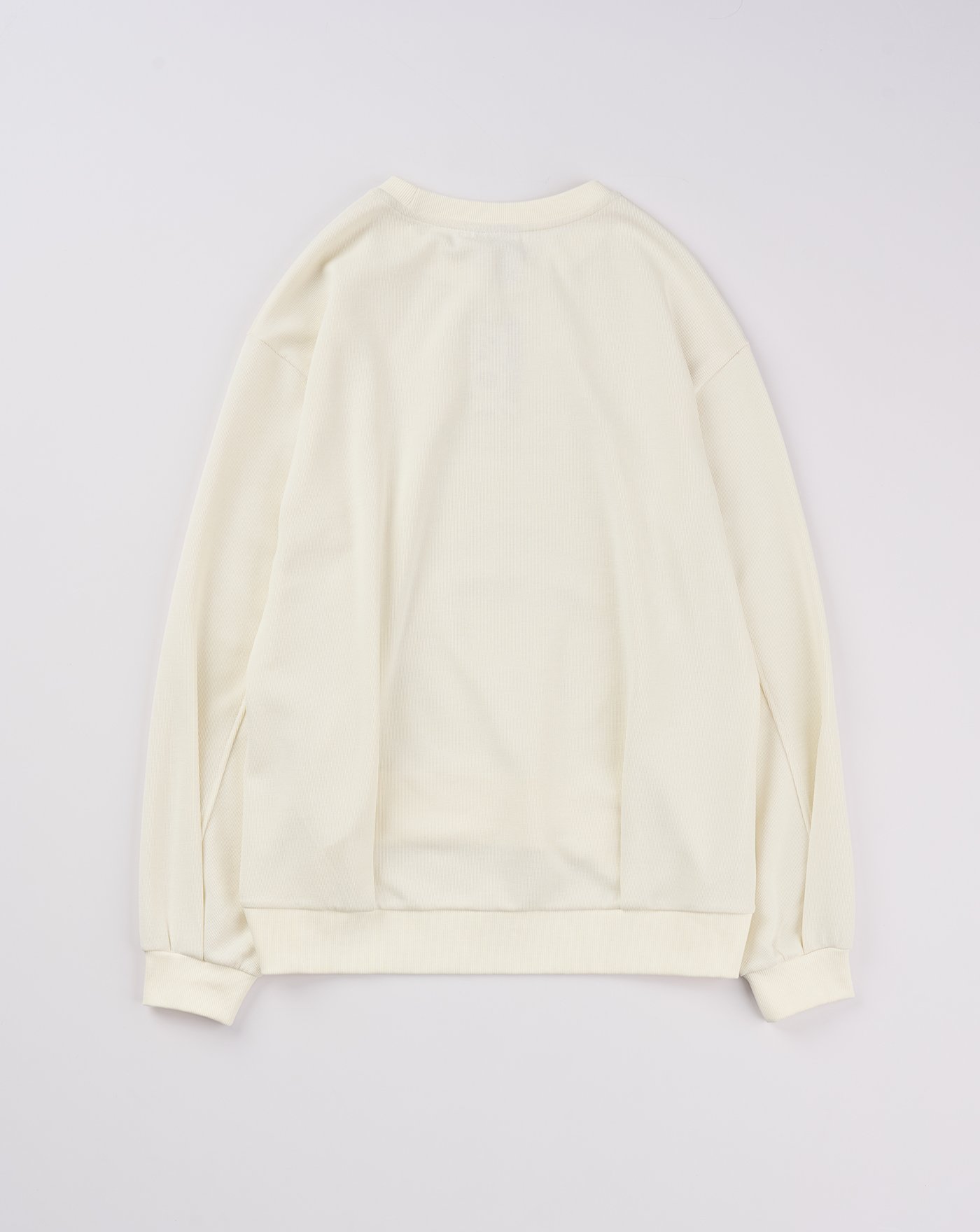 繩鼓造型圖案不對稱剪接大學T(兩色)