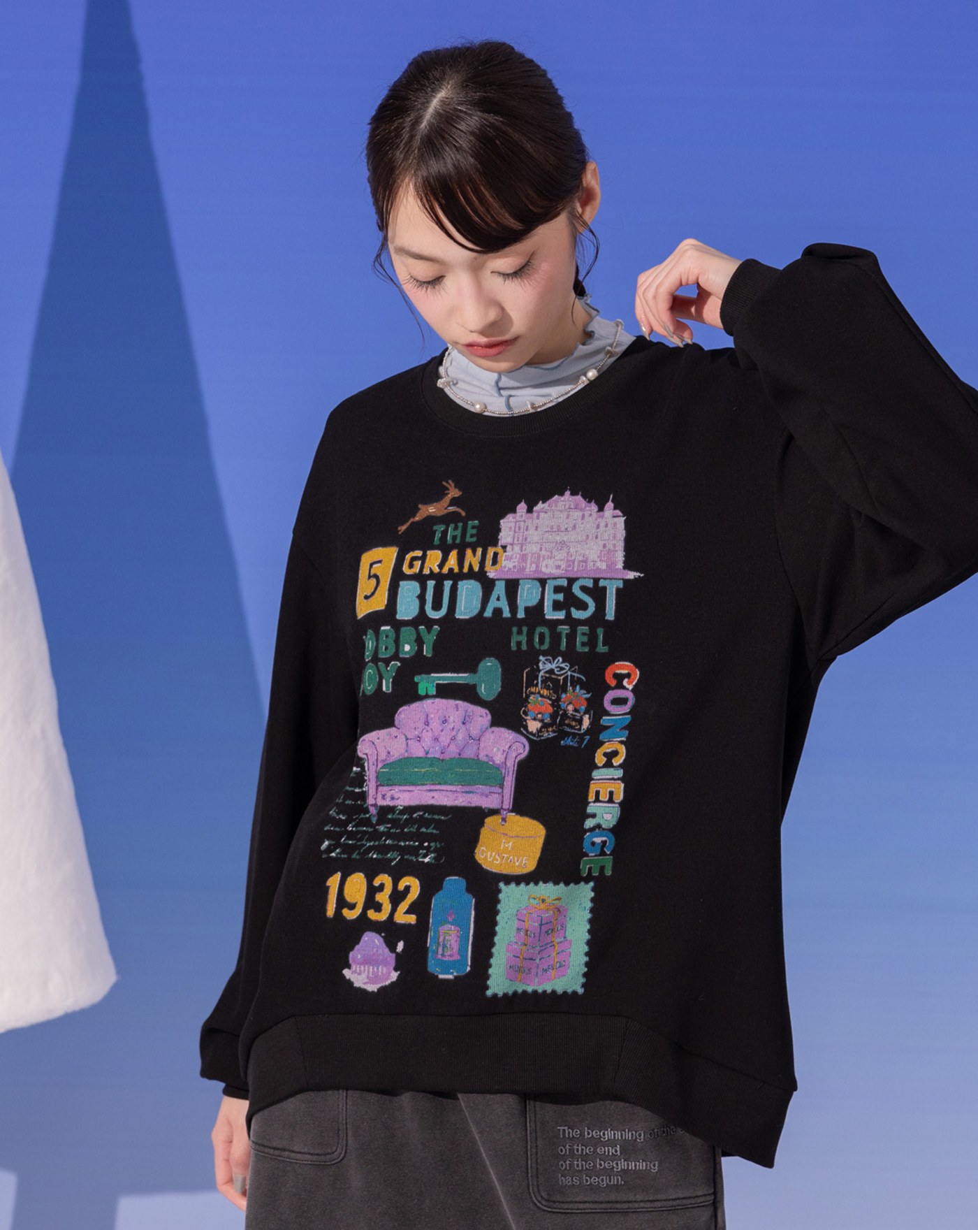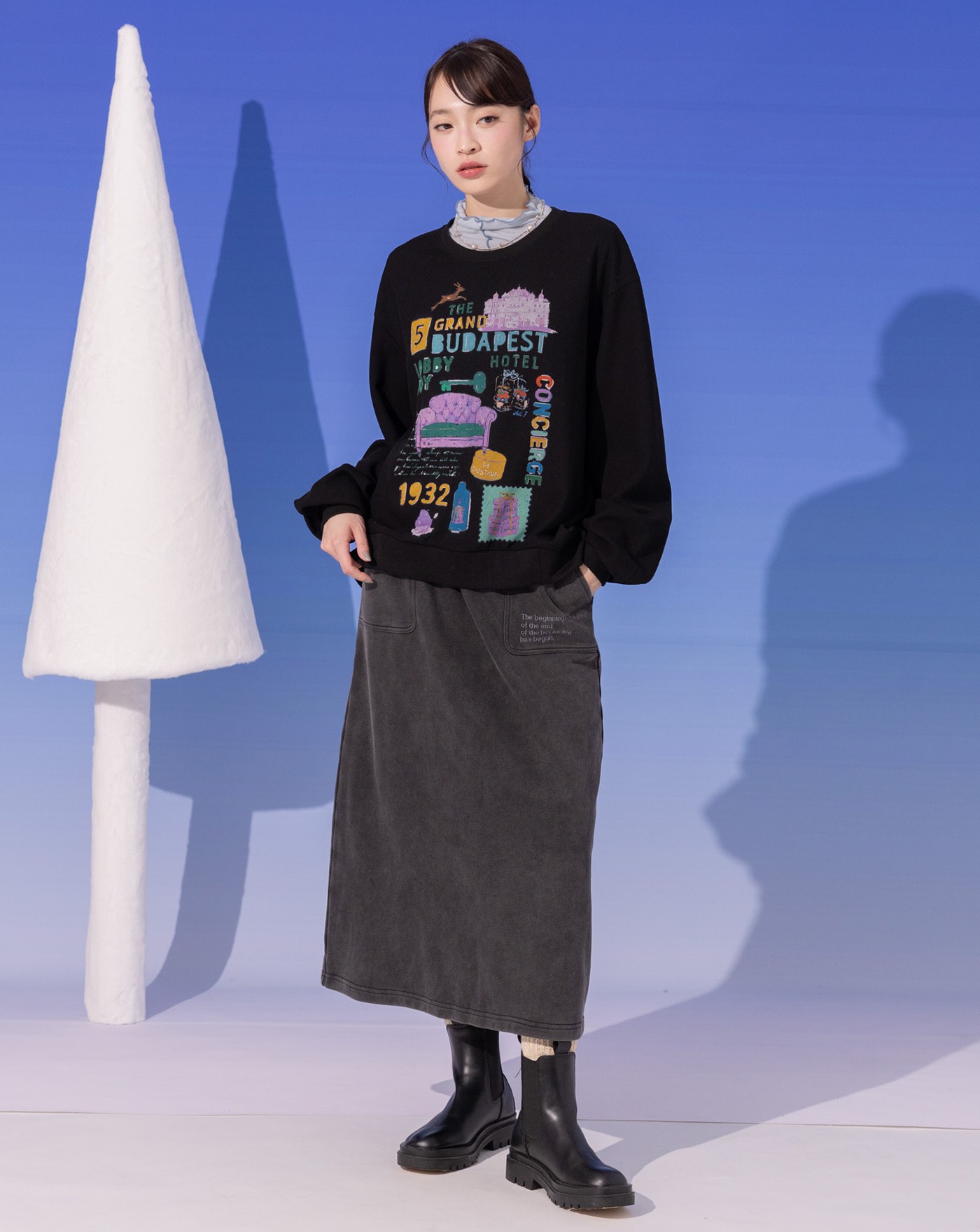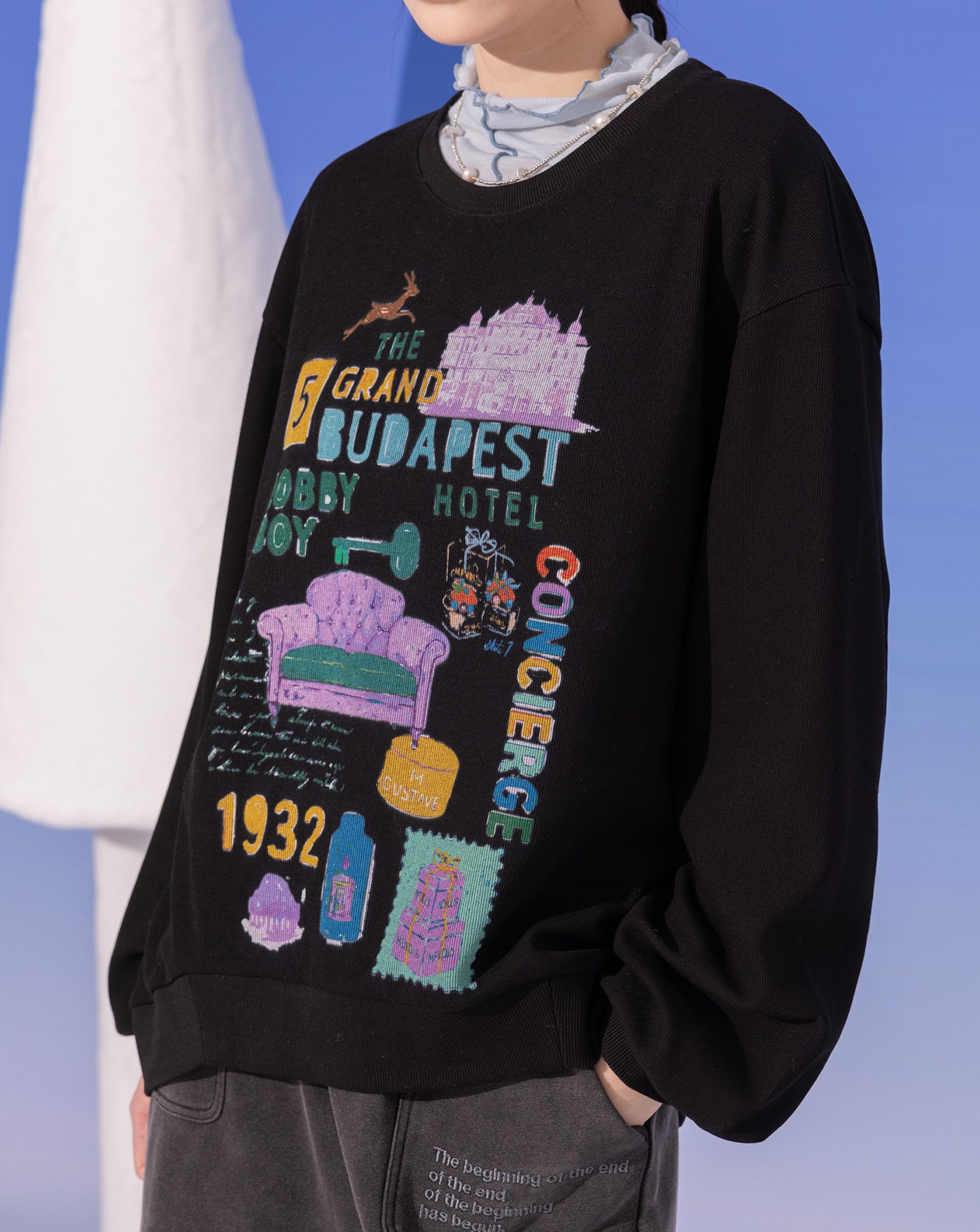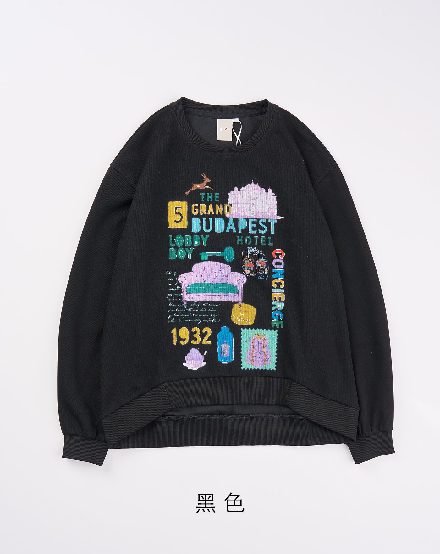 繩鼓造型圖案不對稱剪接大學T(兩色)