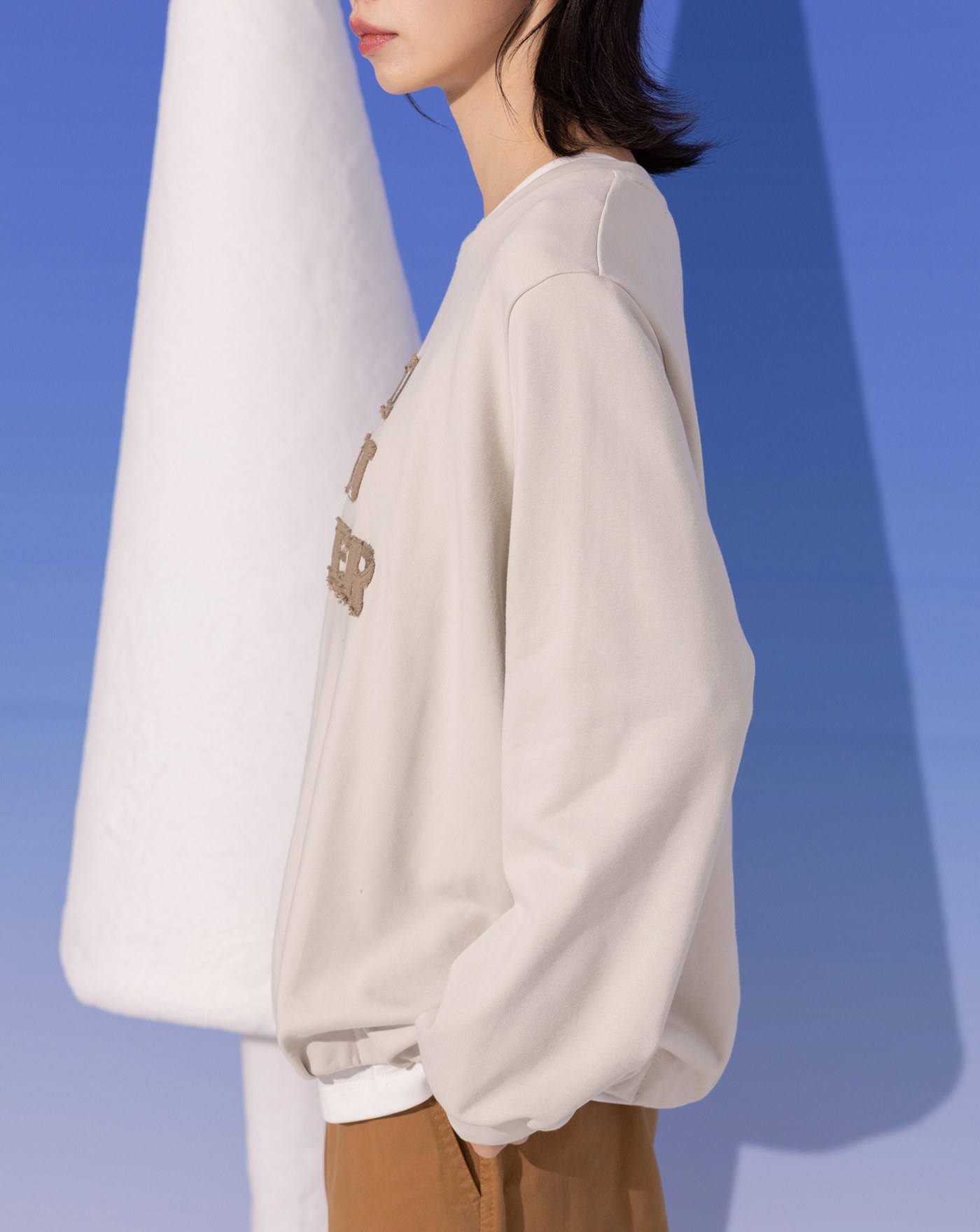 發熱不收邊英文貼布繡花大學T(兩色)