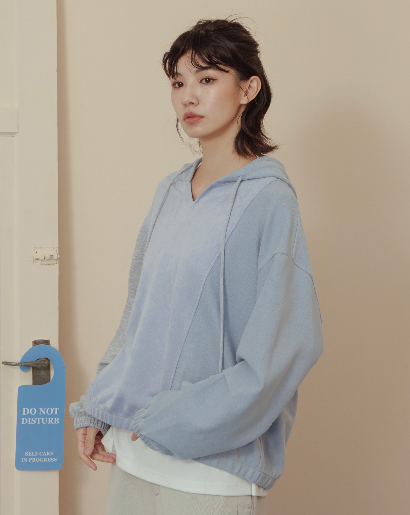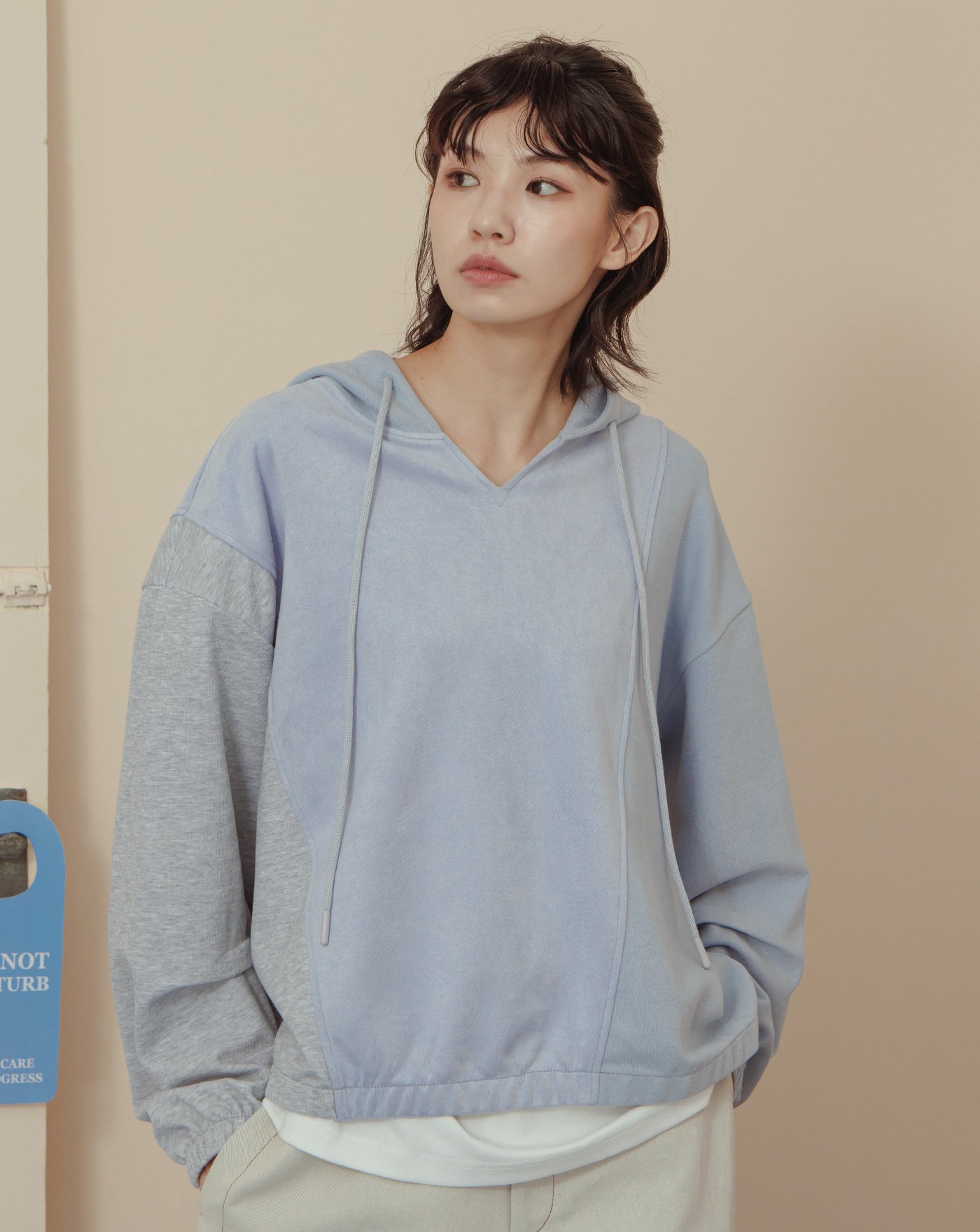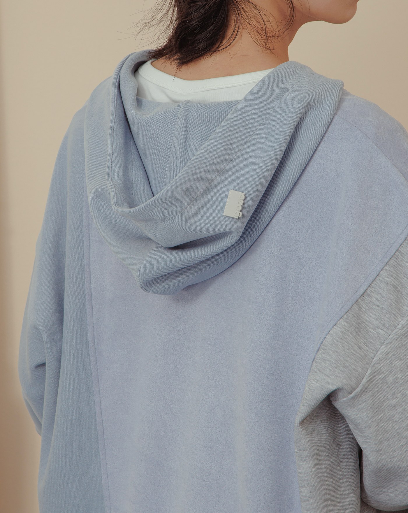 異材質拼接立體袖開衩帽T
