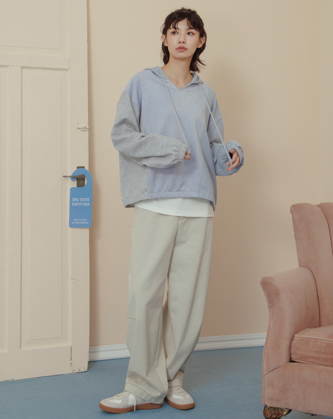 懶人小沙發異材質剪接造型帽T(兩色)