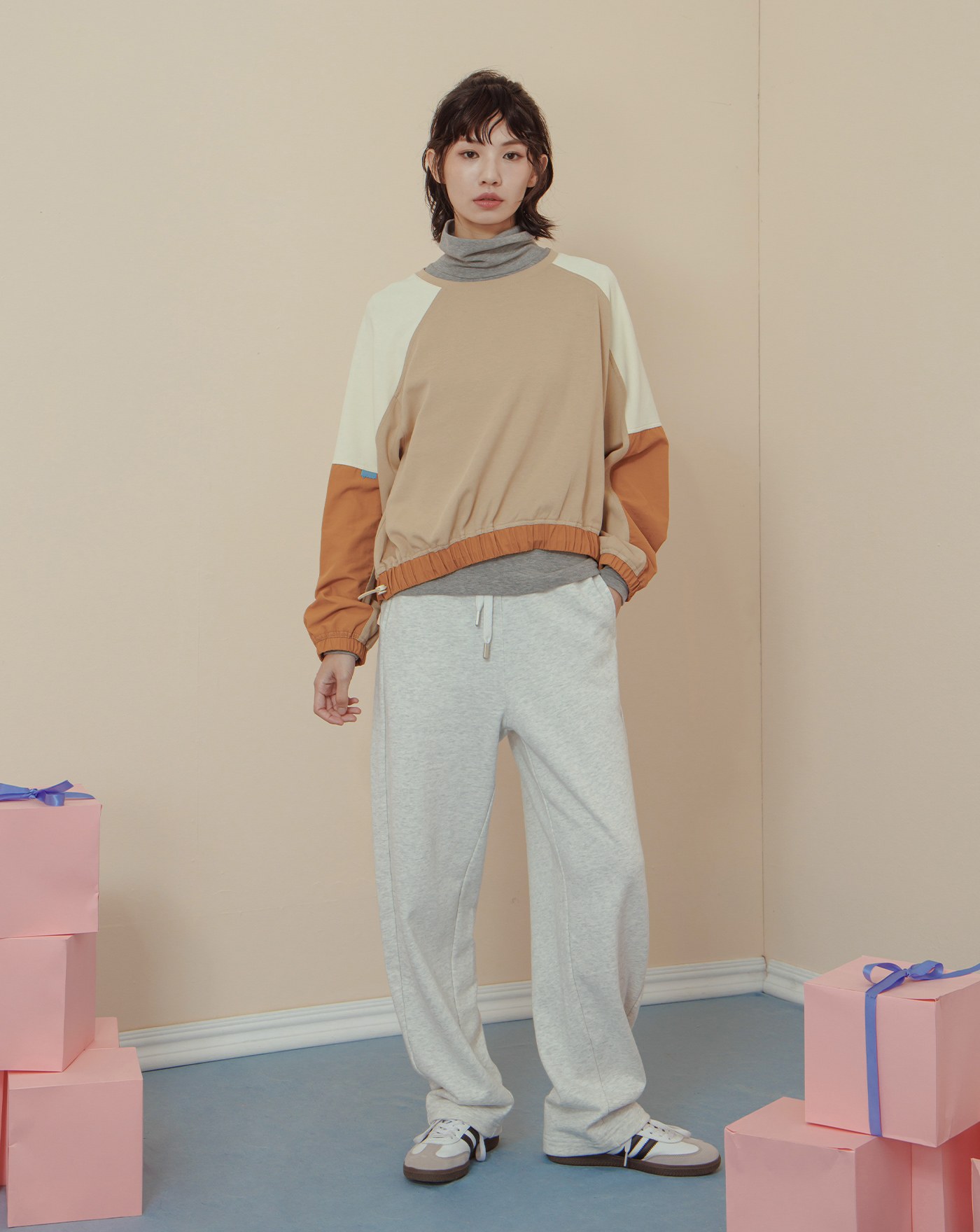 側邊顯瘦剪接抽繩鬆緊長褲(兩色)