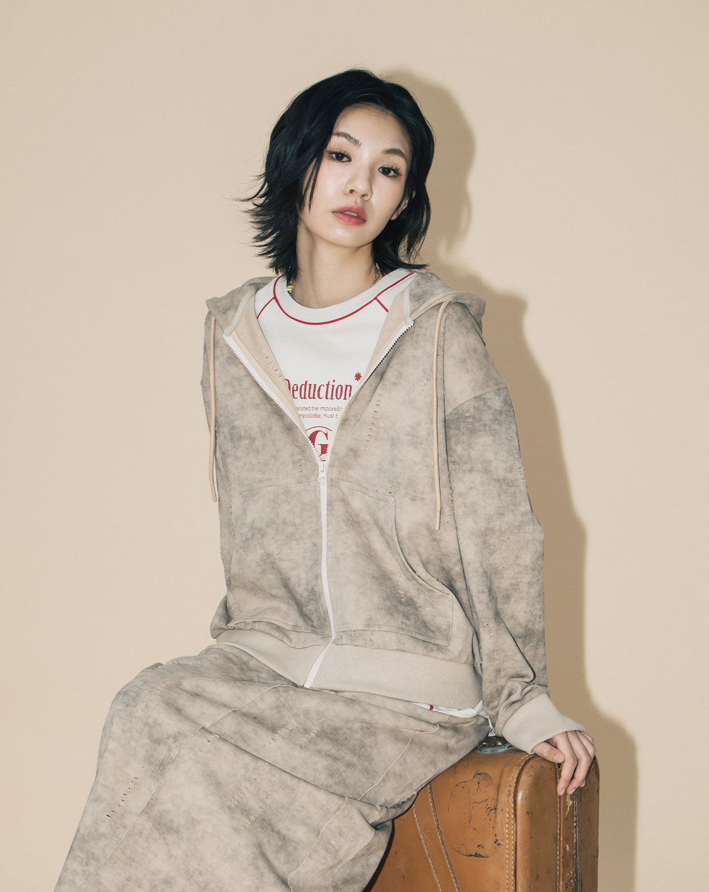 字母貼布繡仿毛料連帽外套(兩色)