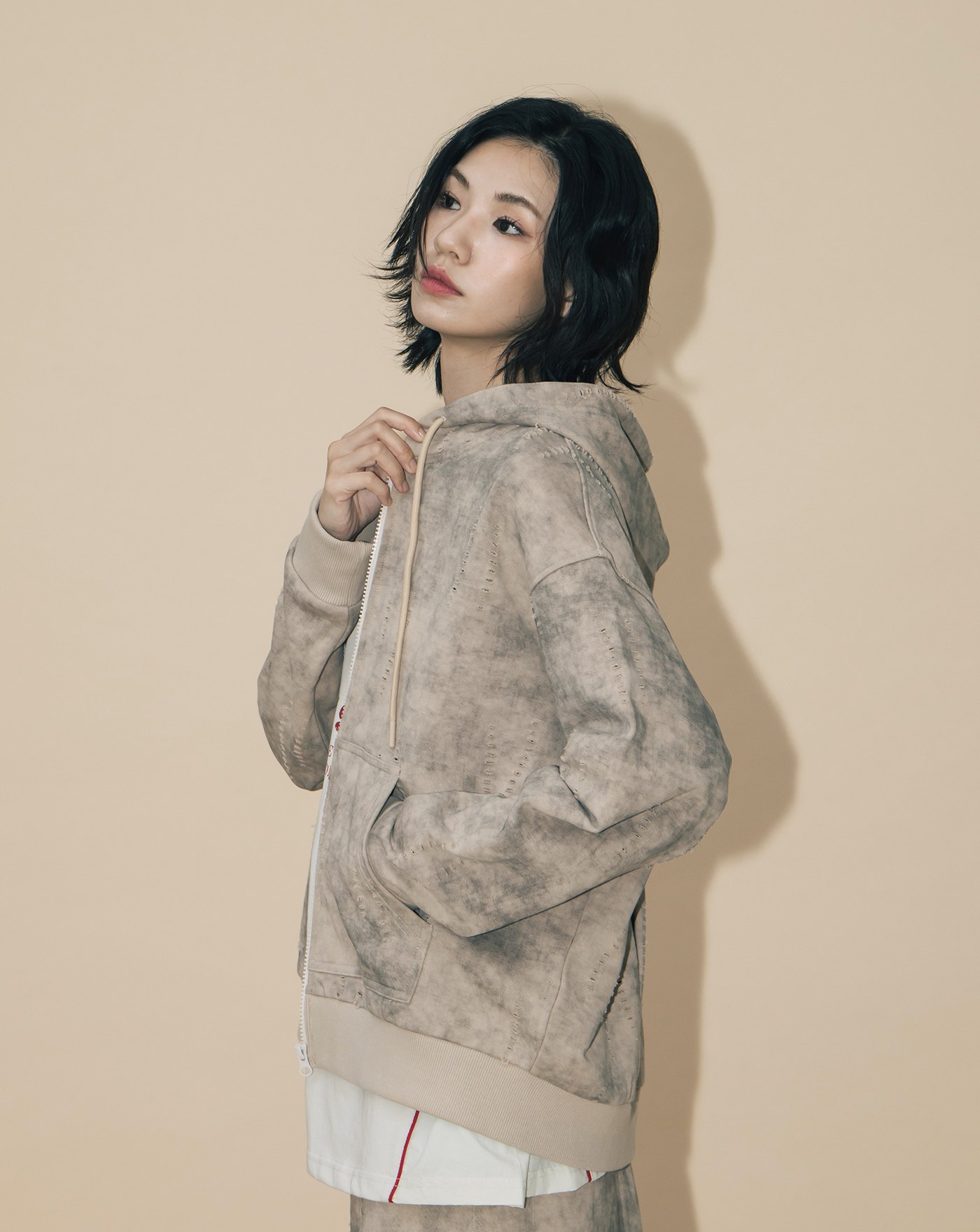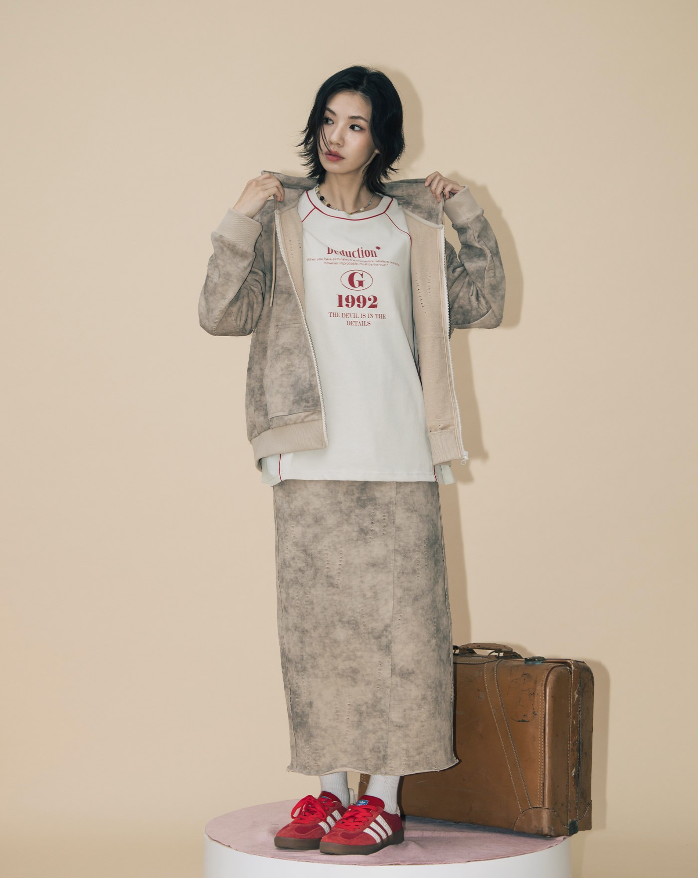 A|水洗仿舊剪破純棉直筒長裙(兩色)