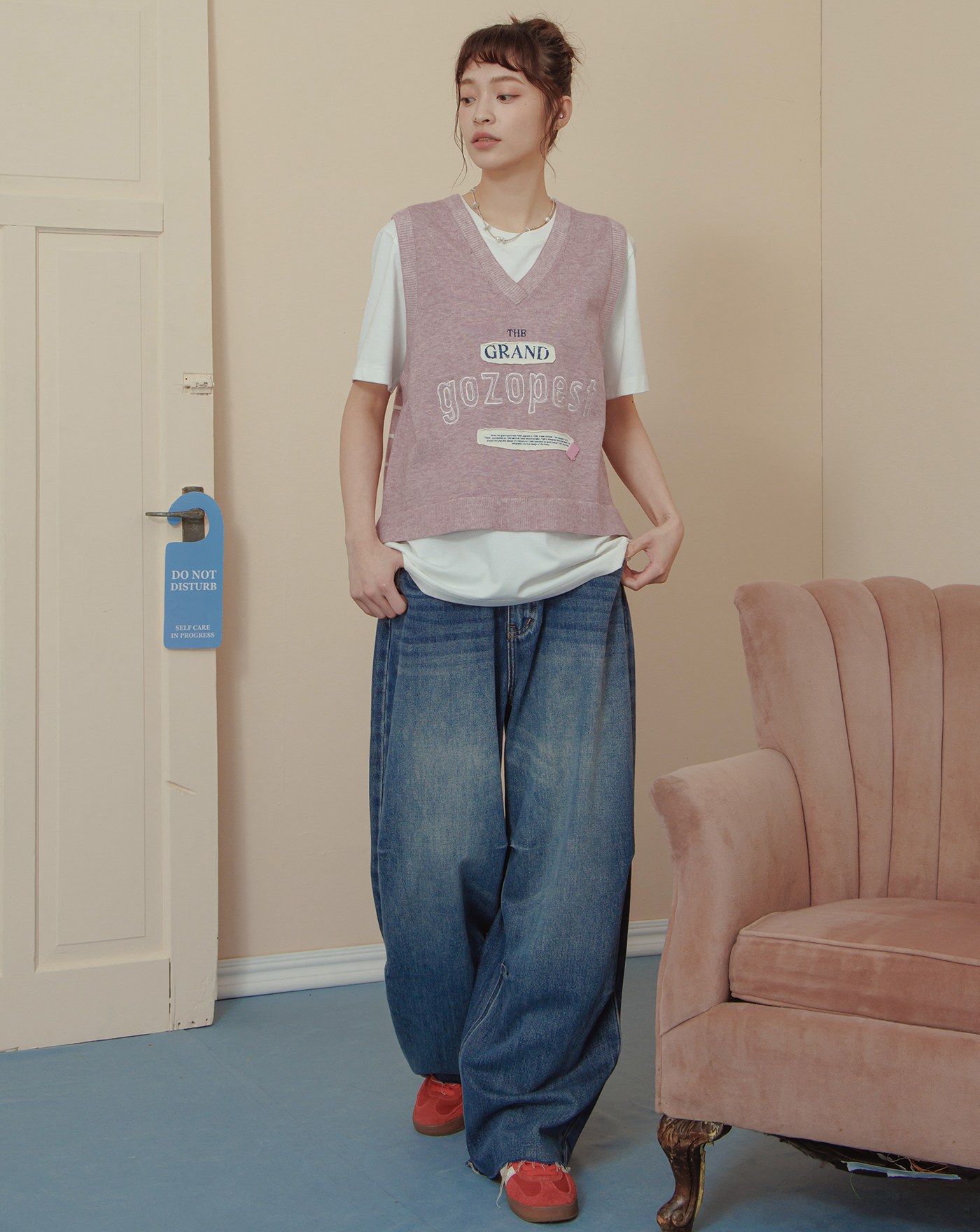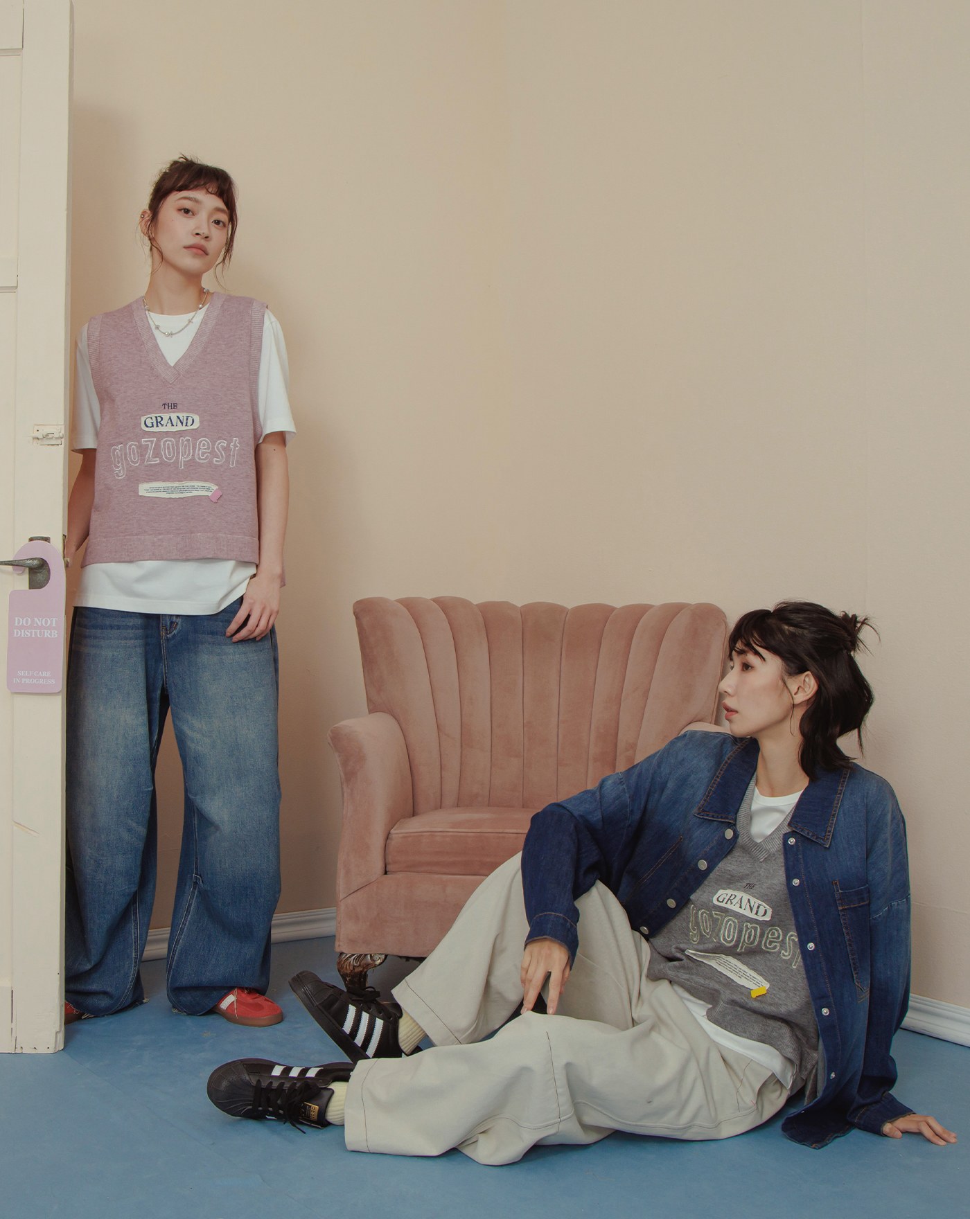 率性抓褶不收邊下擺直筒牛仔褲(兩色)