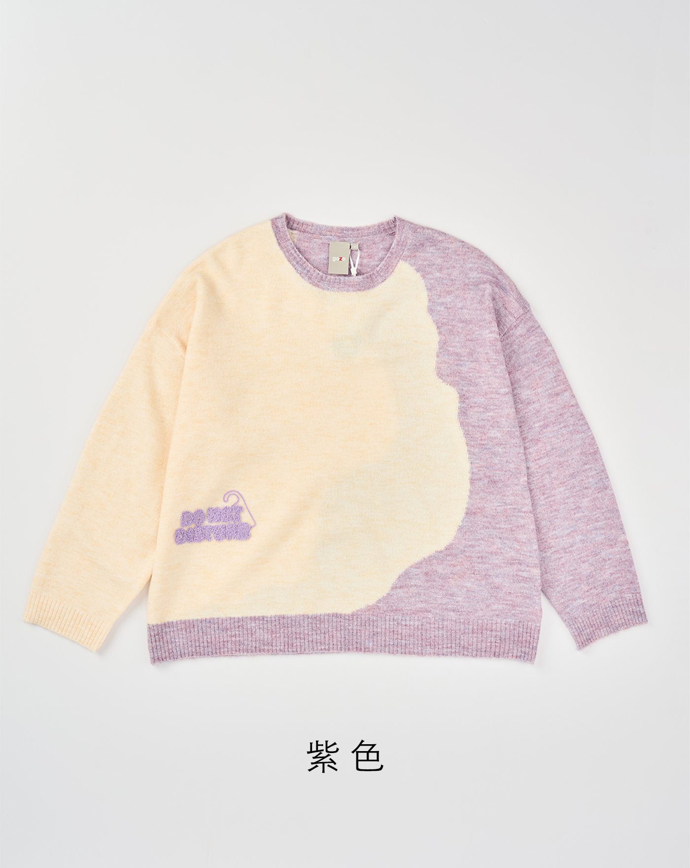 鑰匙圖案撞色緹花針織毛衣(兩色)