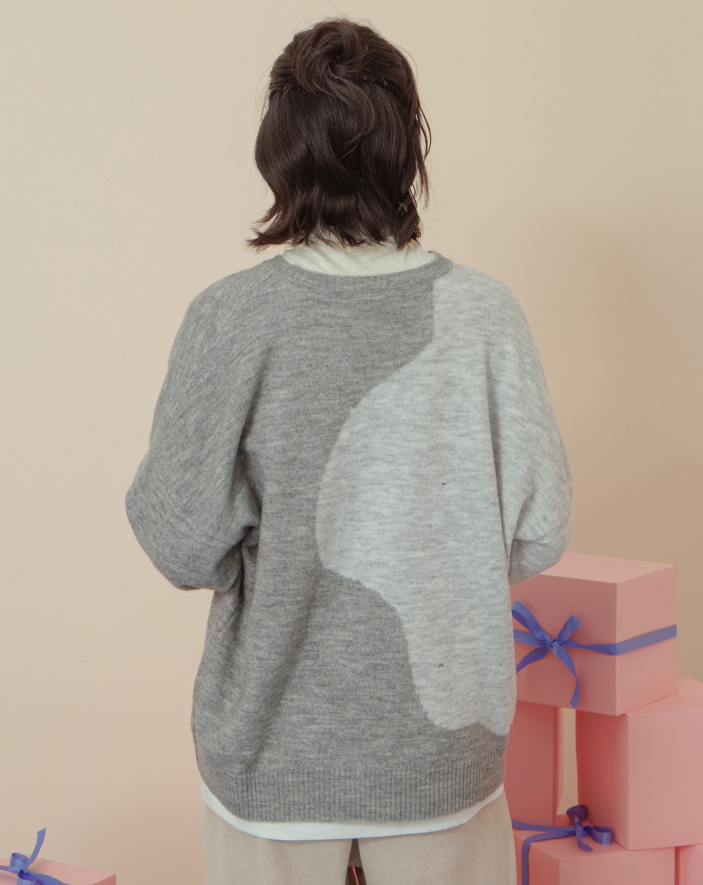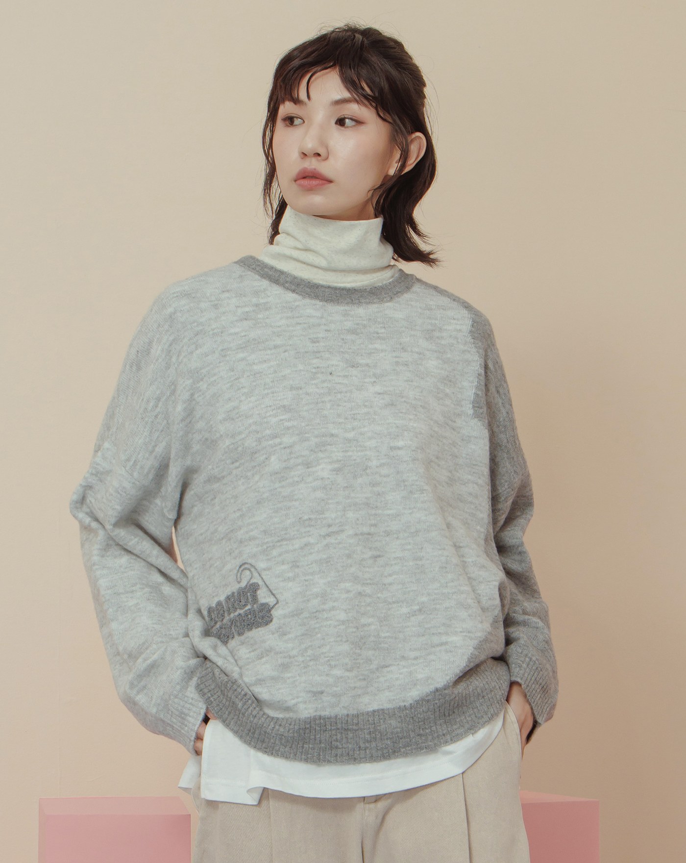 鑰匙圖案撞色緹花針織毛衣(兩色)