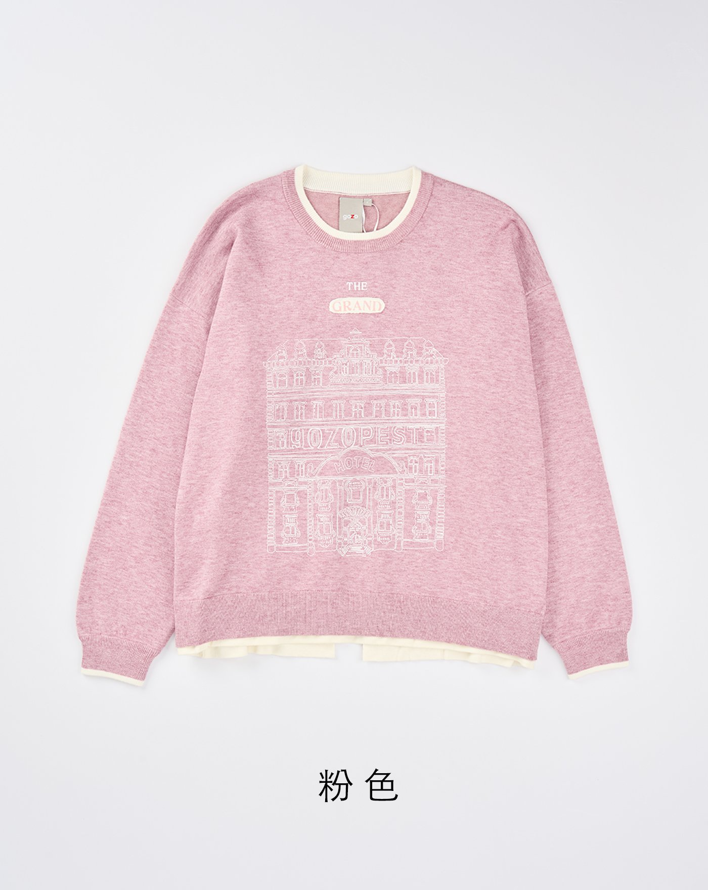 ➤古人漫步毛線繡圓領毛衣(兩色)