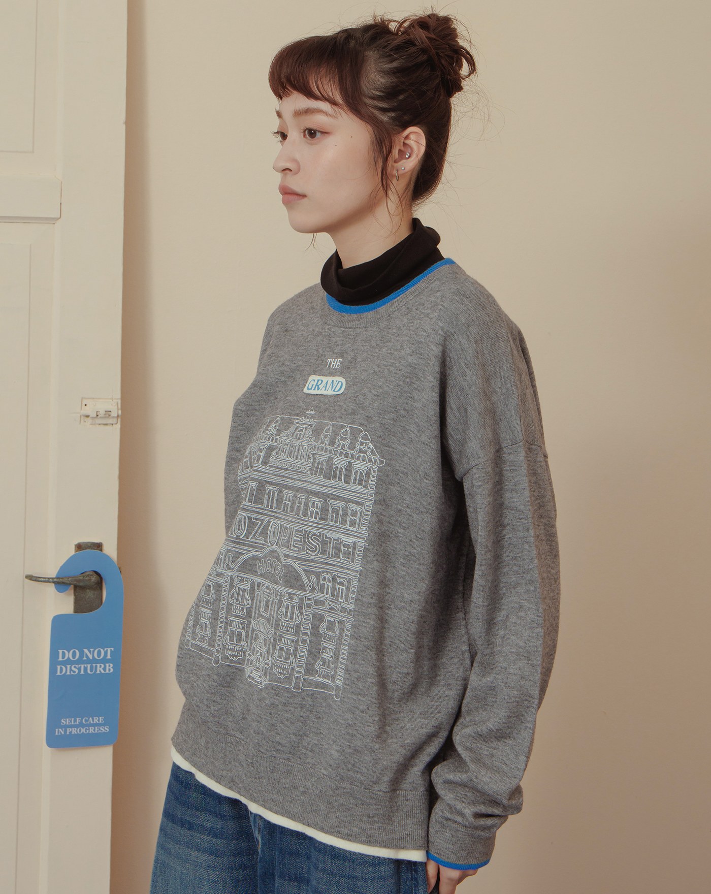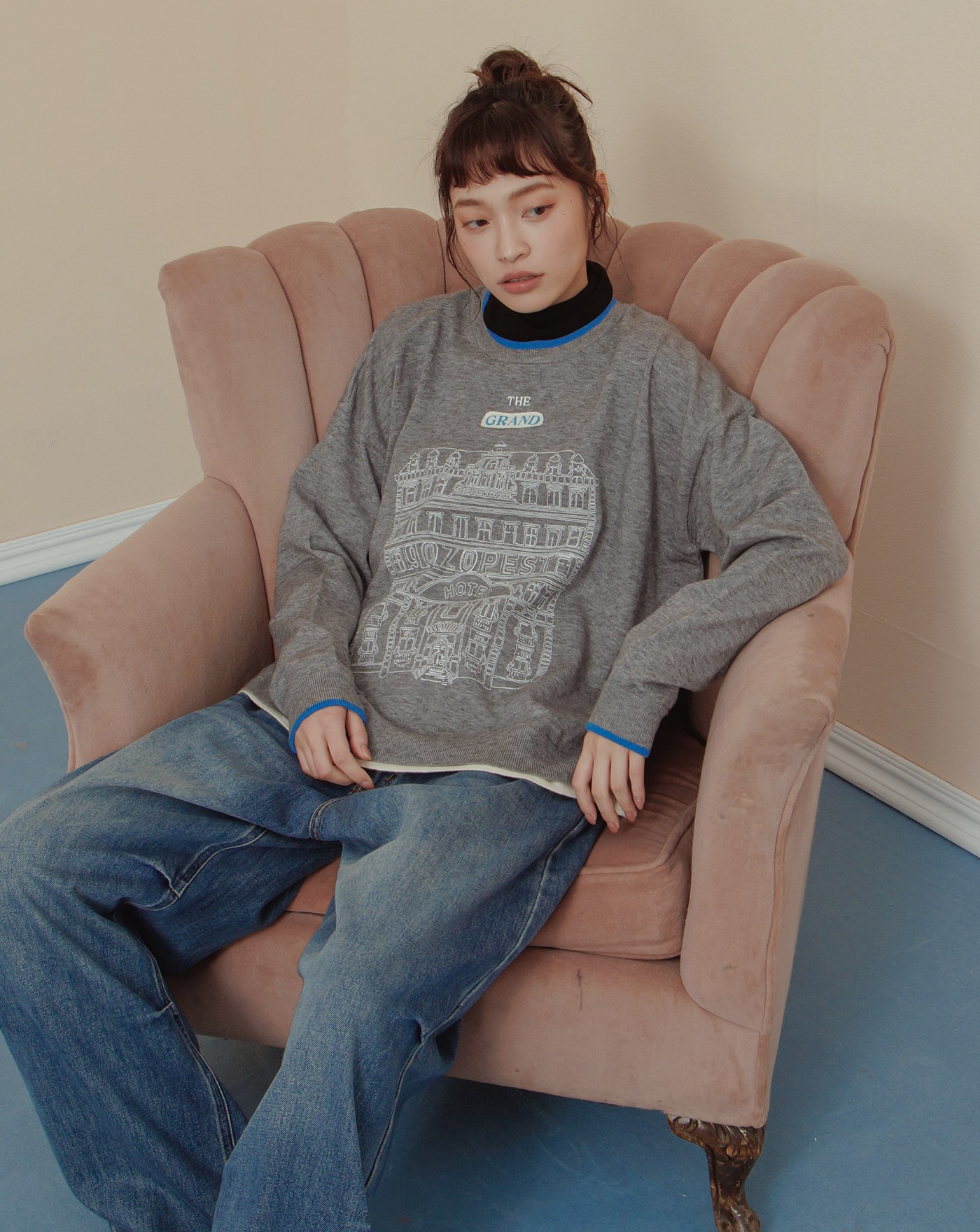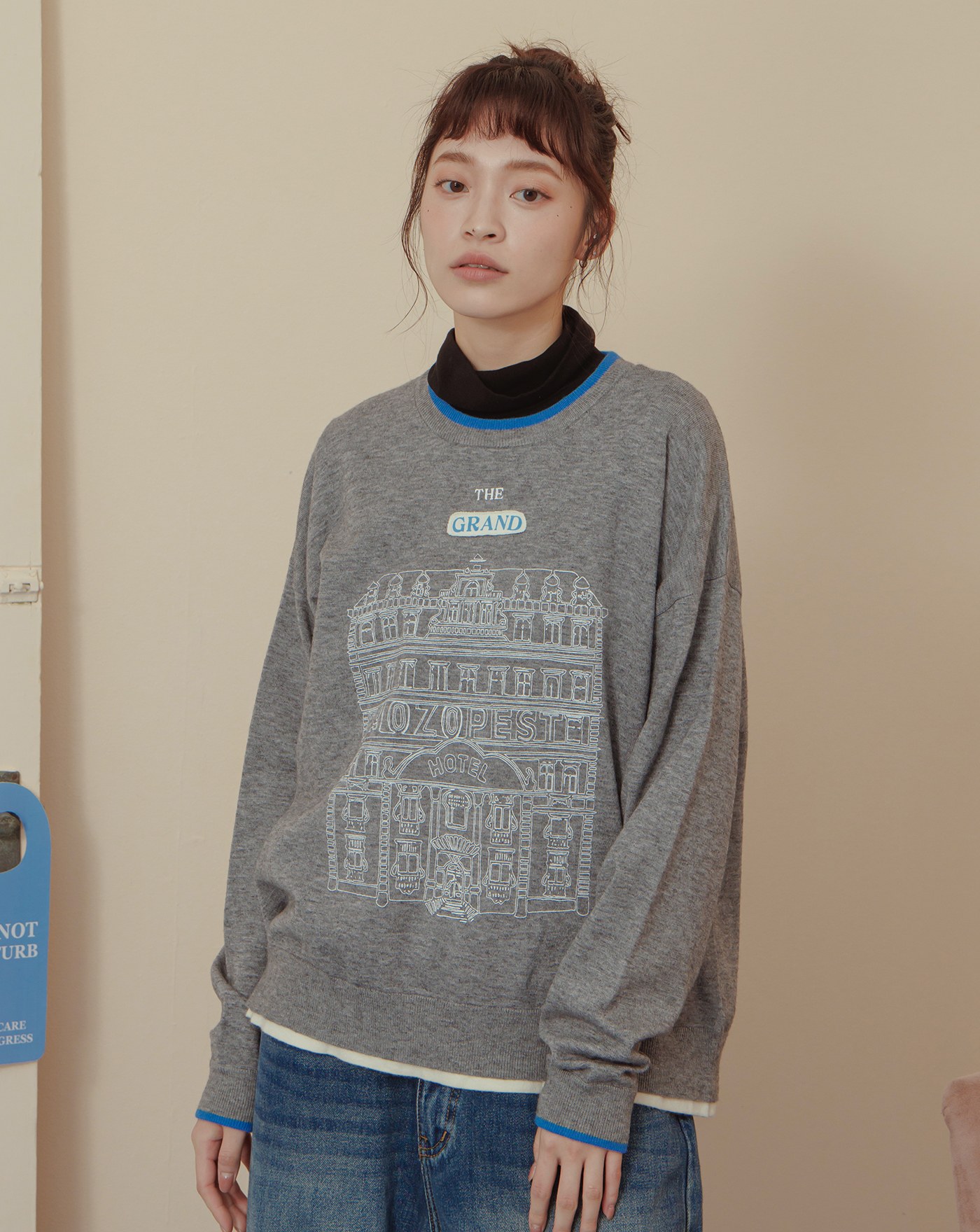 ➤古人漫步毛線繡圓領毛衣(兩色)