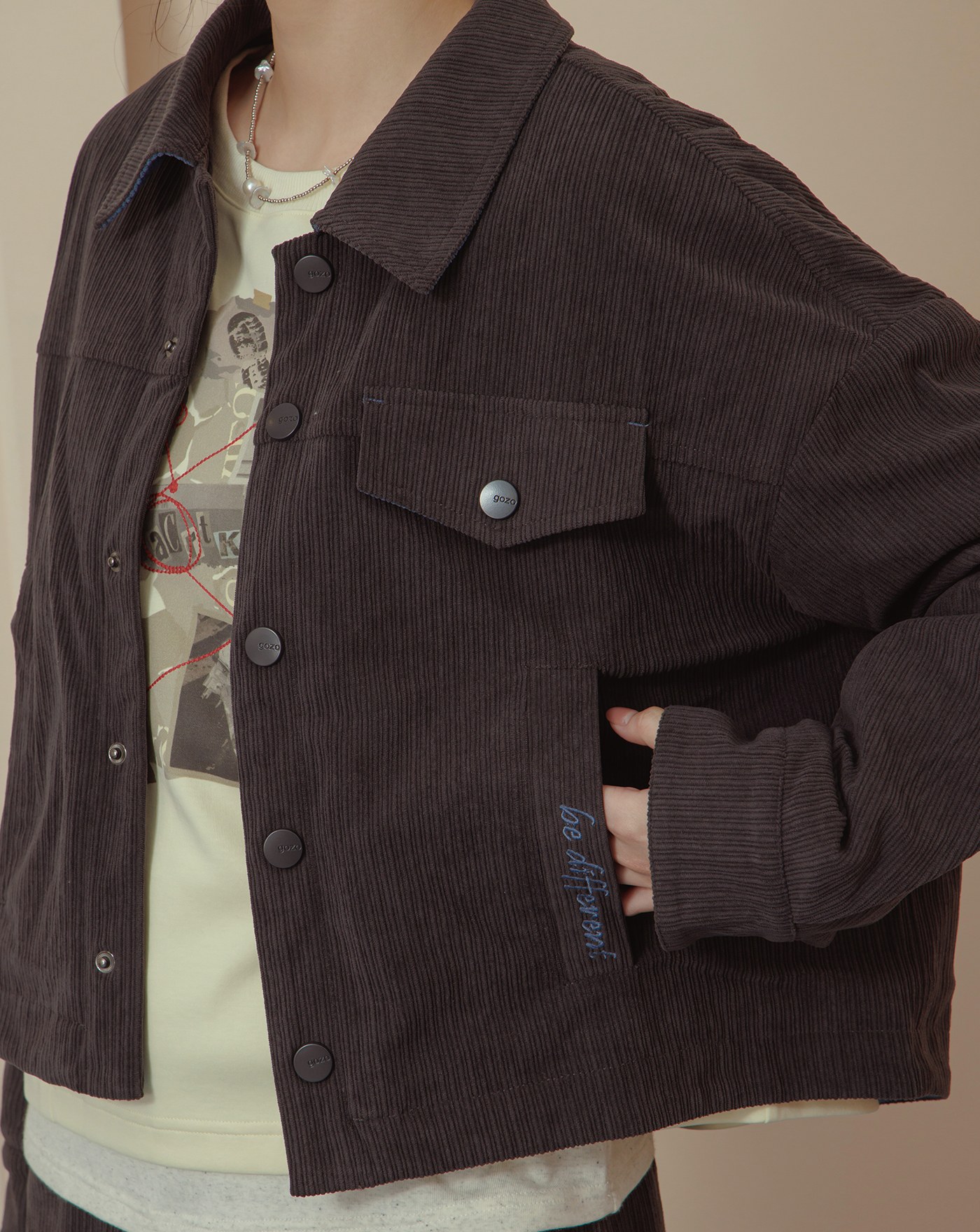 ➤配色壓線口袋撞色刺繡襯衫外套(兩色)