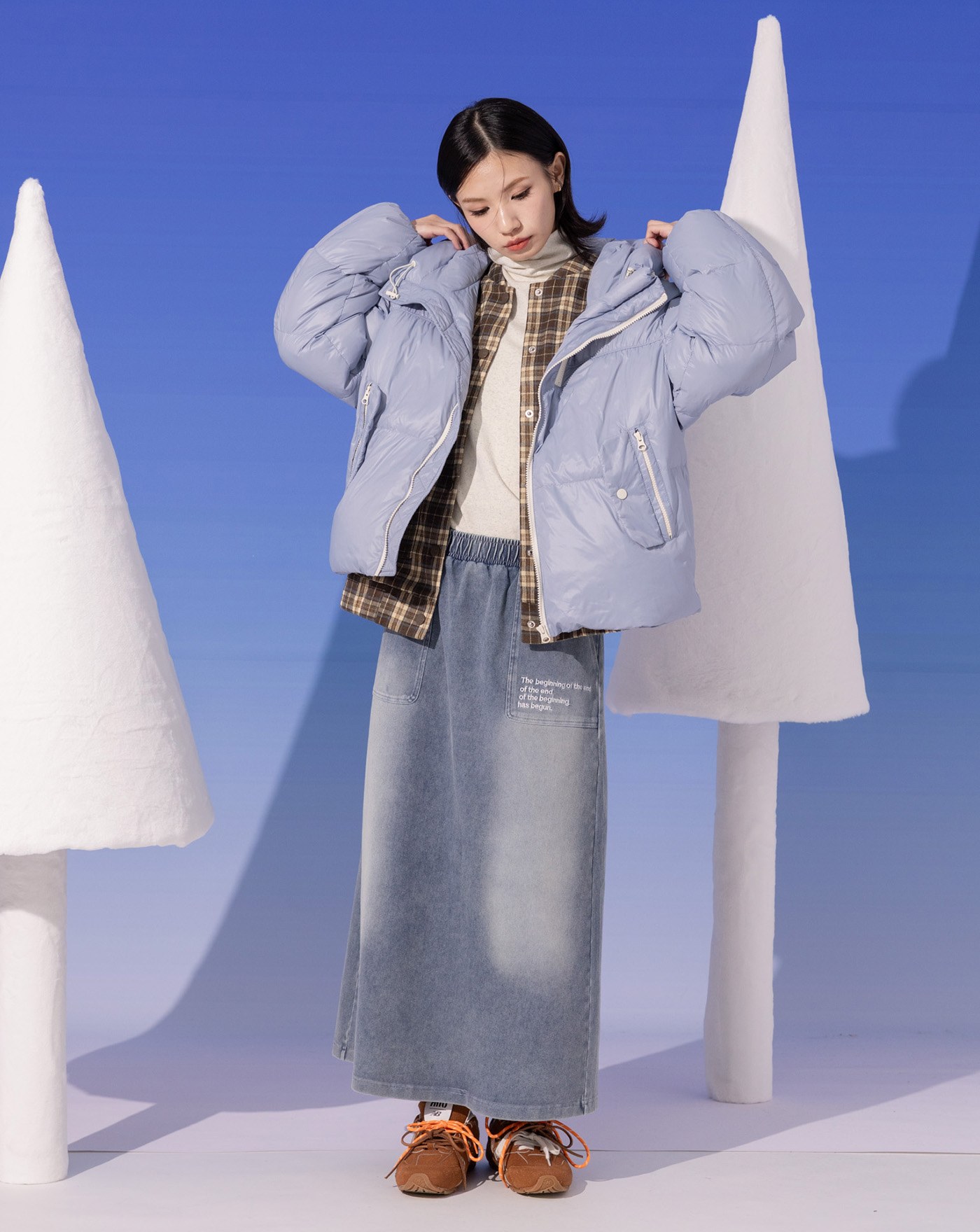 ➤撞色蓬蓬連帽羽絨外套(三色)