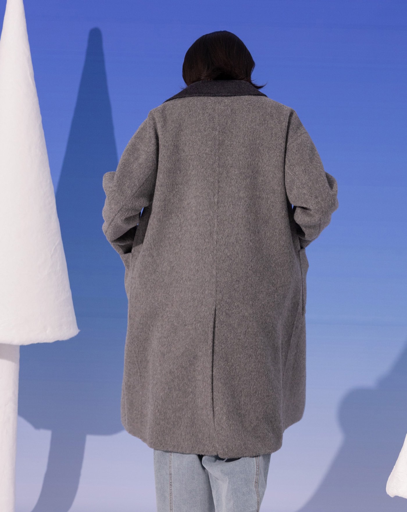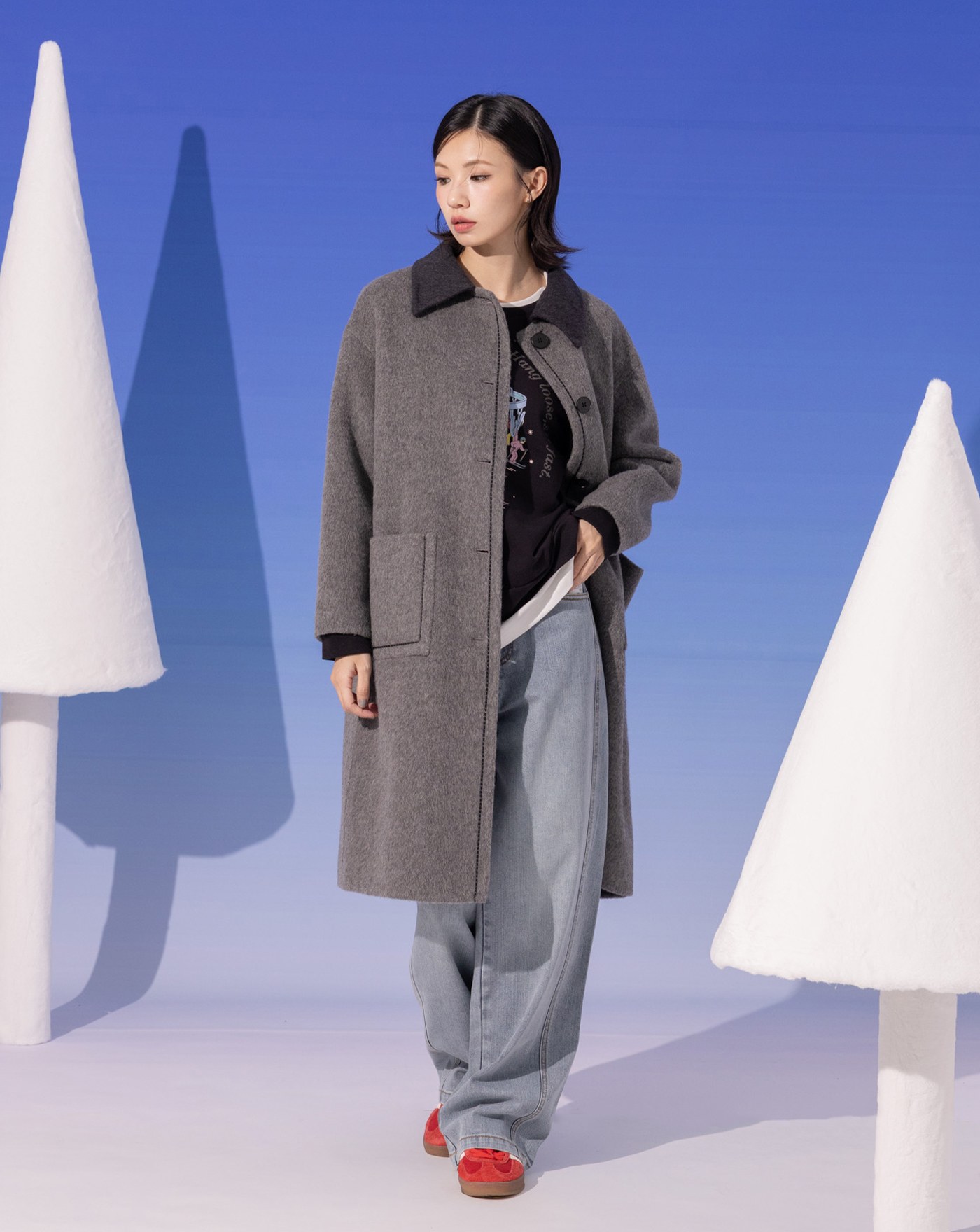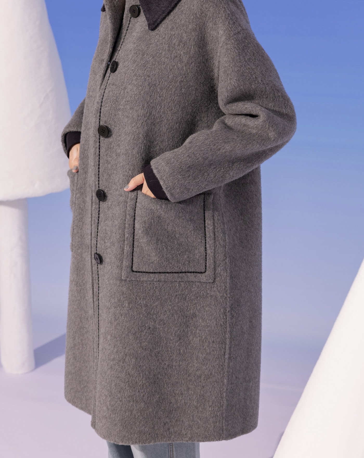 ➤緹花織帶牛角釦羊毛連帽短大衣(兩色)