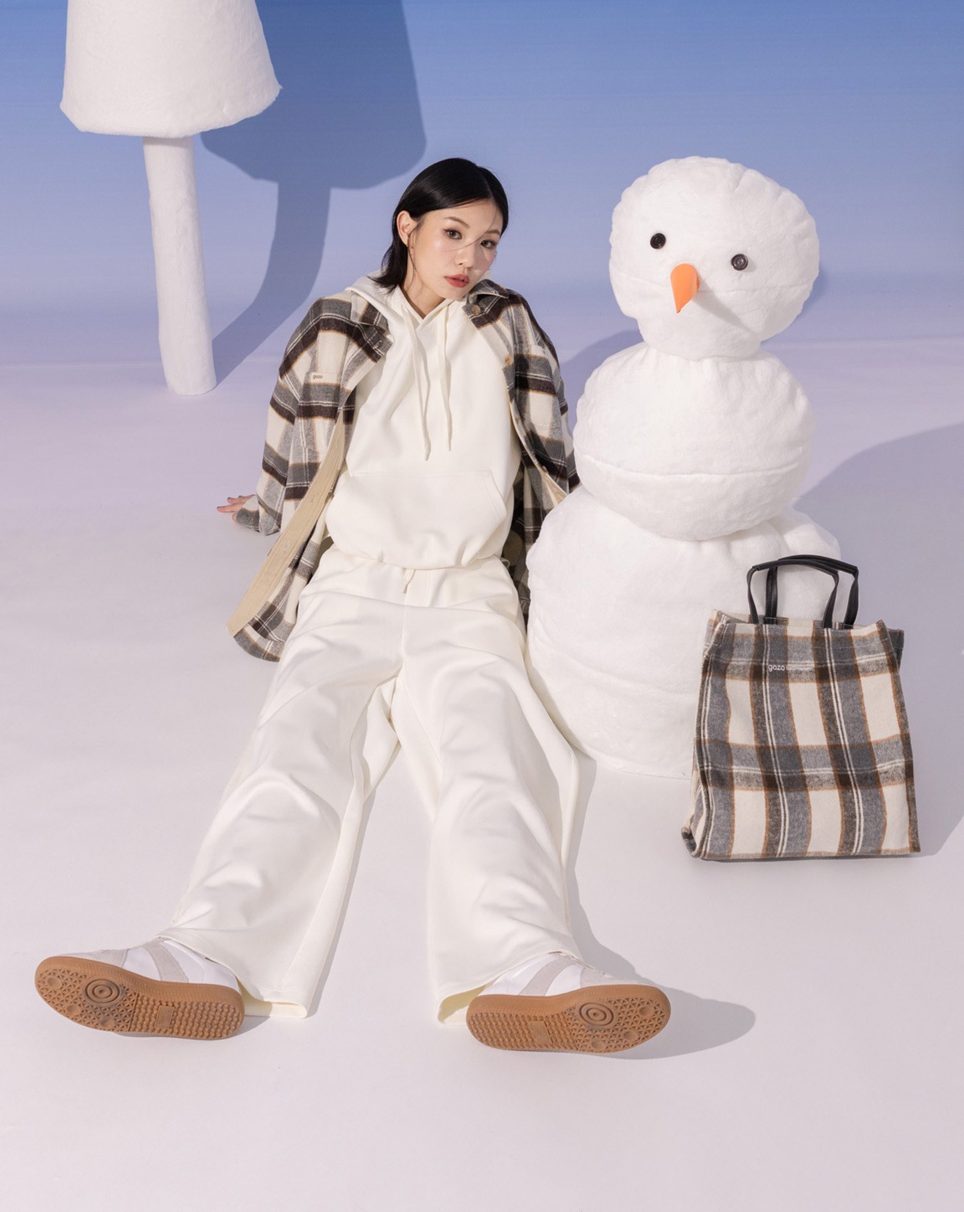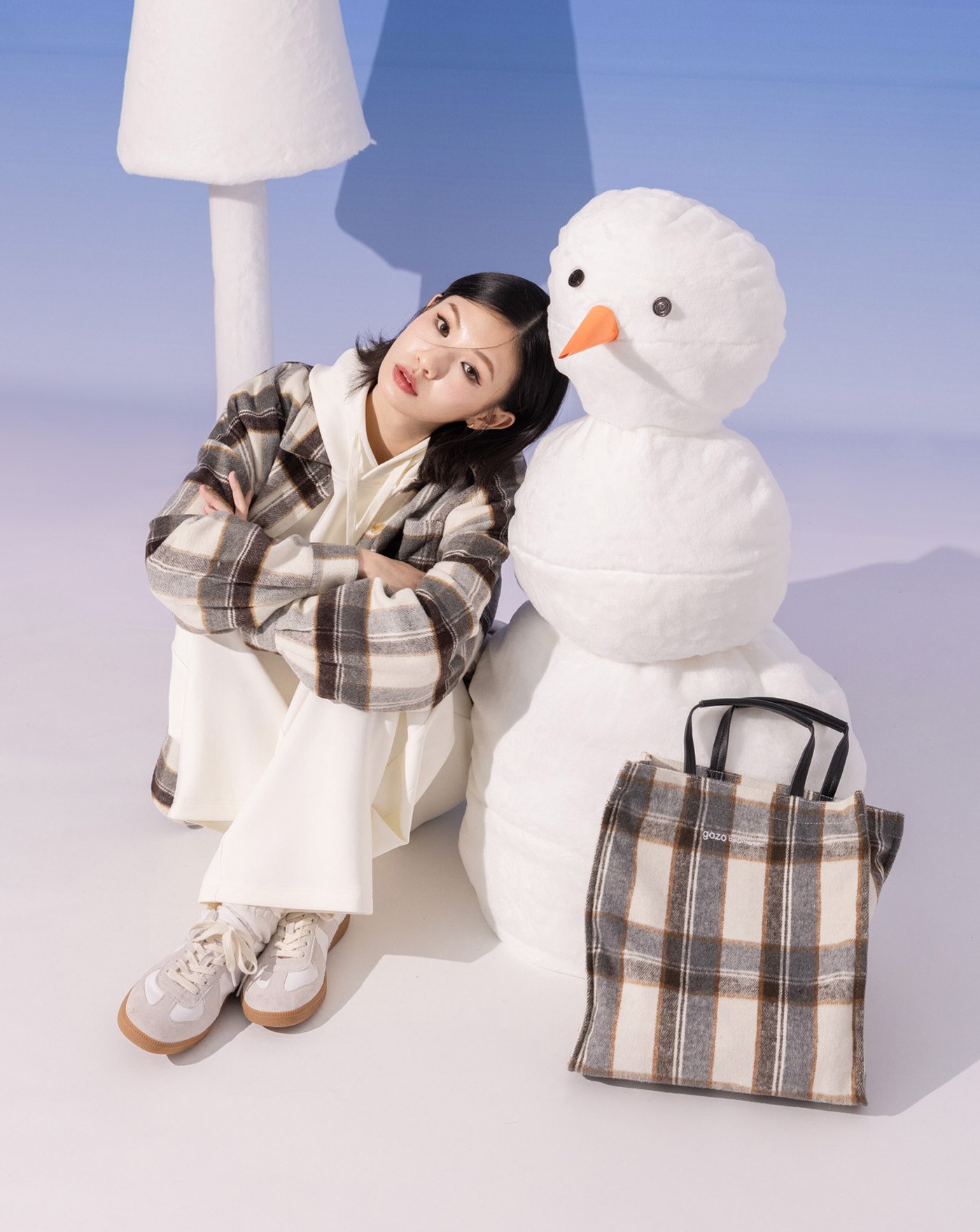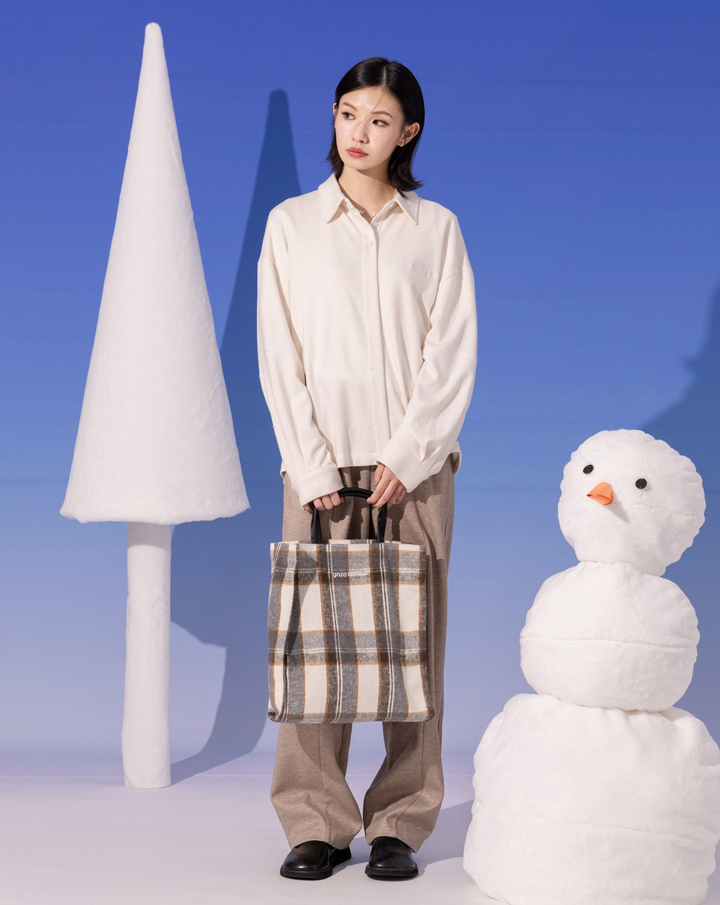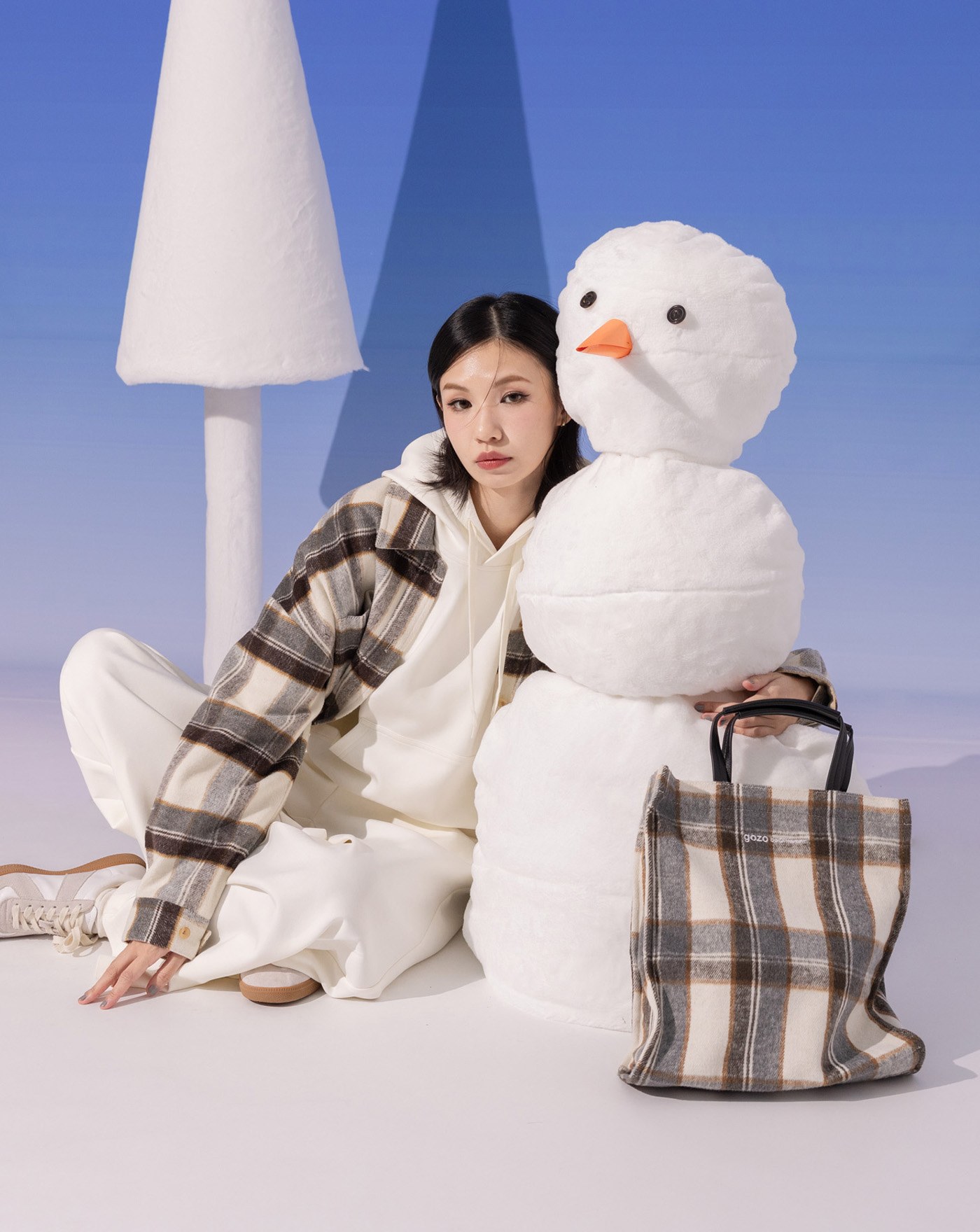 格子毛呢造型流蘇圍巾(三色)