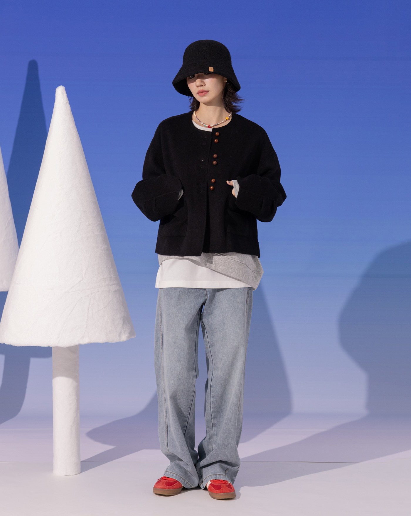 許願刺繡單寧漁夫帽(三色)