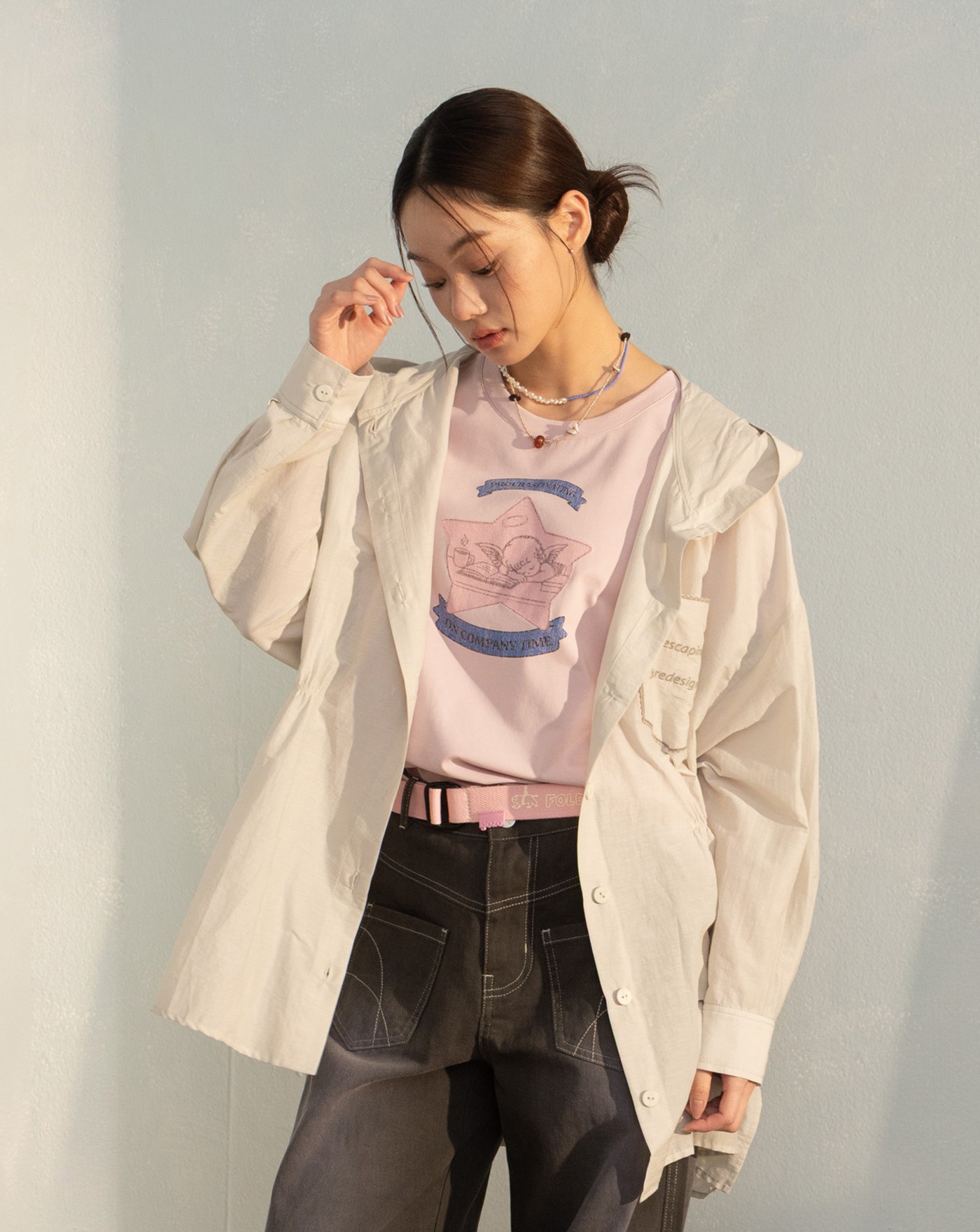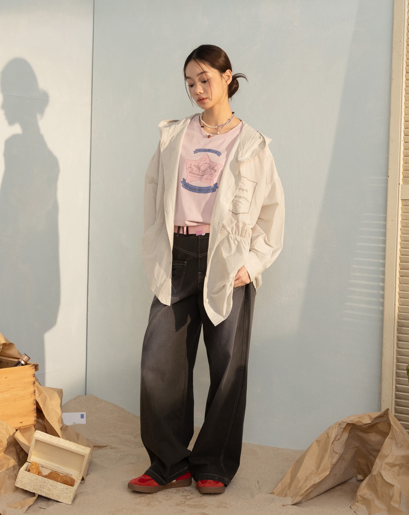 A|抽皺荷葉邊格紋連帽外套(兩色)