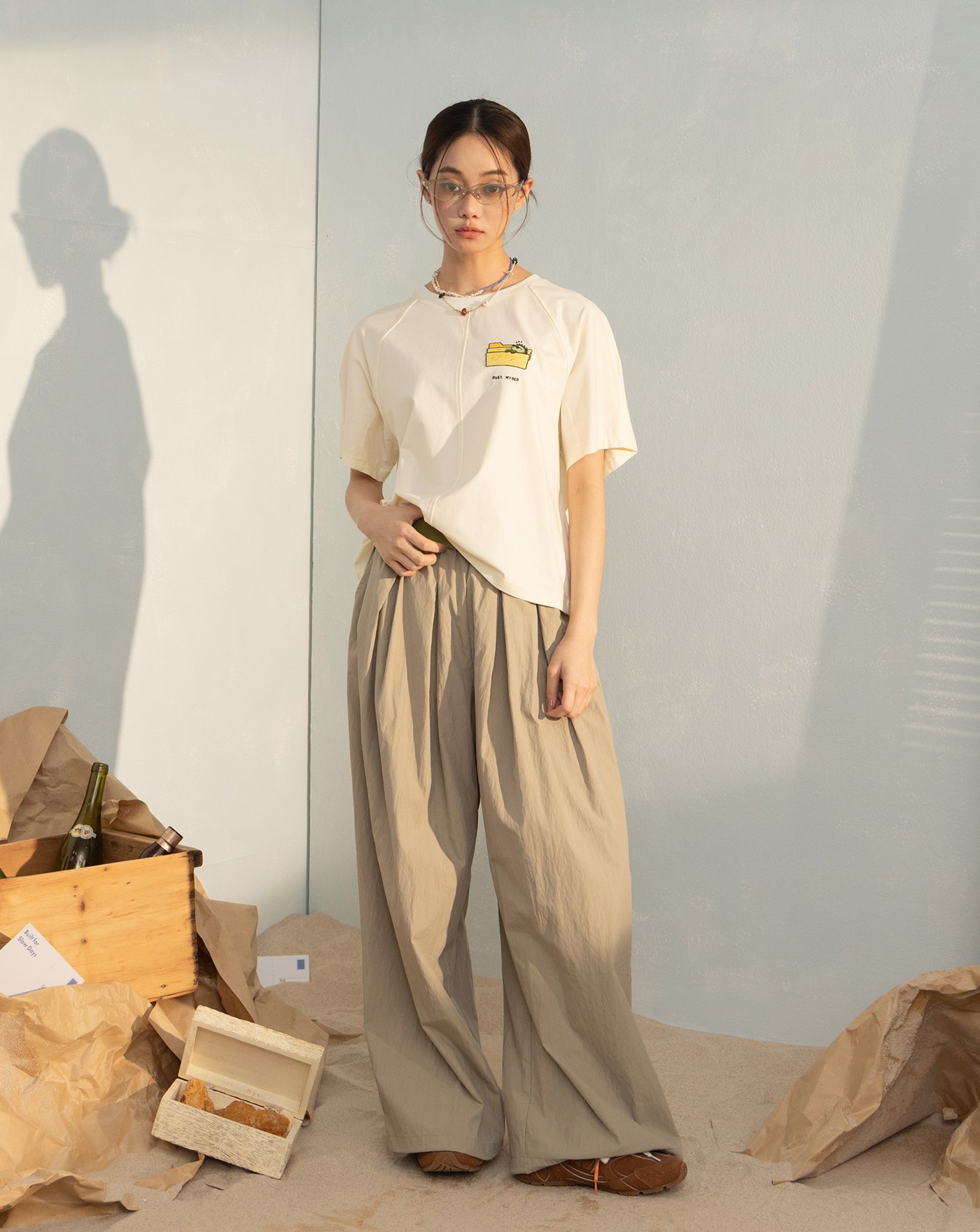 涼感立體抓褶工裝寬褲(兩色)