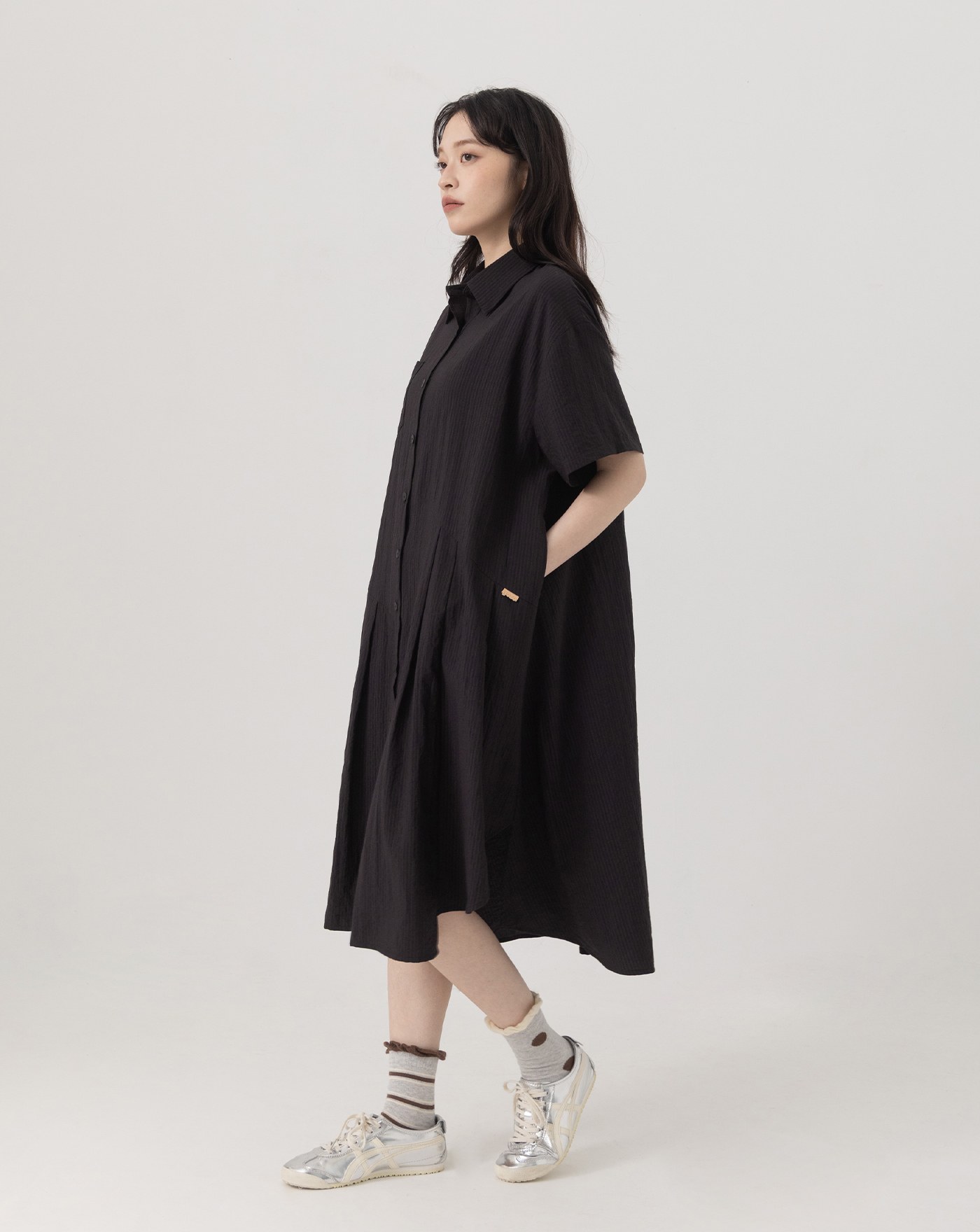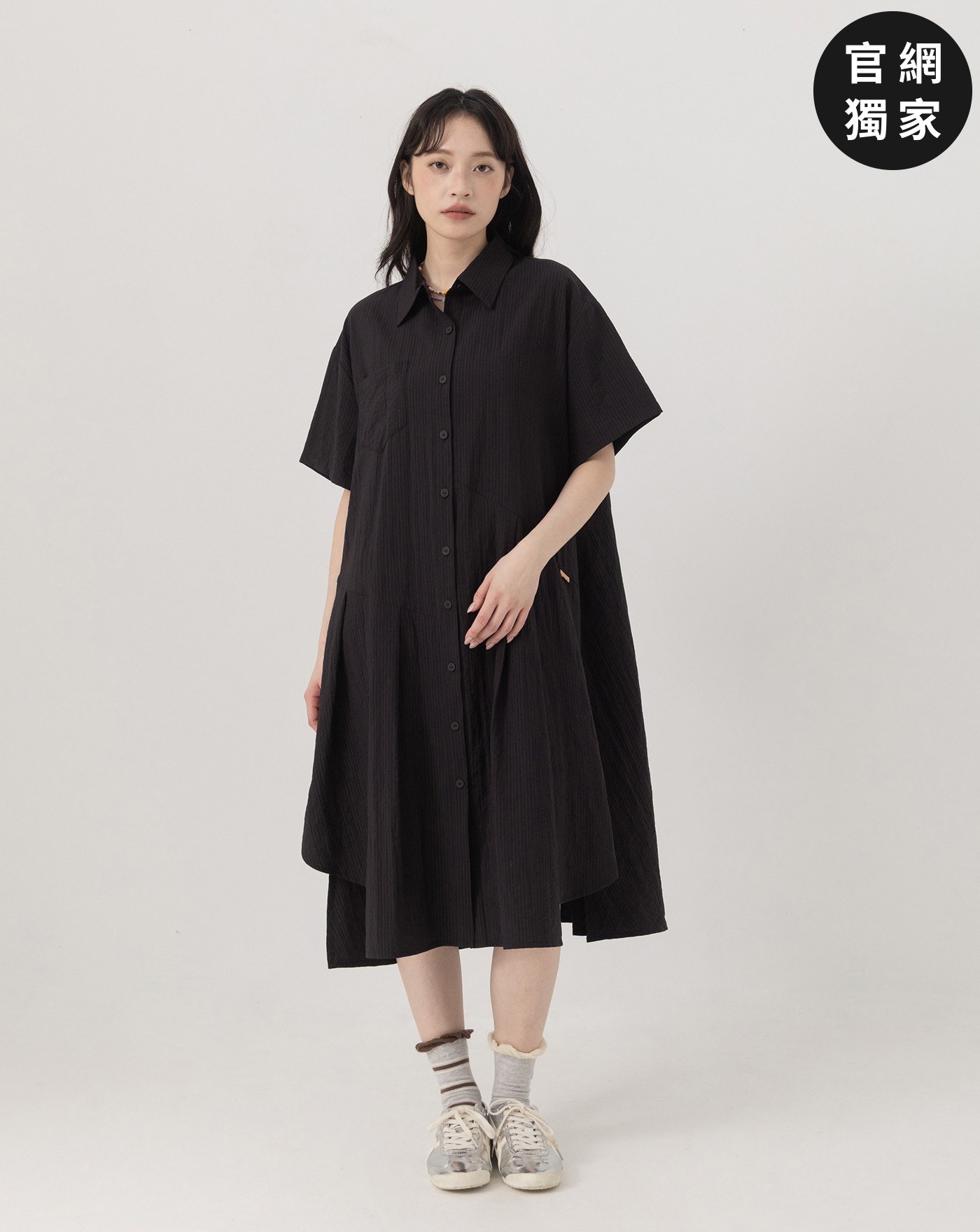 微皺感假兩件抽繩工裝風洋裝(兩色)