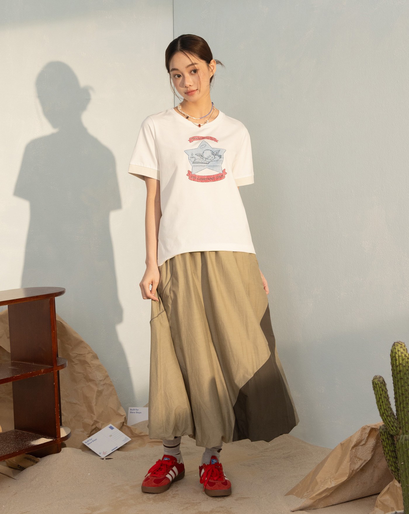 洗衣籃滑雪場下擺拼色天絲T恤(兩色)