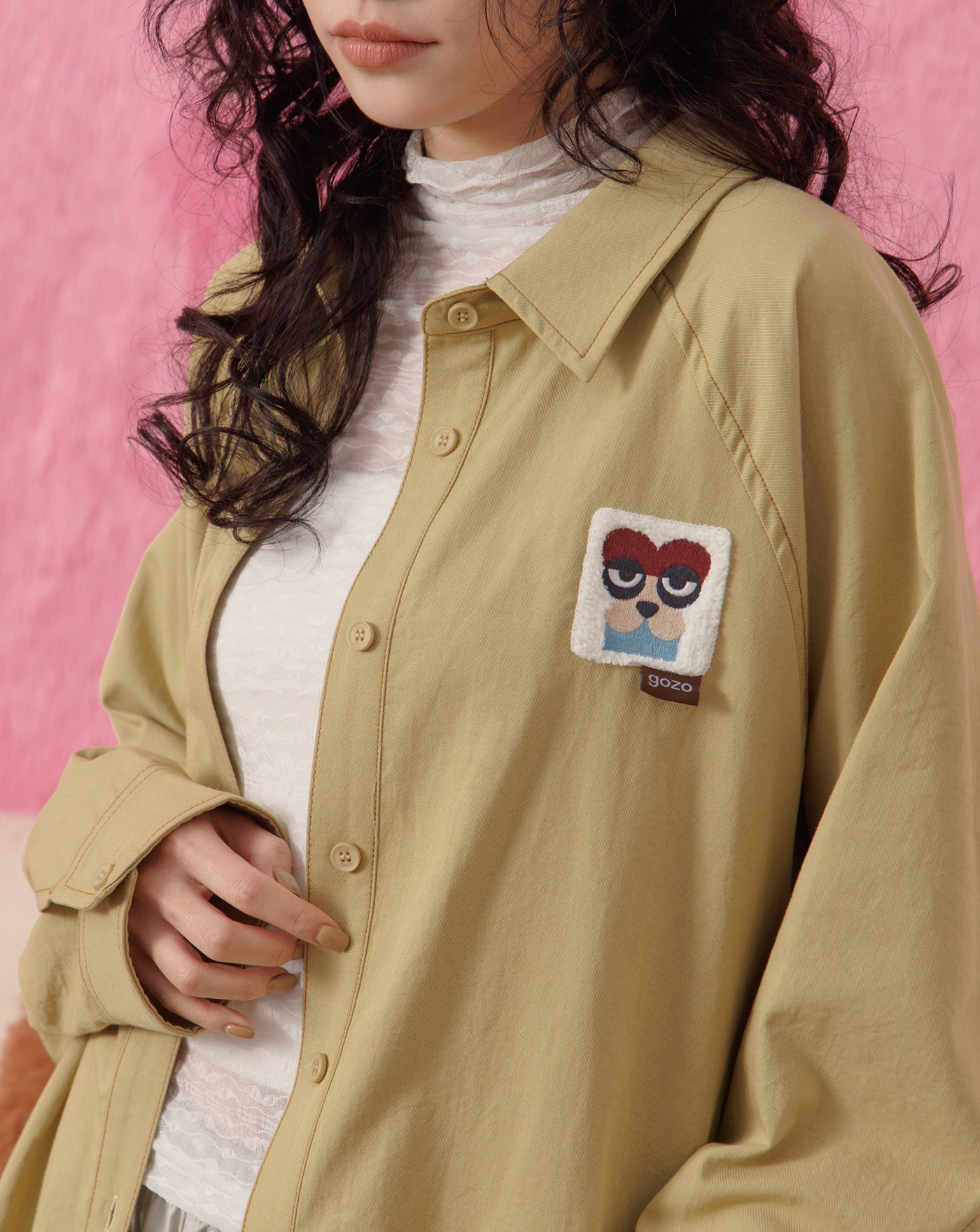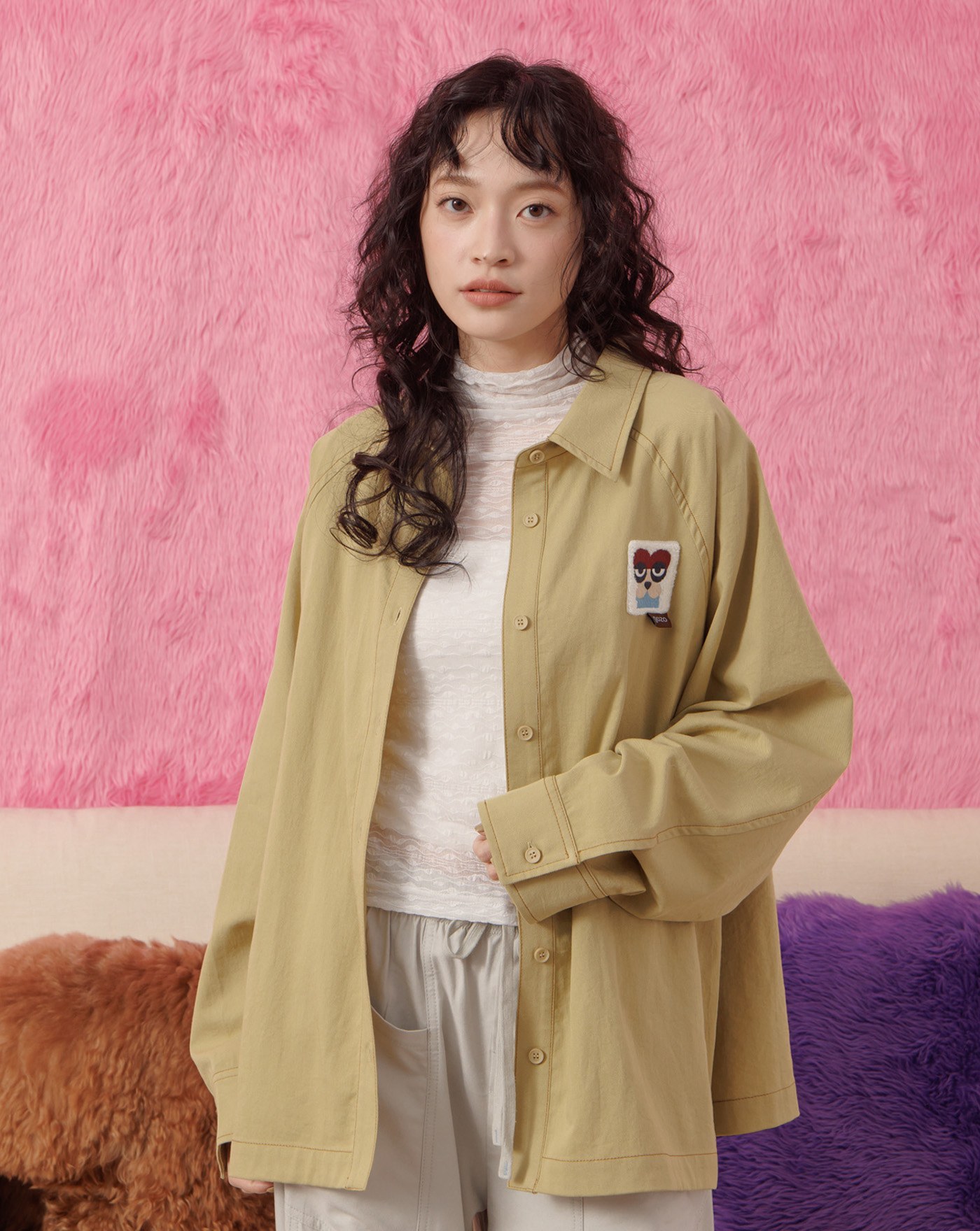 植絨印花假兩件襯衫T恤(兩色)