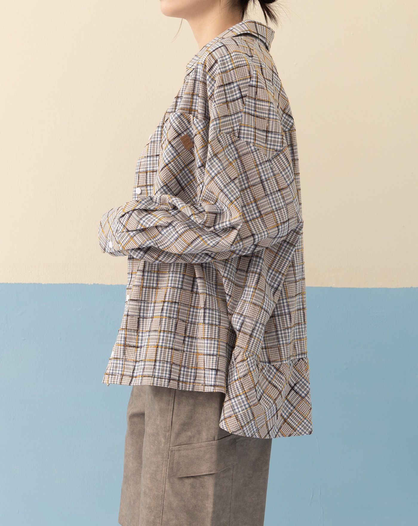 復古格紋羊毛毛呢長袖襯衫