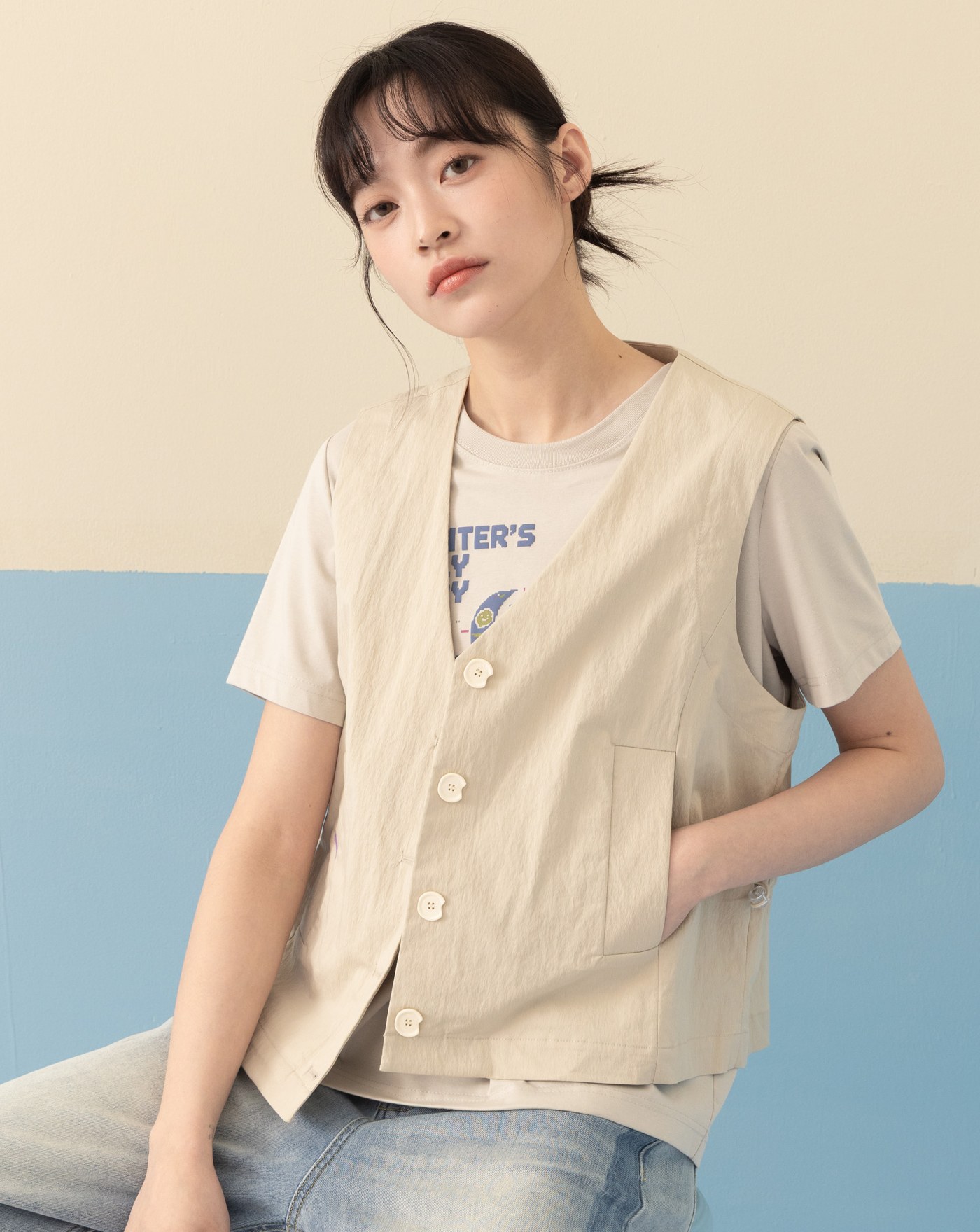復古牛仔西裝背心(兩色)