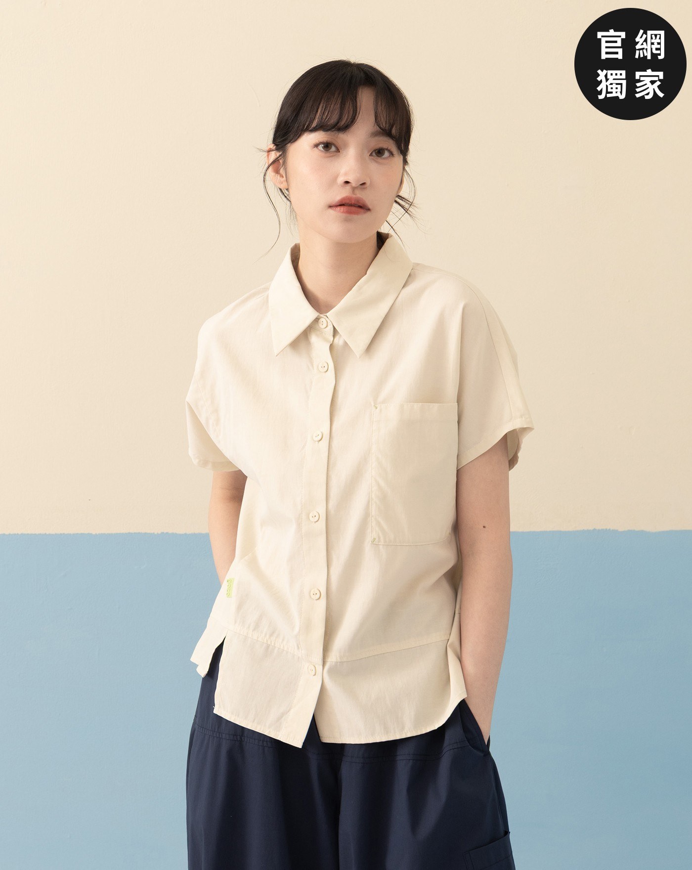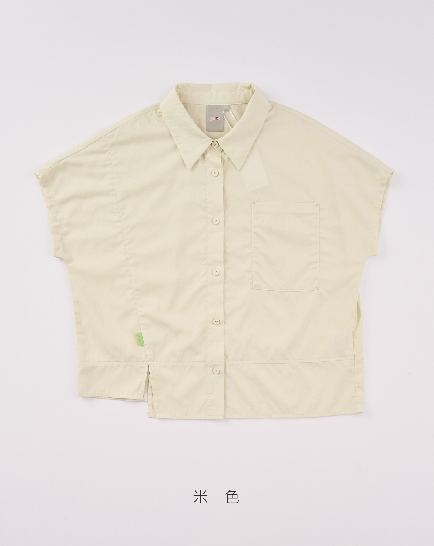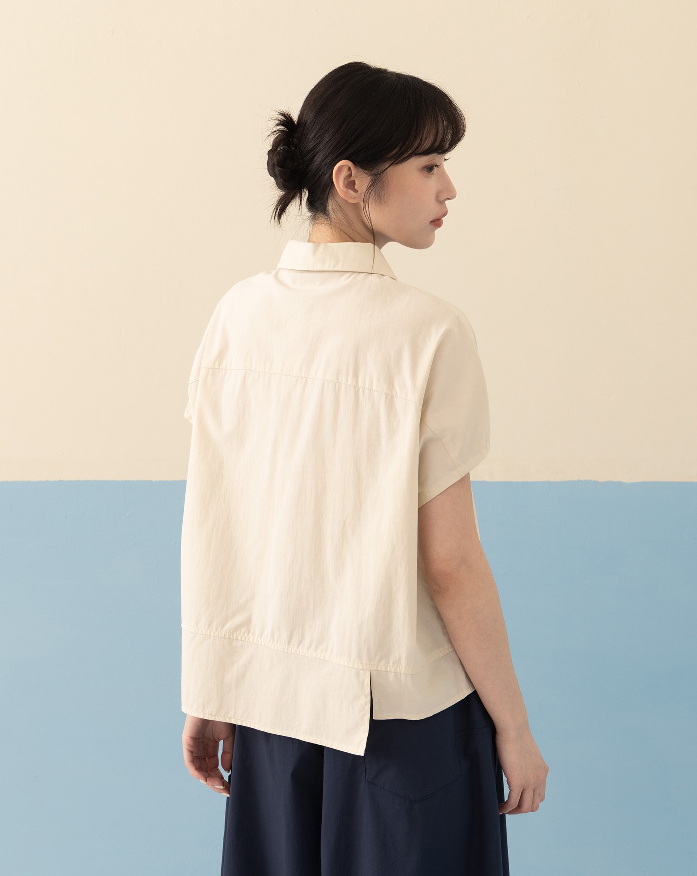 ➤涼感天絲刺繡抓褶短袖襯衫(兩色)