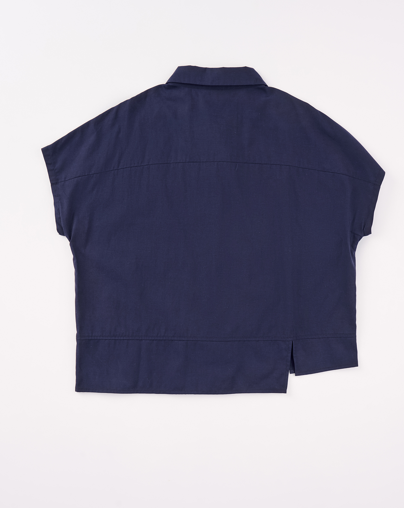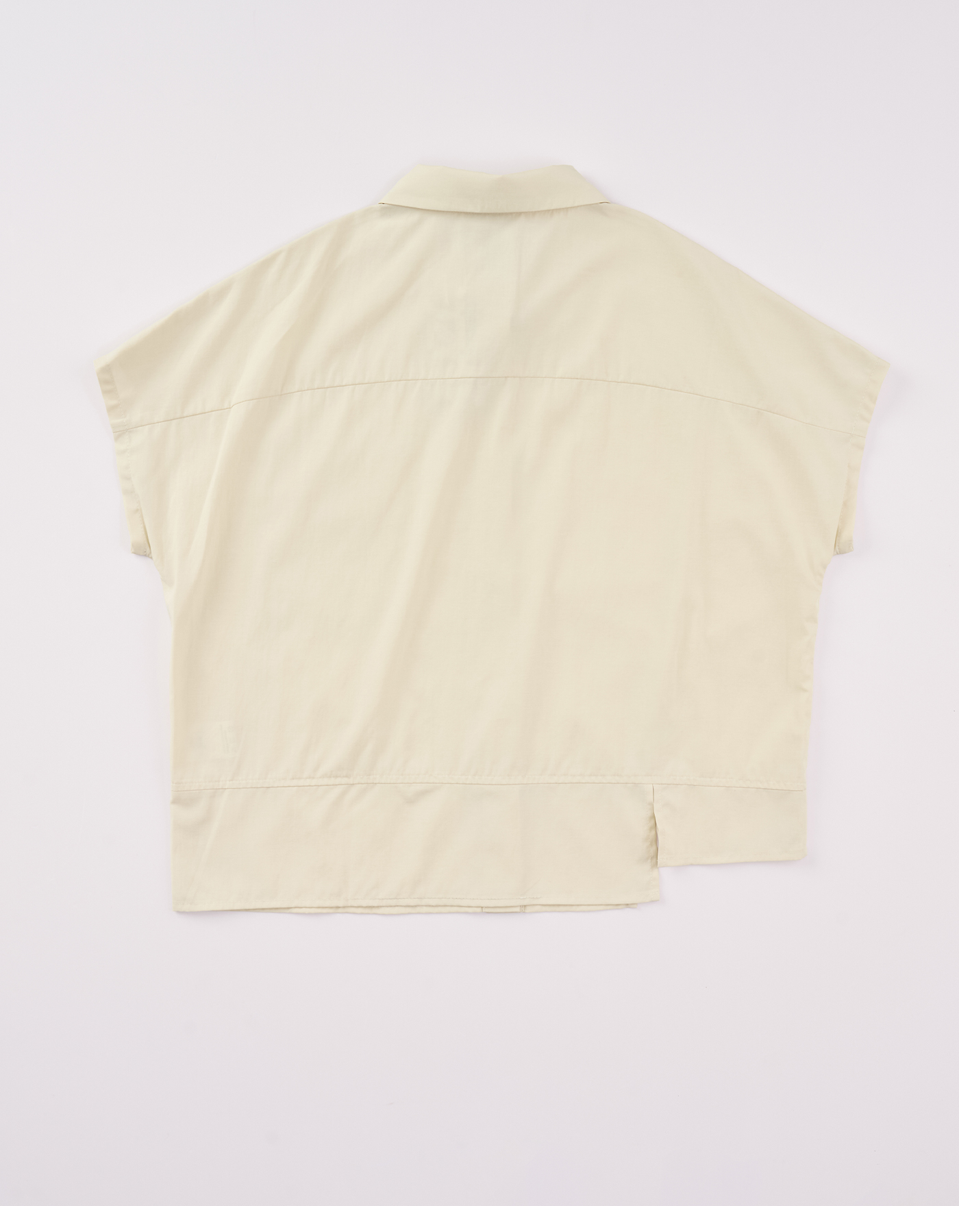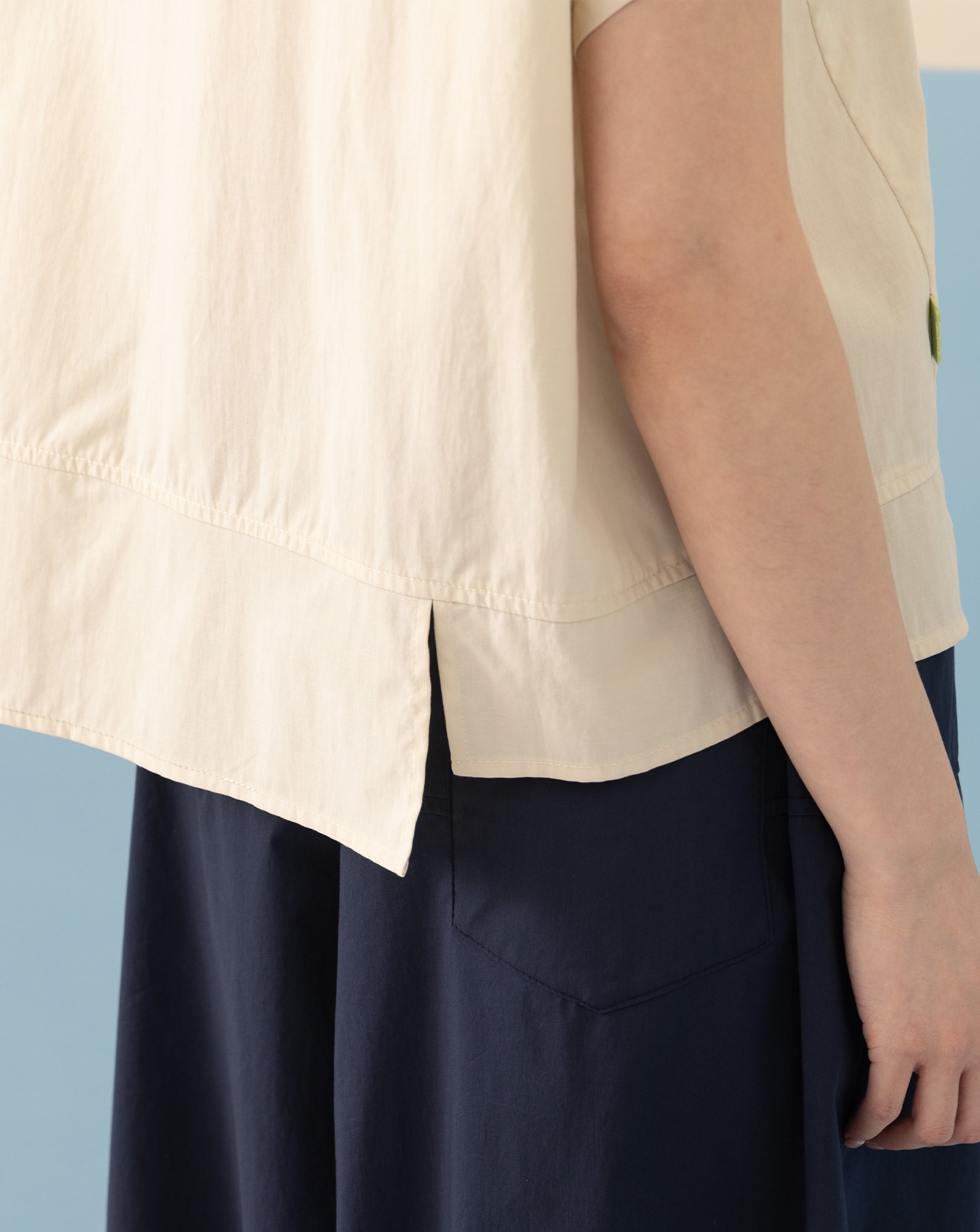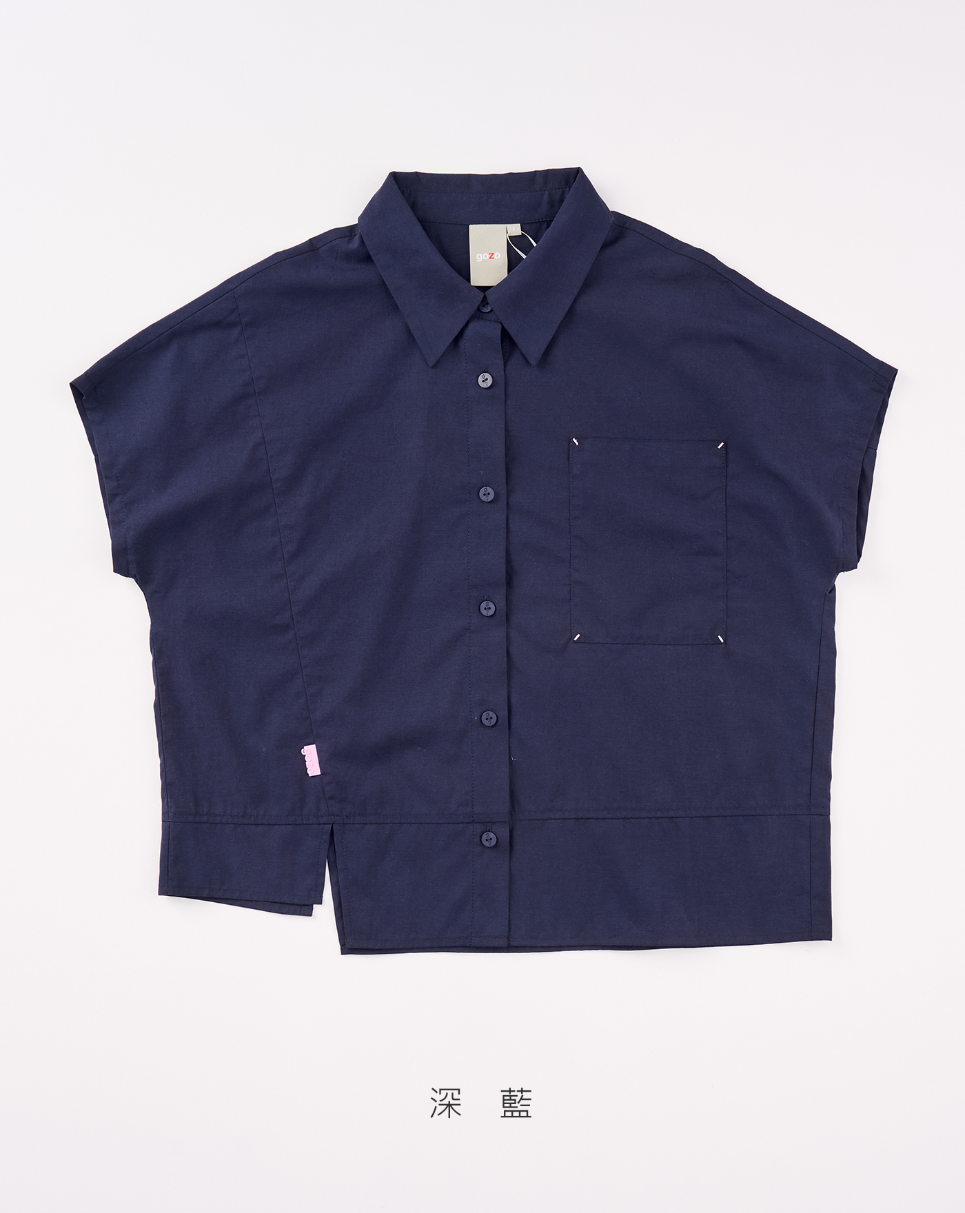 ➤涼感天絲刺繡抓褶短袖襯衫(兩色)