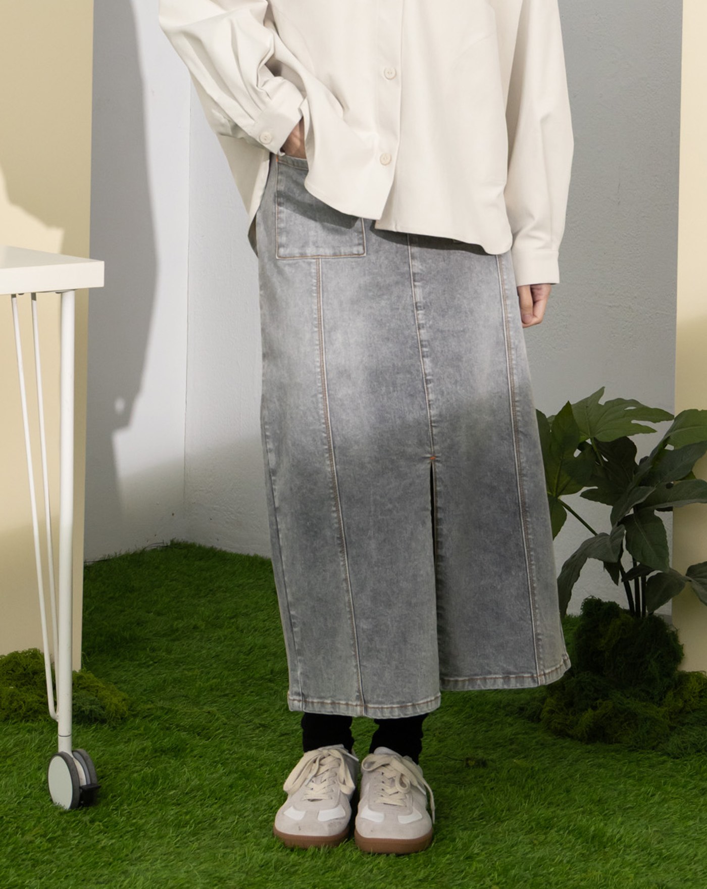 ◢g+微笑拼接格紋短褲(兩色)