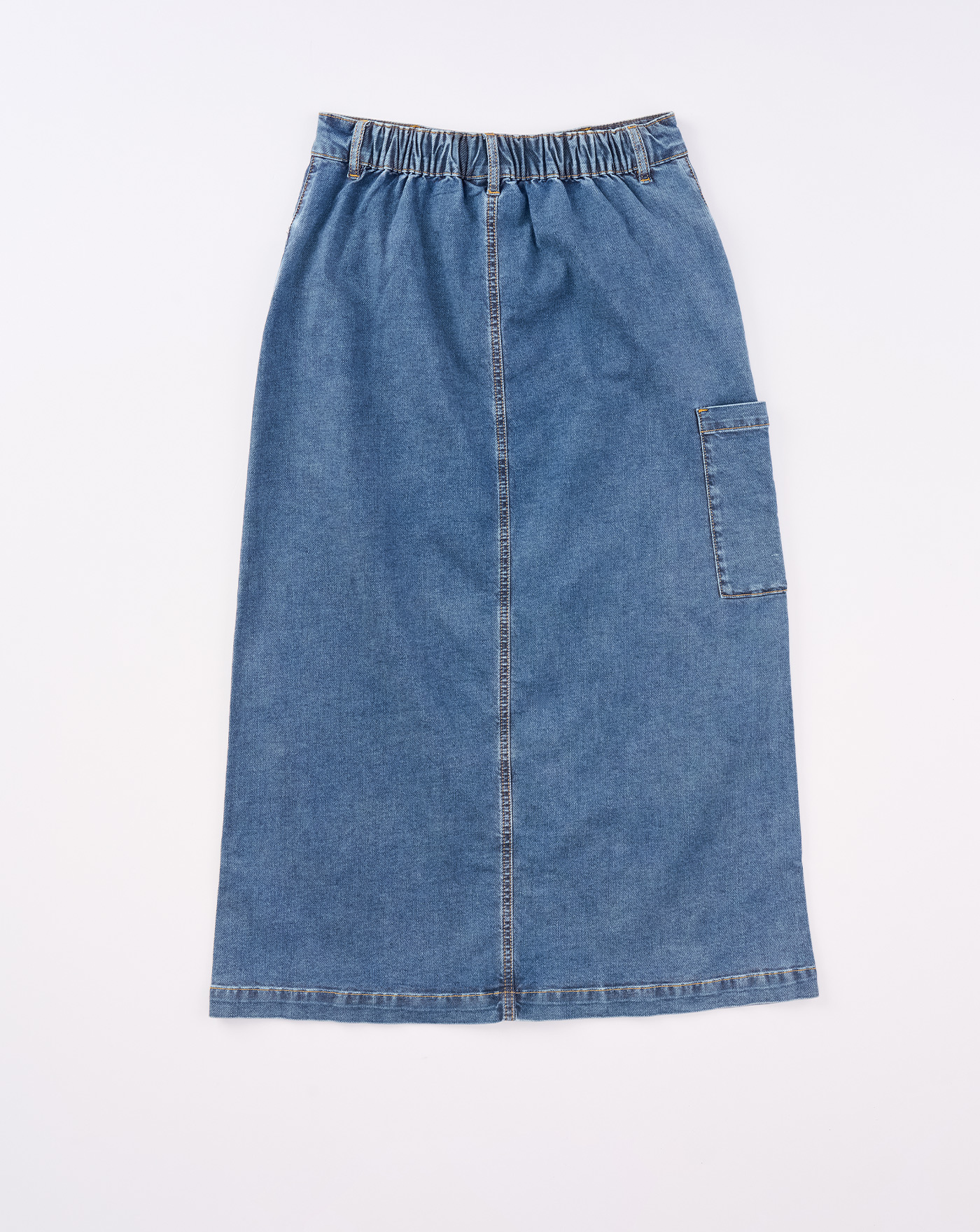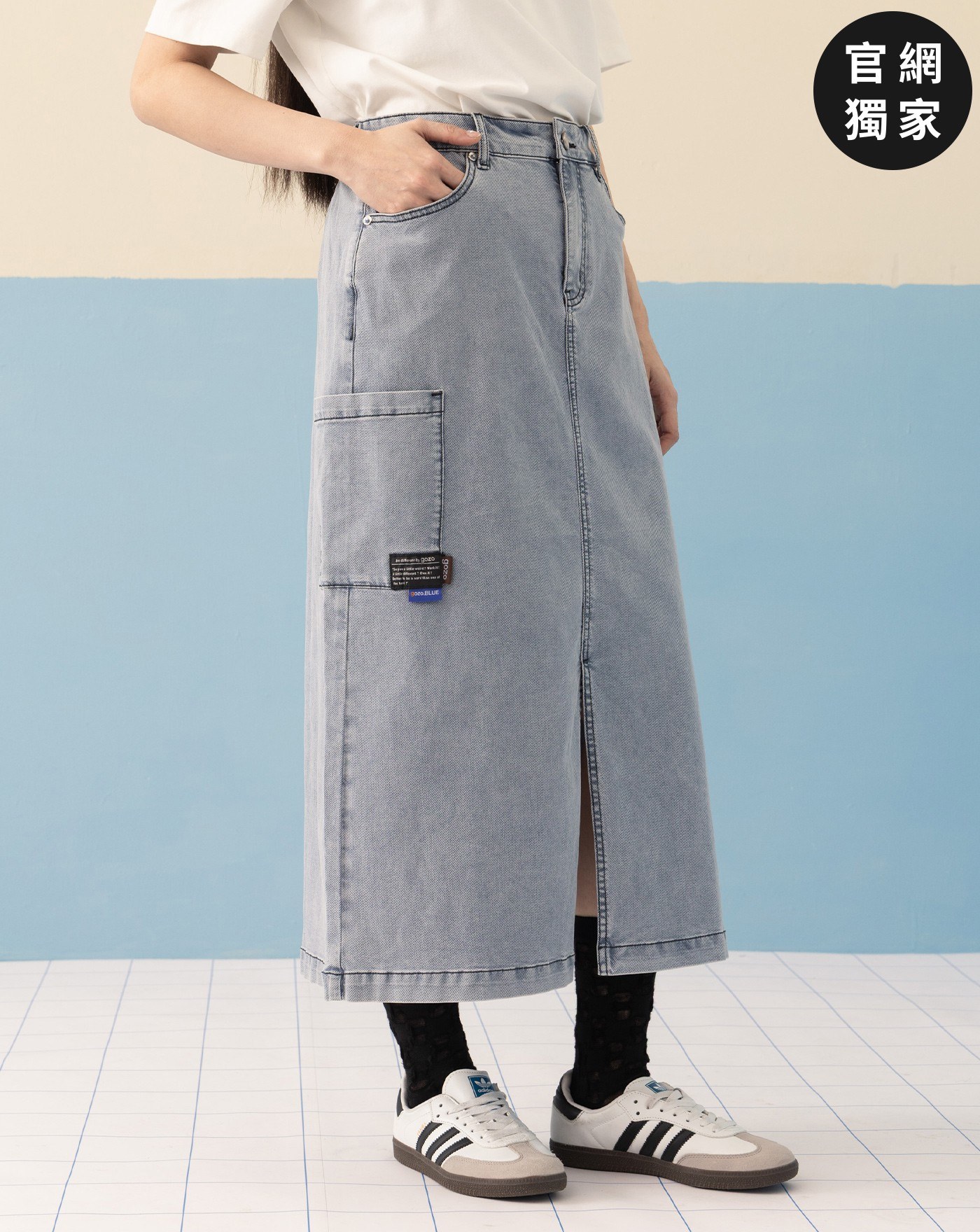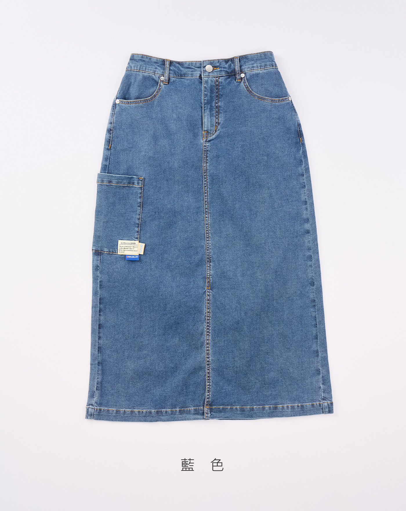 下擺不對稱開衩涼感彈性A字牛仔裙(兩色)