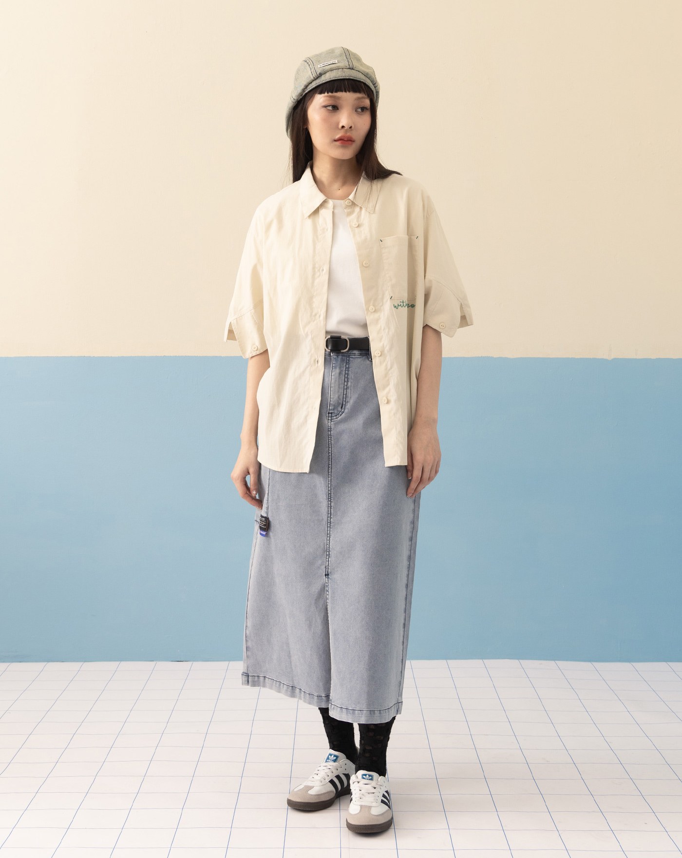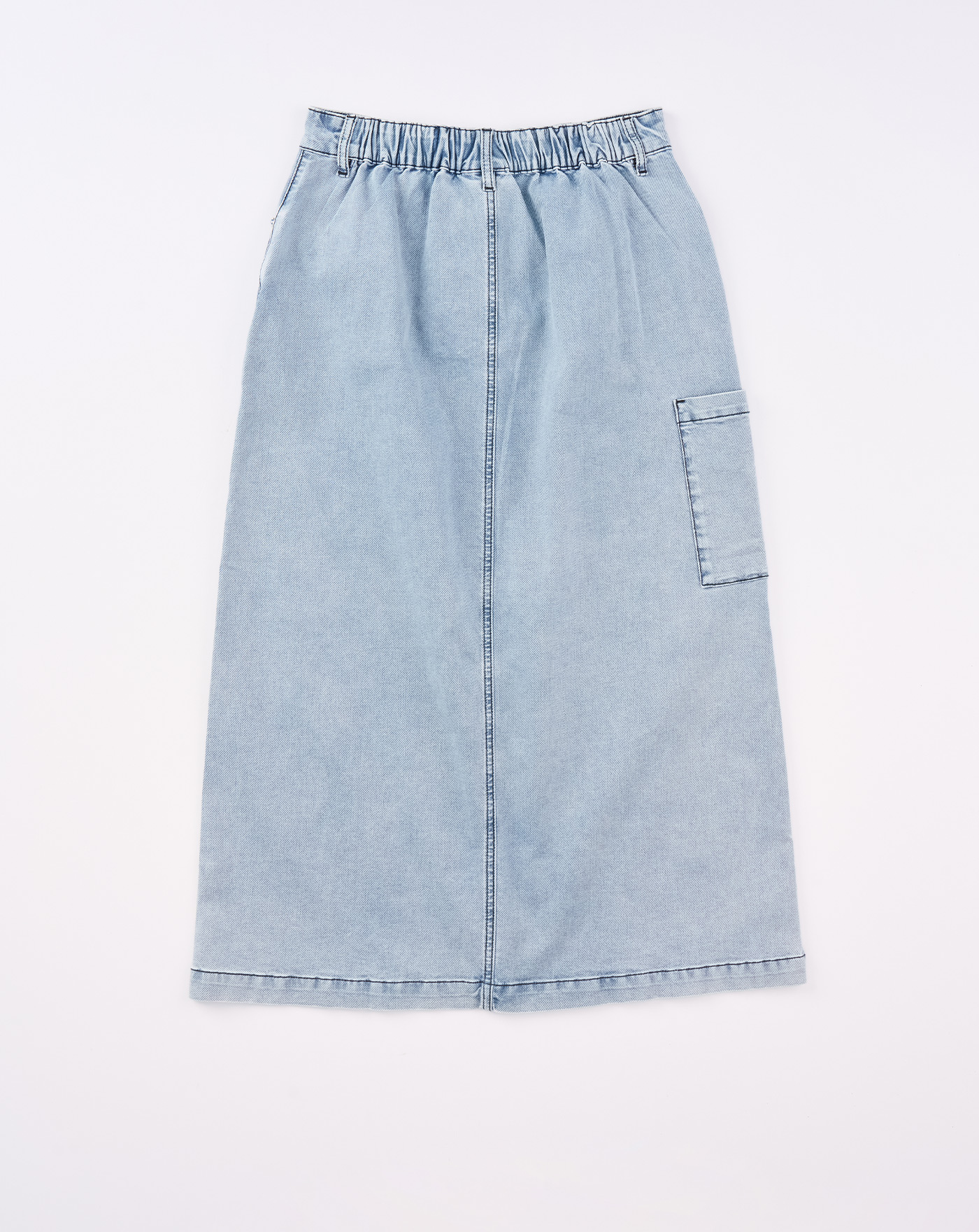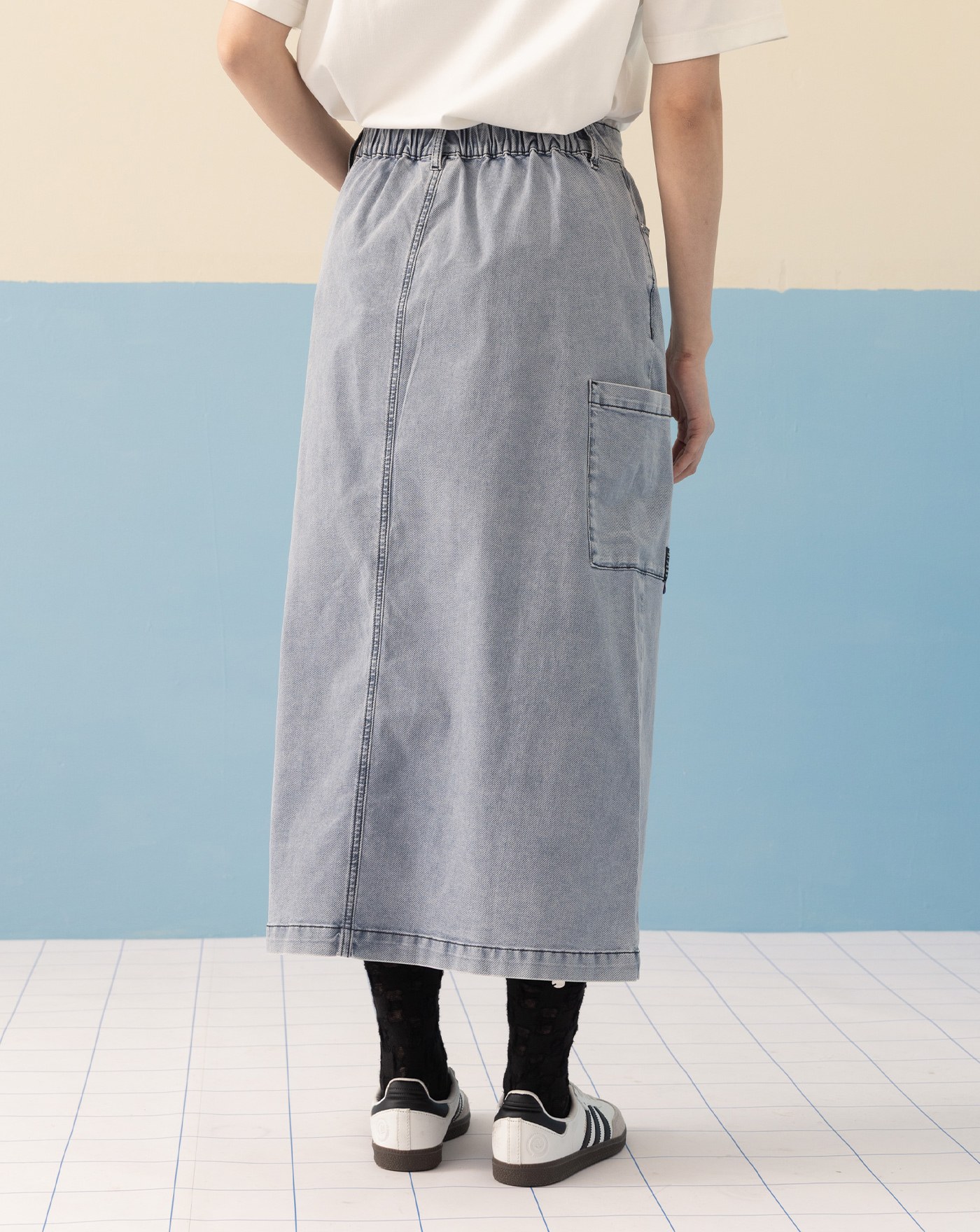 下擺不對稱開衩涼感彈性A字牛仔裙(兩色)