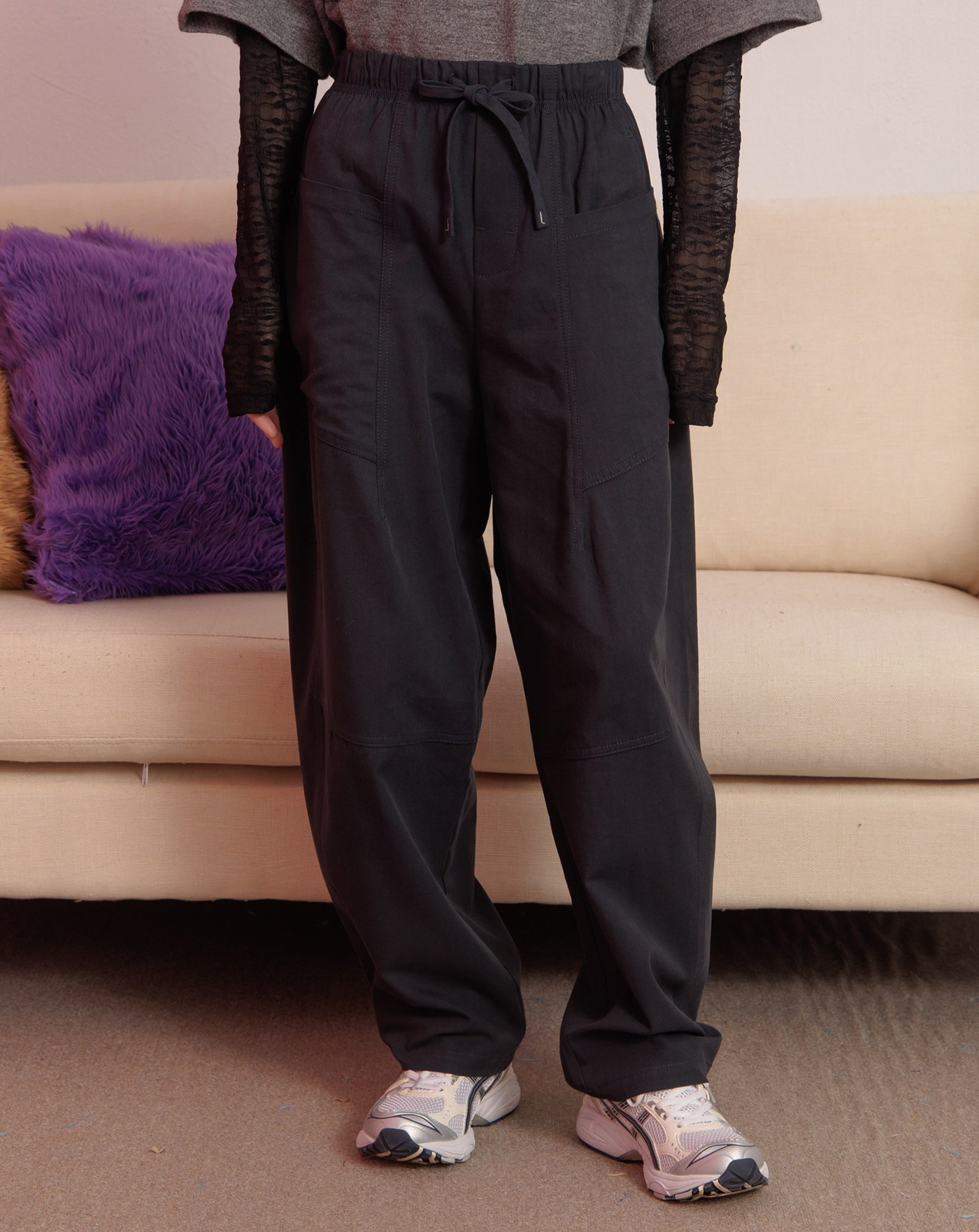 ◢g+微笑拼接格紋短褲(兩色)
