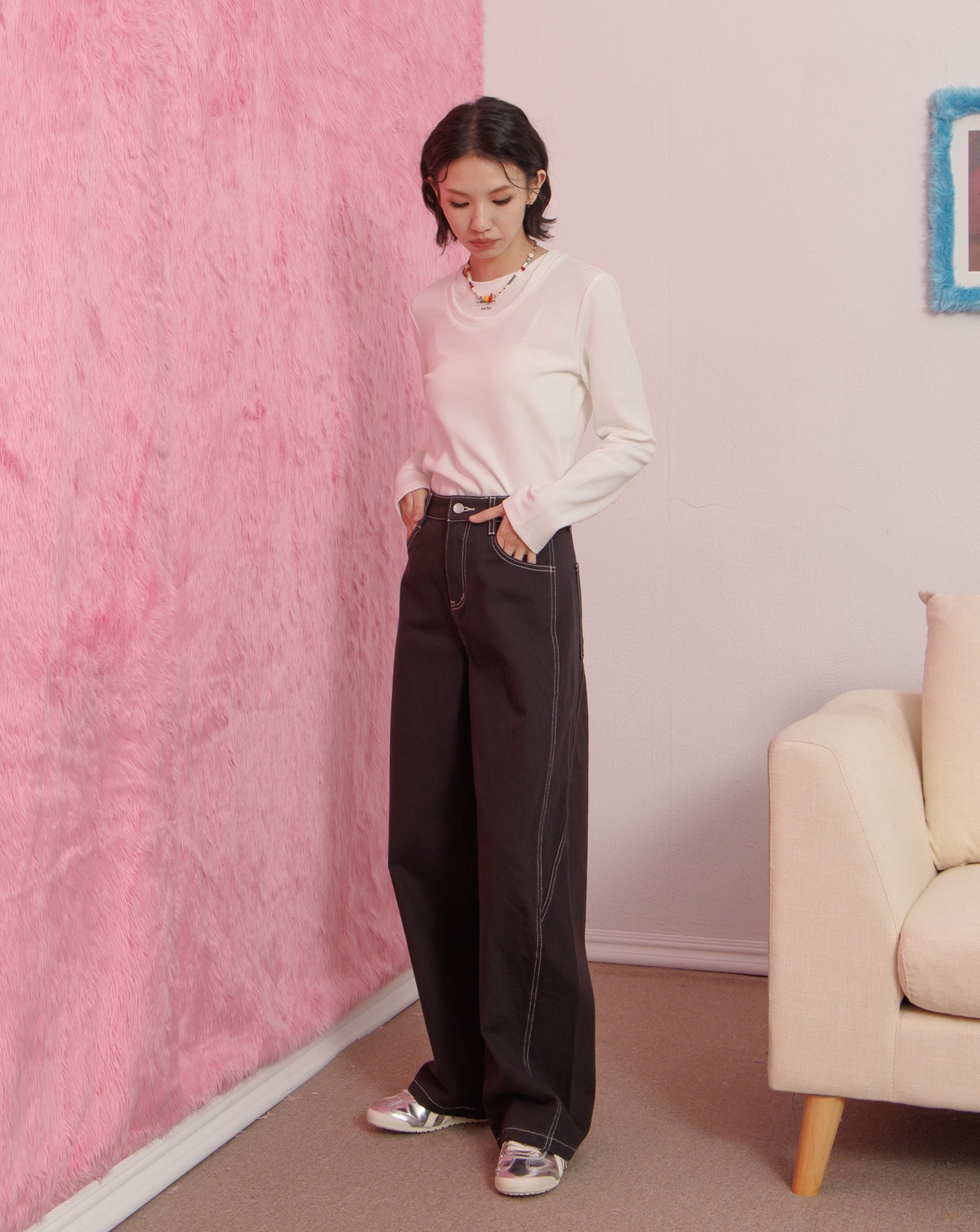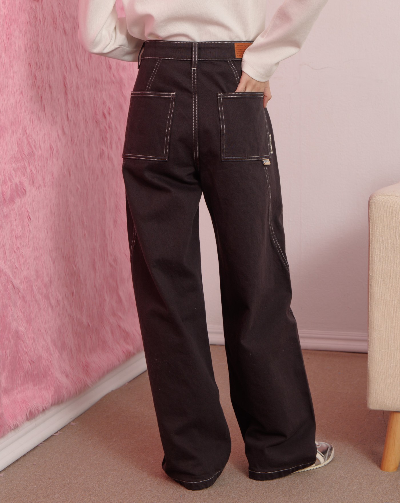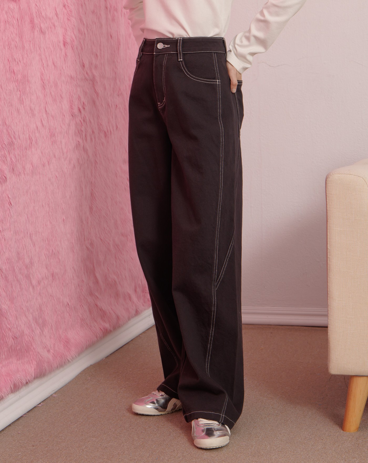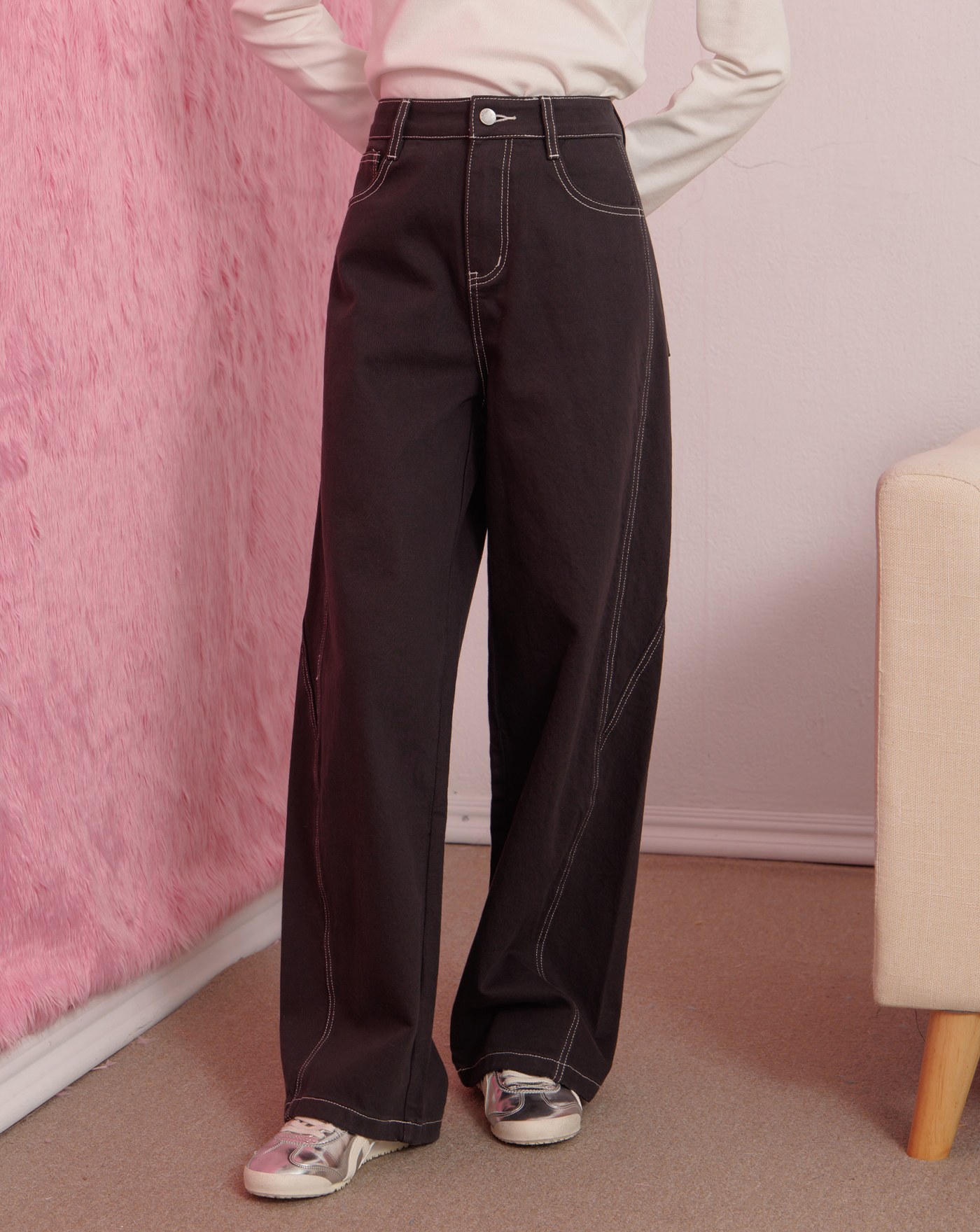 打褶造型斜紋彎刀褲