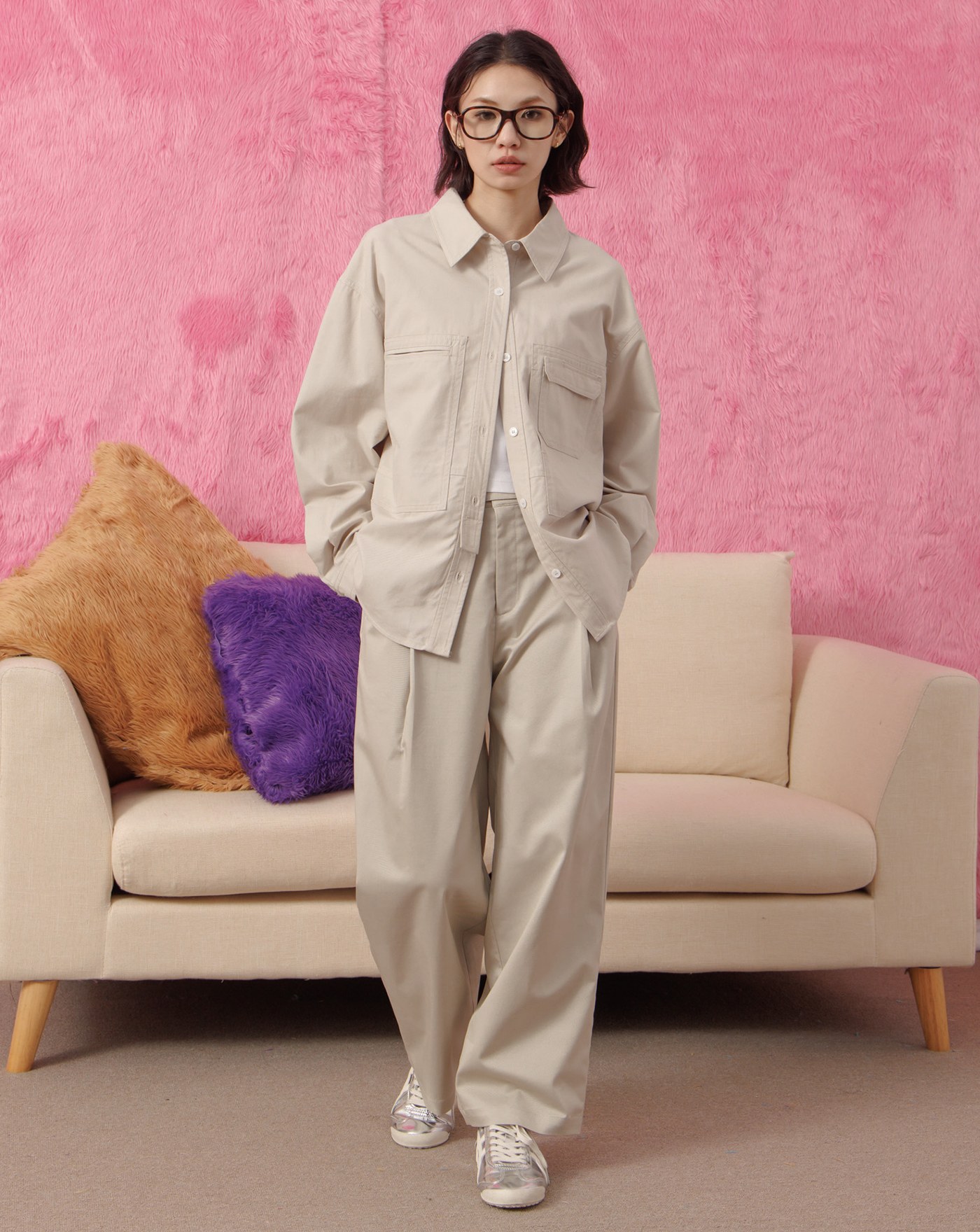 天絲多口袋造型工裝襯衫(兩色)