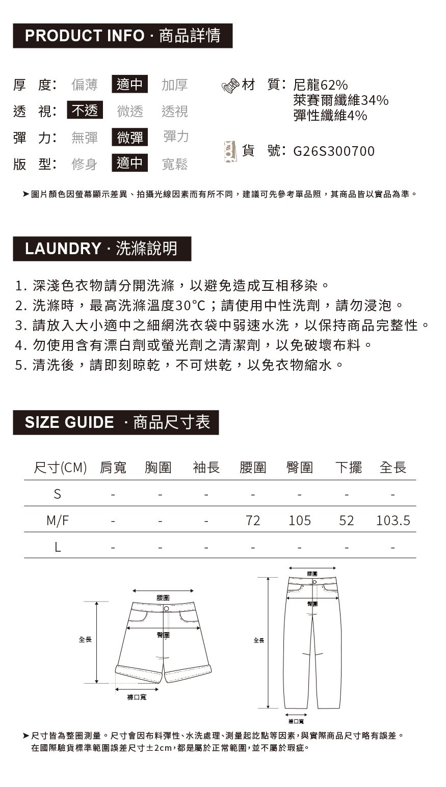 涼感天絲:手感柔軟細緻,具有微涼感,天絲具有垂墜度結合尼龍的挺度,展現出垂敢但不會軟塌,吸濕透氣又快乾,抗皺耐磨