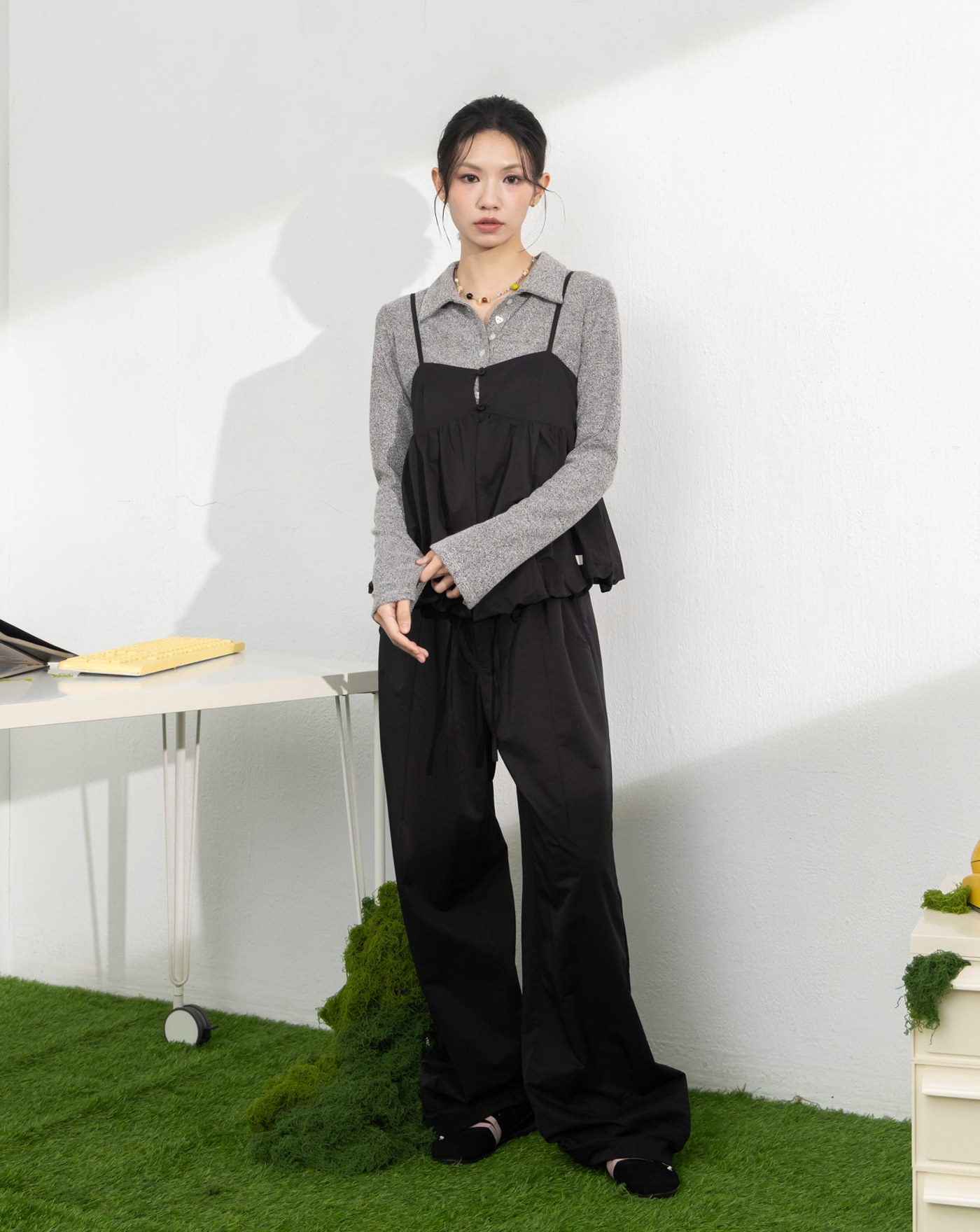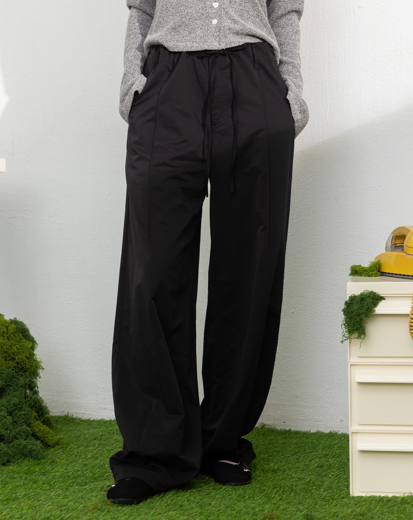 無腰頭剪接設計寬褲