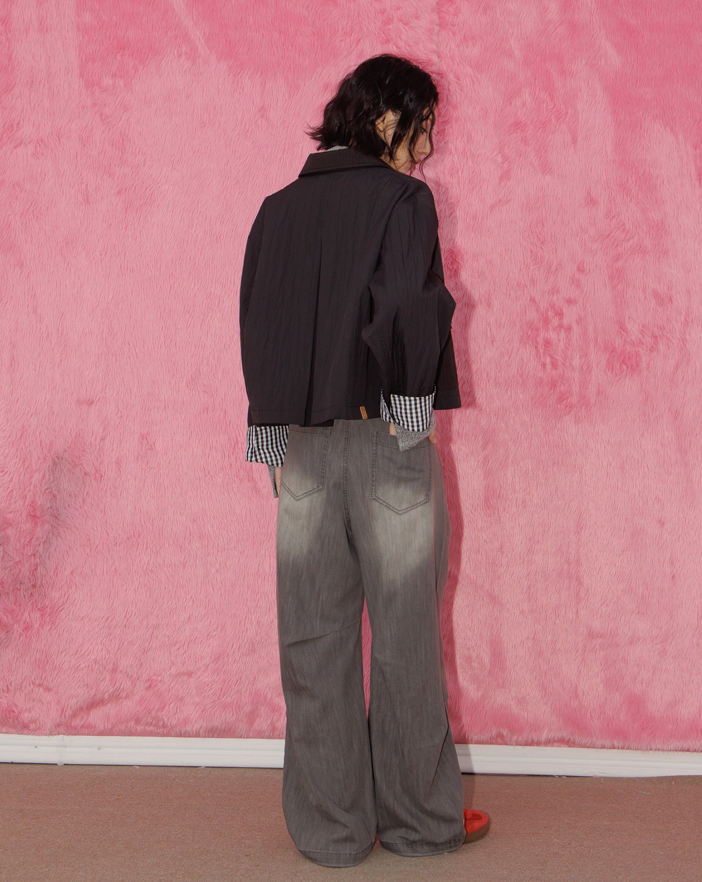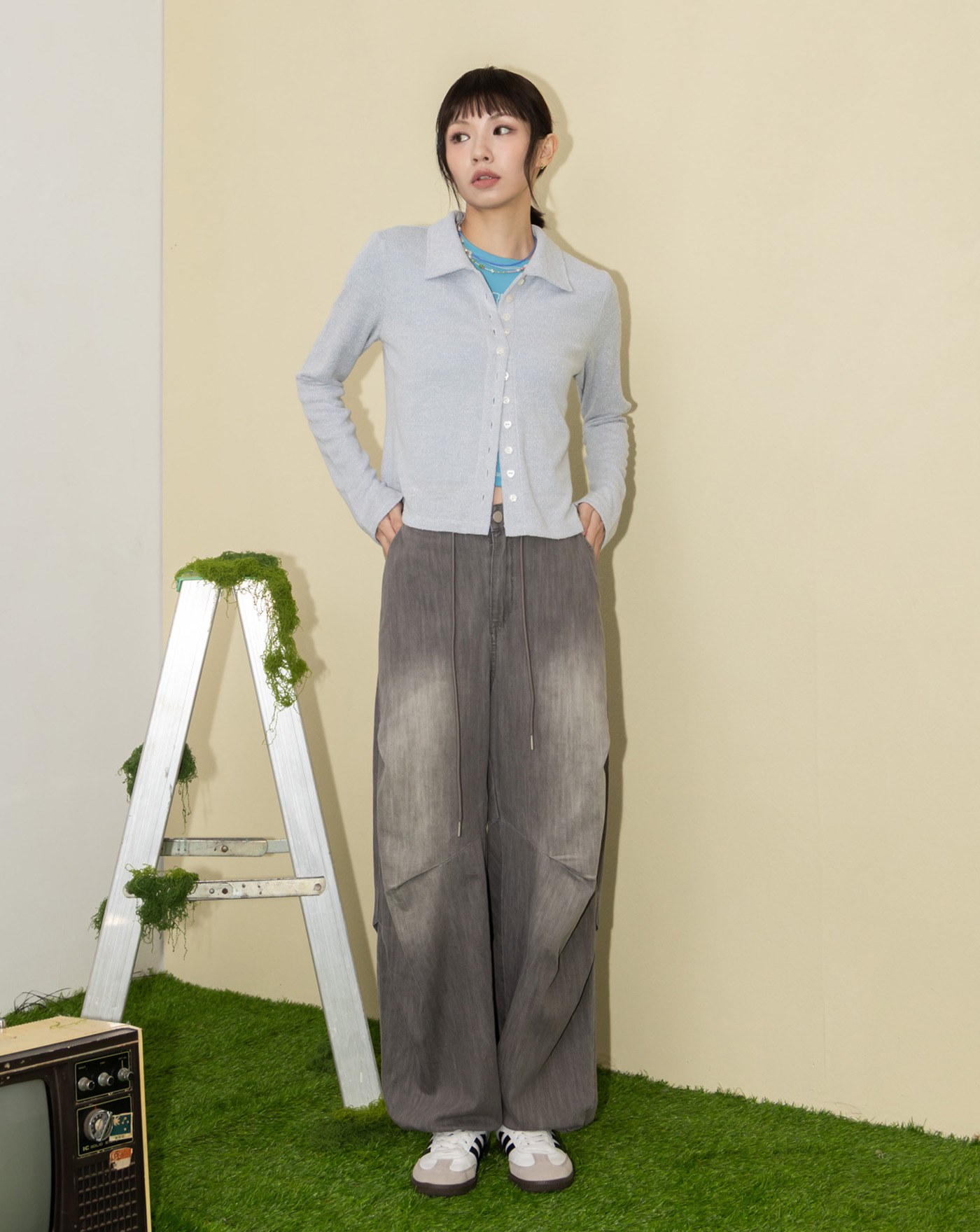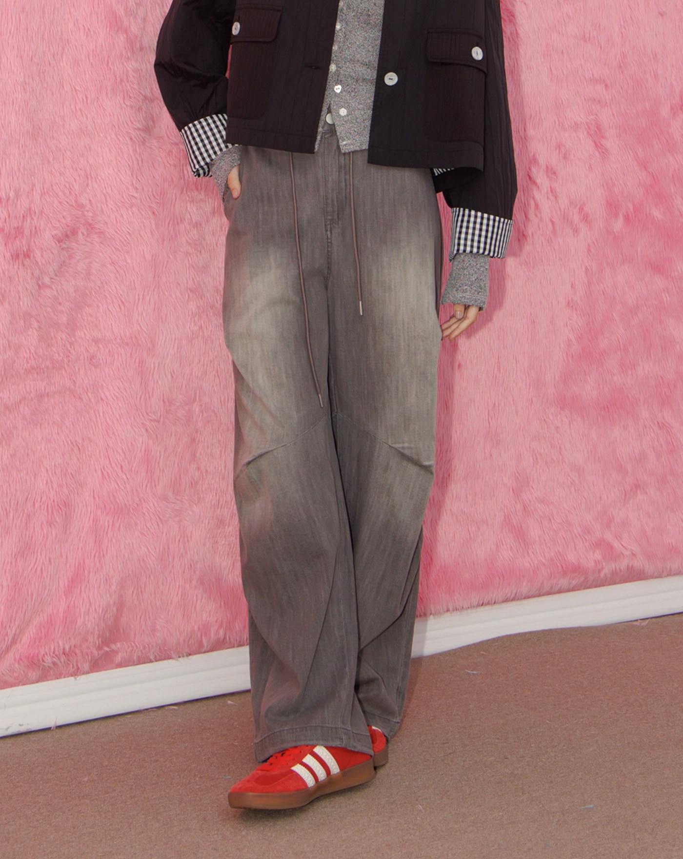 A|水洗刷白微繭型寬褲